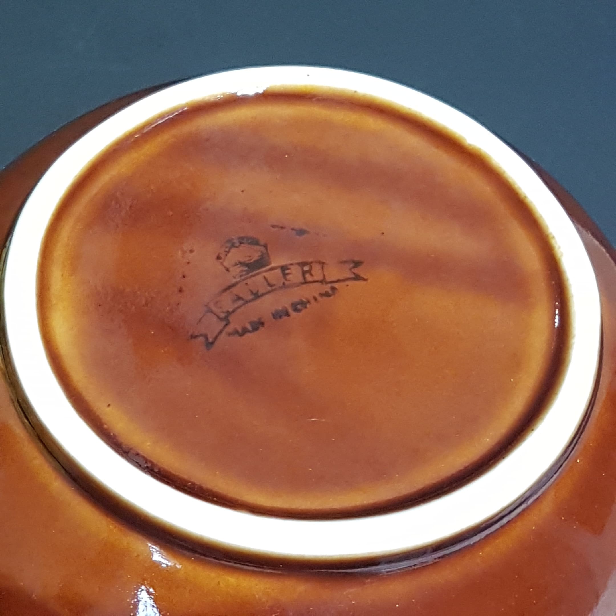 Vintage Condition: NO chips. NO cracks. NO repairs. NO crazing. Small white dots of burst bubbles from the brown glaze.