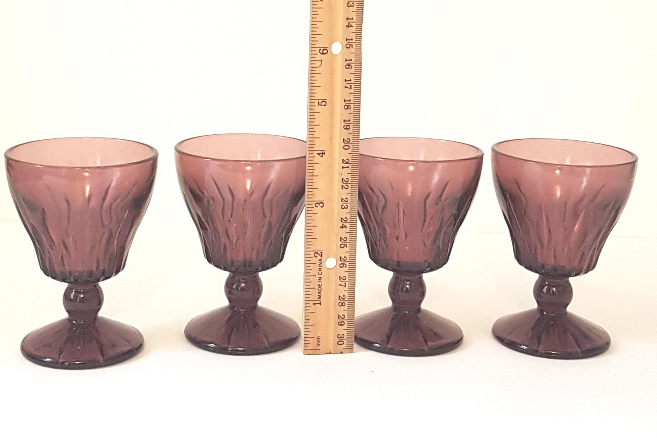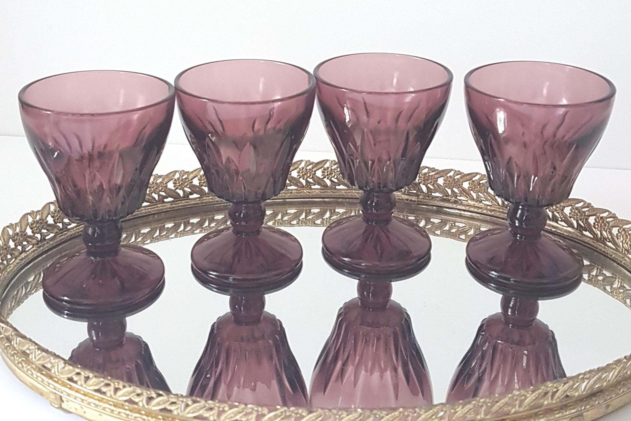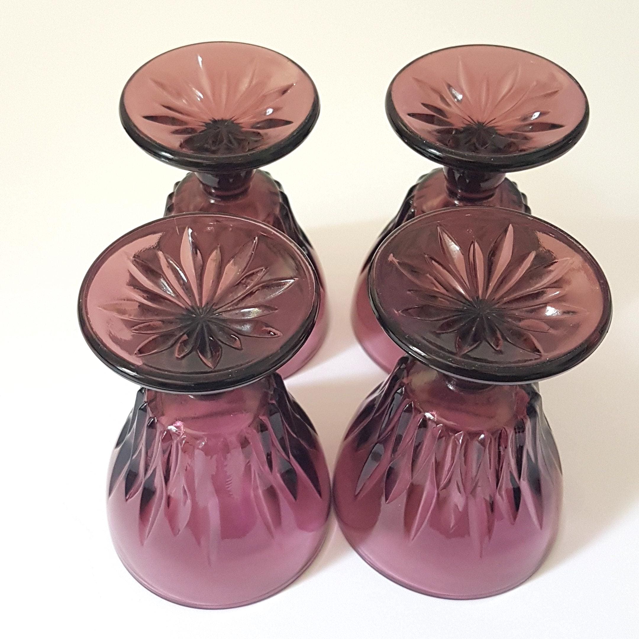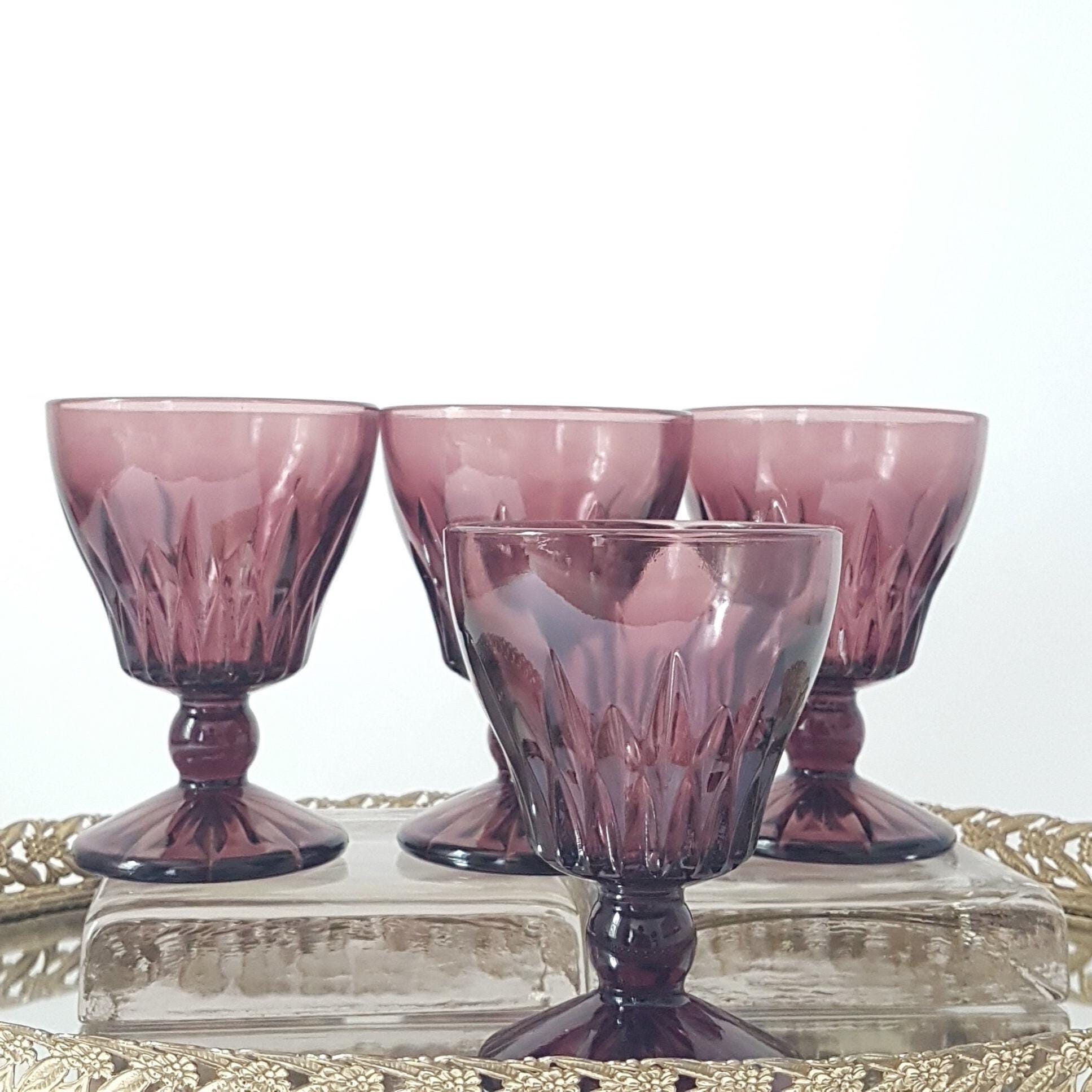 Set of 4 footed small wine glasses in Moroccan Amethyst by Hazel Atlas, circa 1960's