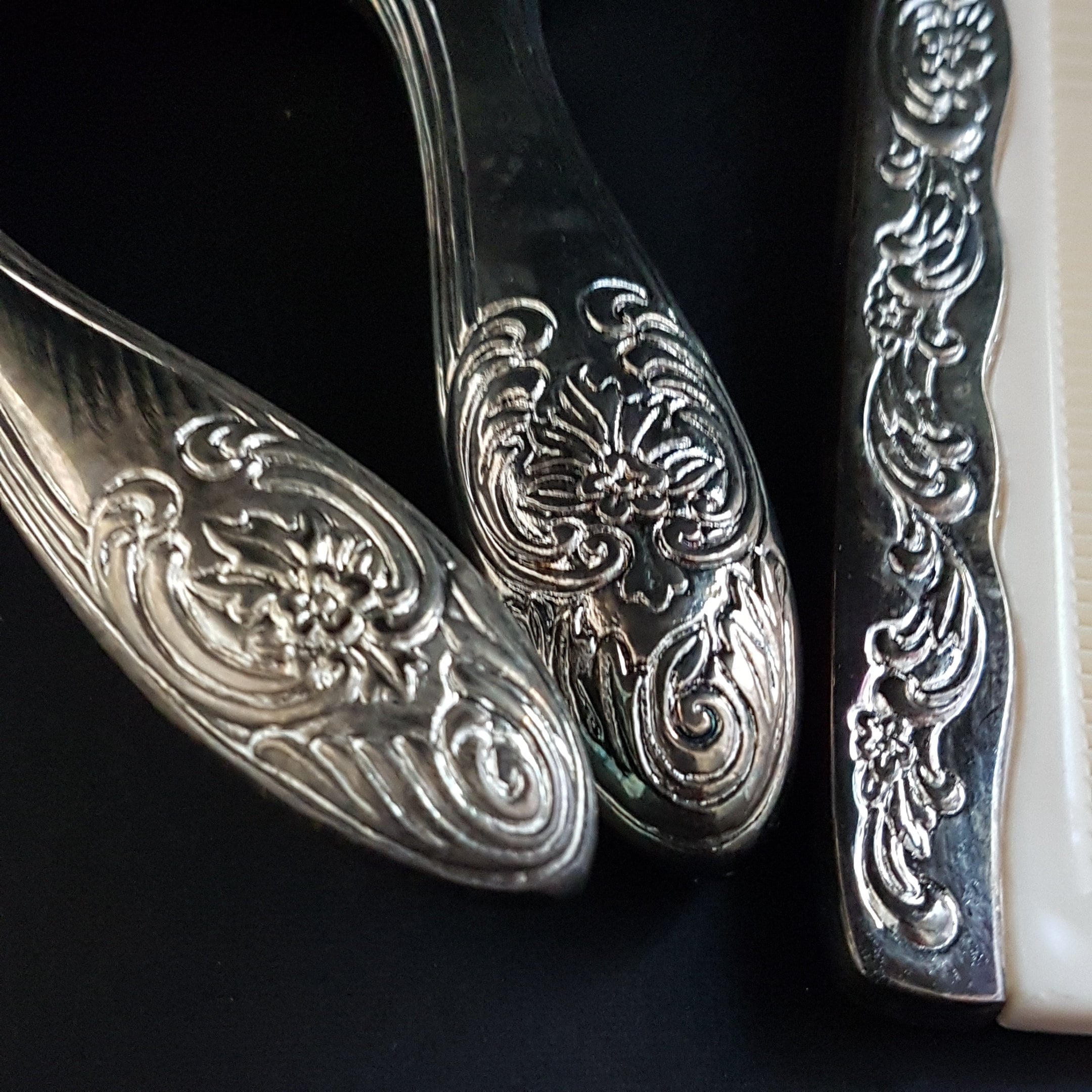 Comb - has silver plated sleeve, which can be removed. Some dried glue residue on comb, not certain if it was once glued in the silver plated sleeve