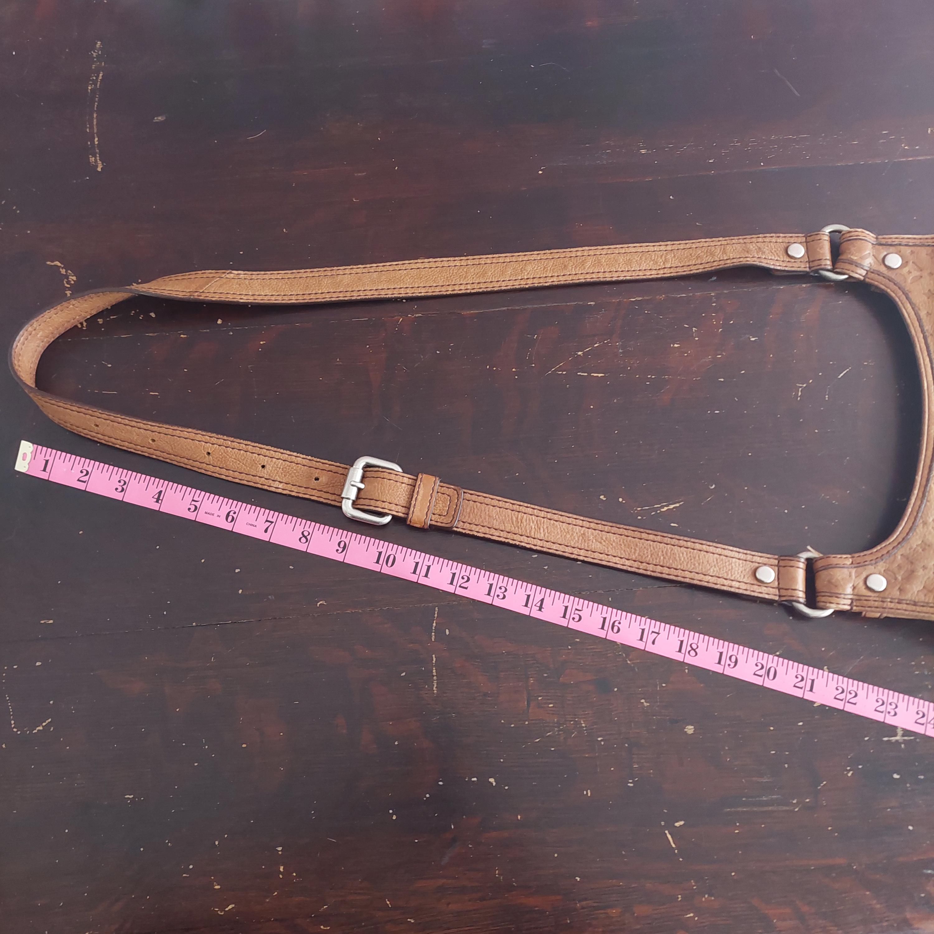 Shoulder strap has 6 hole adjustments. Pictured in first hole.