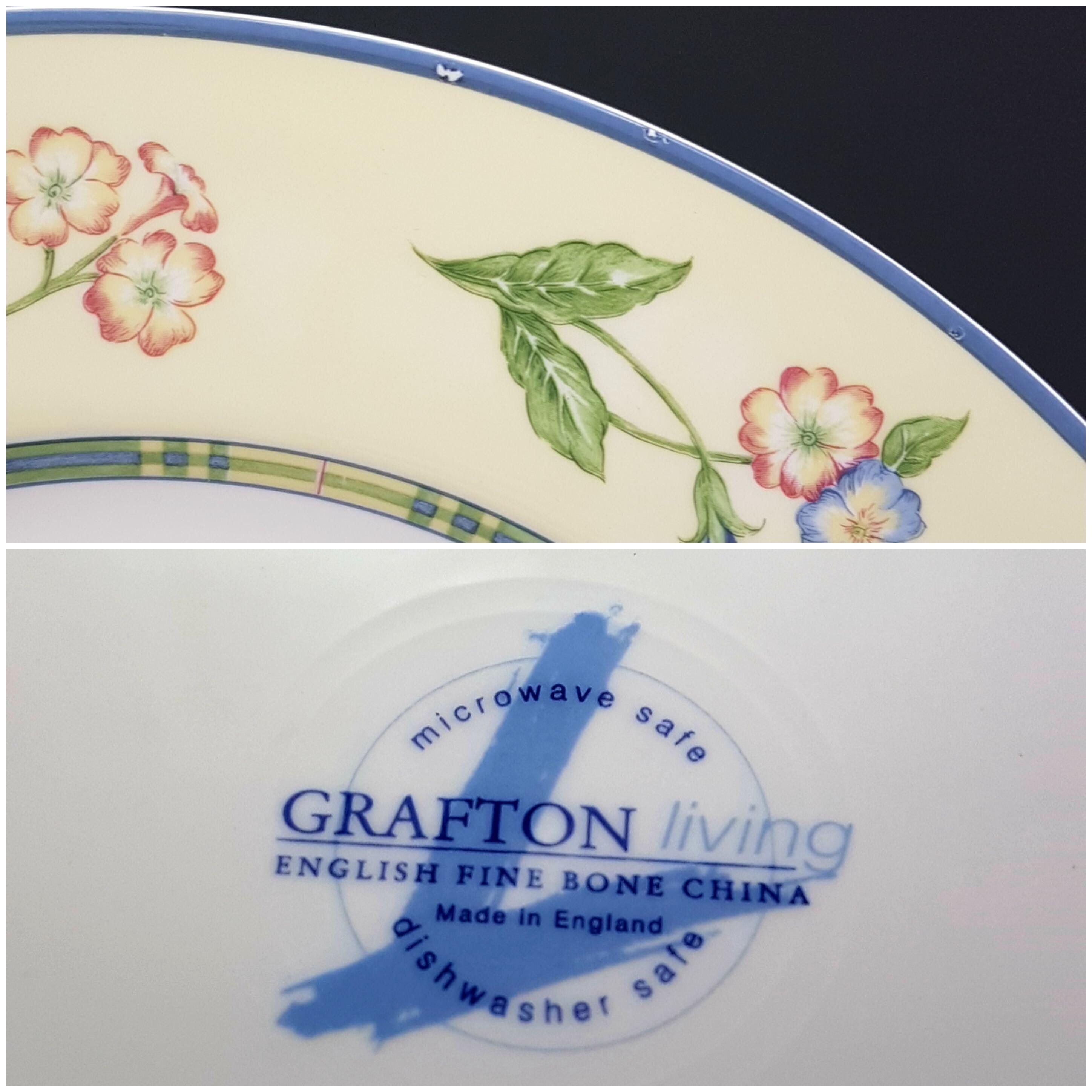 Backstamp: "Grafton Living - Fine English Bone China - Made in England - Microwave Safe - Dishwasher Safe"