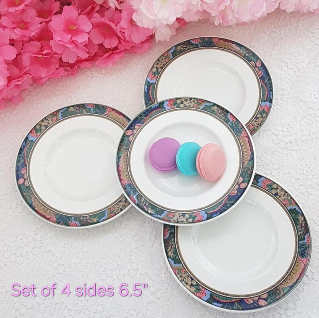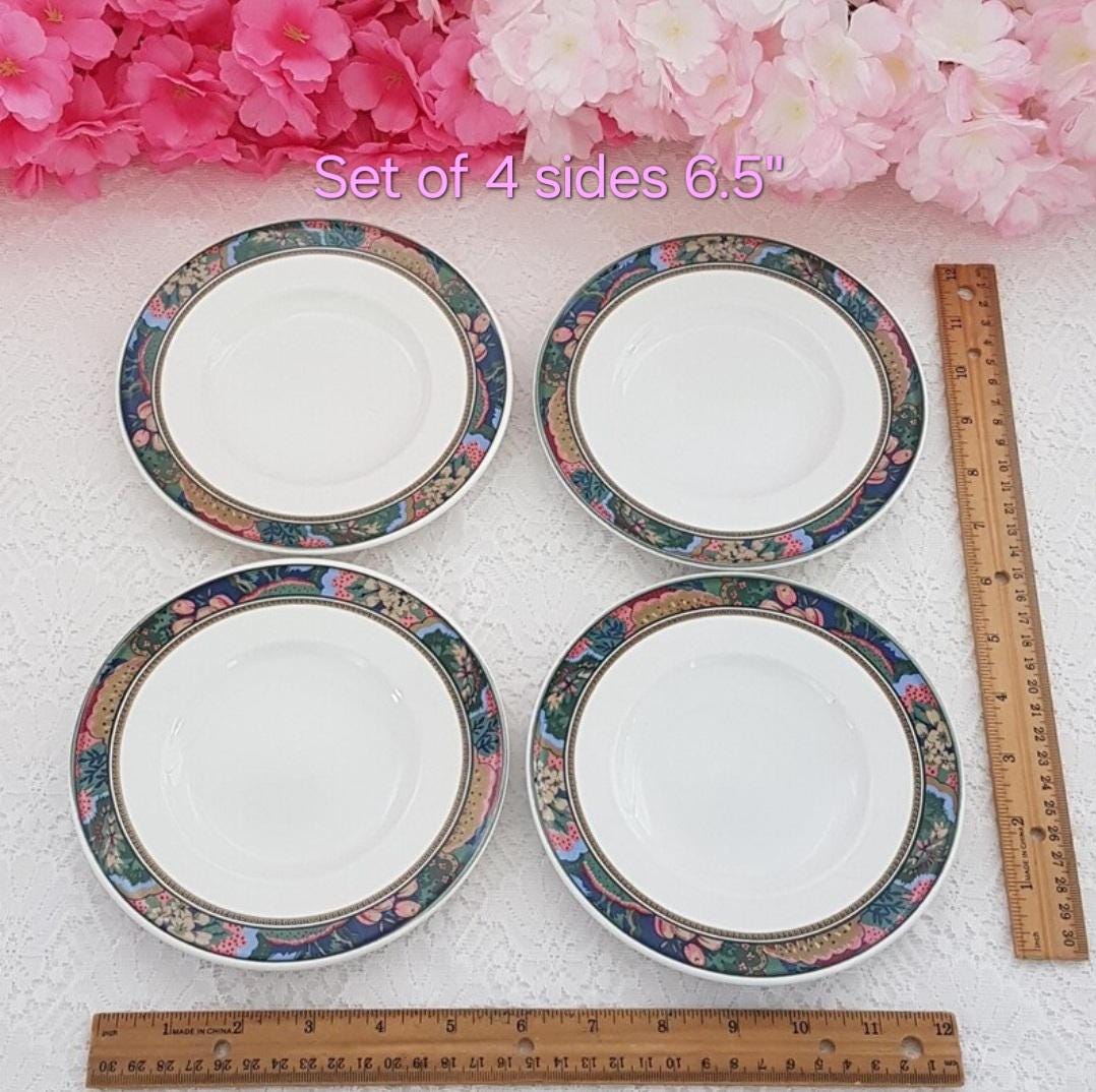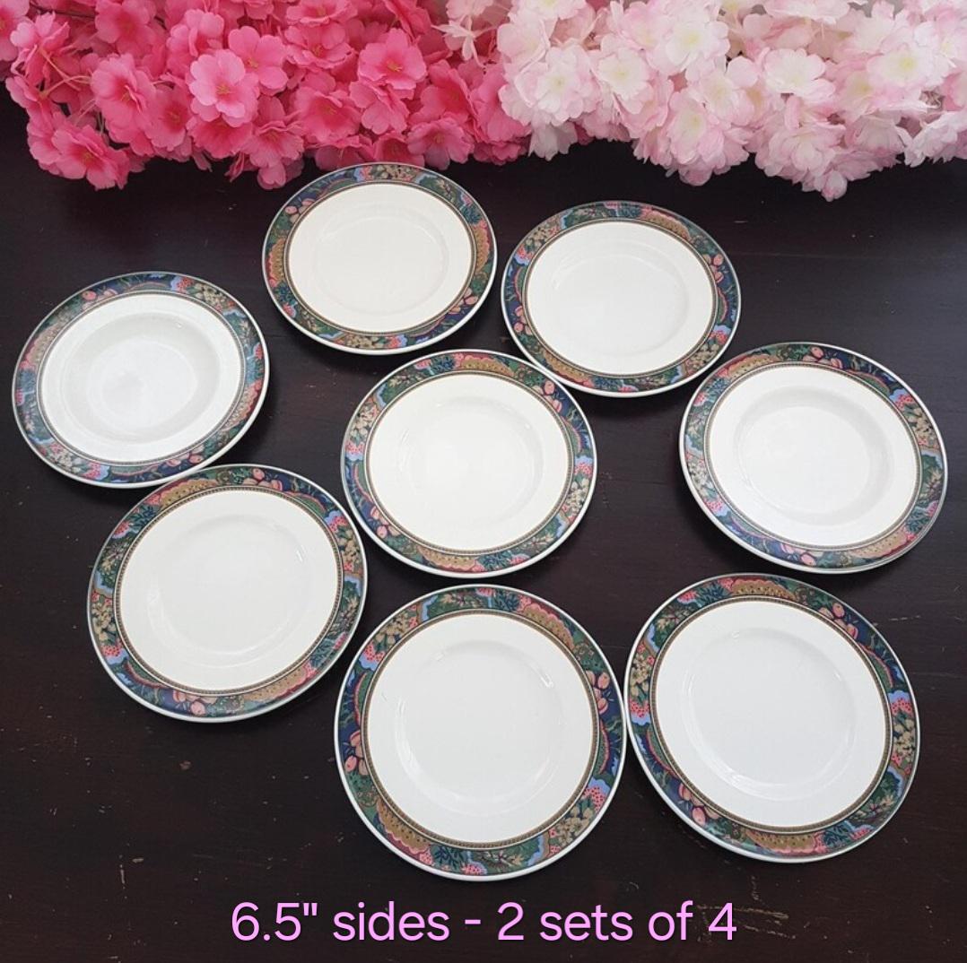 Vintage Mikasa Garden Frenzy dinner or side plates, part of the Intaglio line. Multicolored floral rim in blue, green, pink, red and tan with green painted edge. Thick sturdy plates. Stoneware convenience of oven, dishwasher and microwave safe! Produced 1994 to 1995, now discontinued