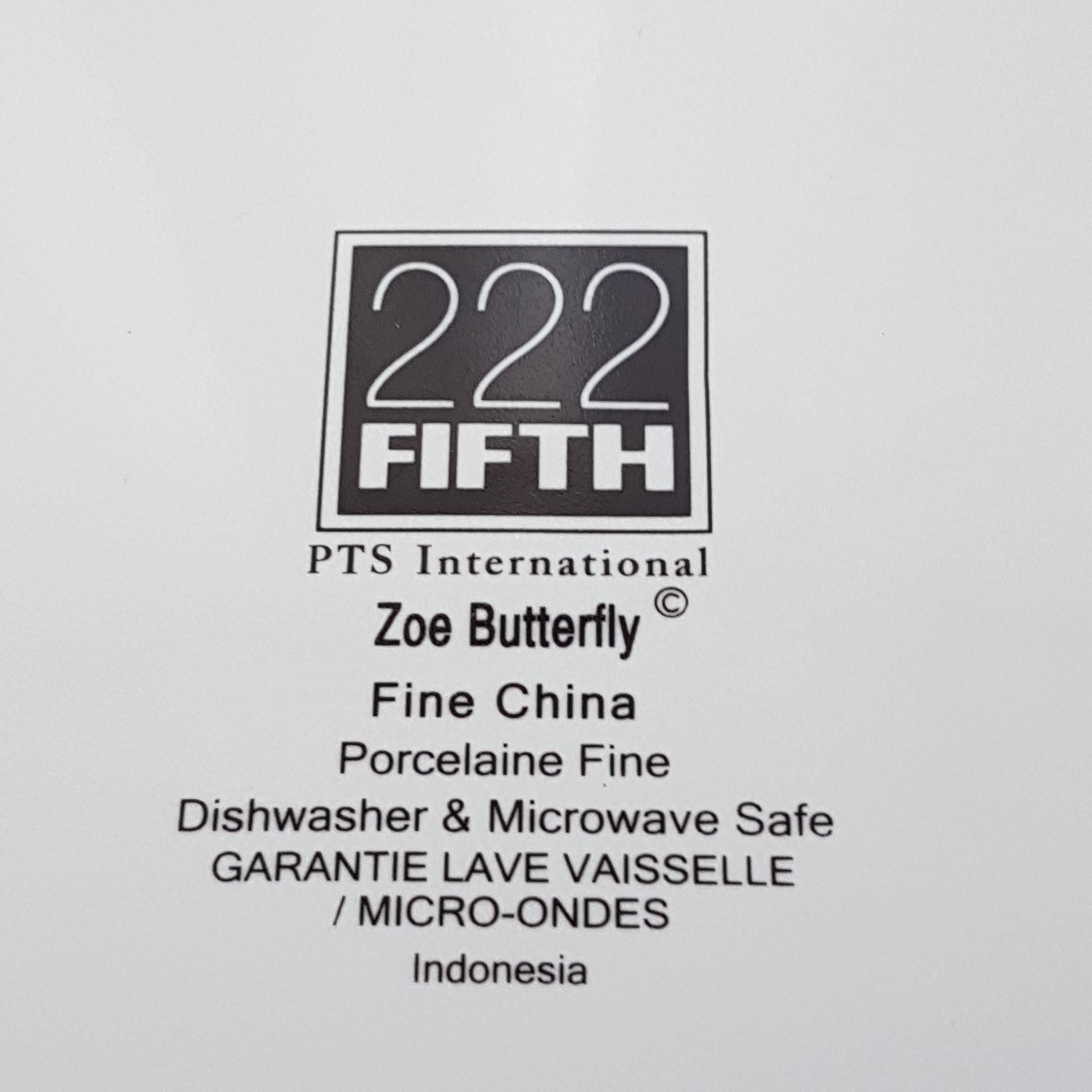Backstamp: "222 Fifth Fine China - Porcelaine Fine - Dishwasher & Microwave Safe - Indonesia"