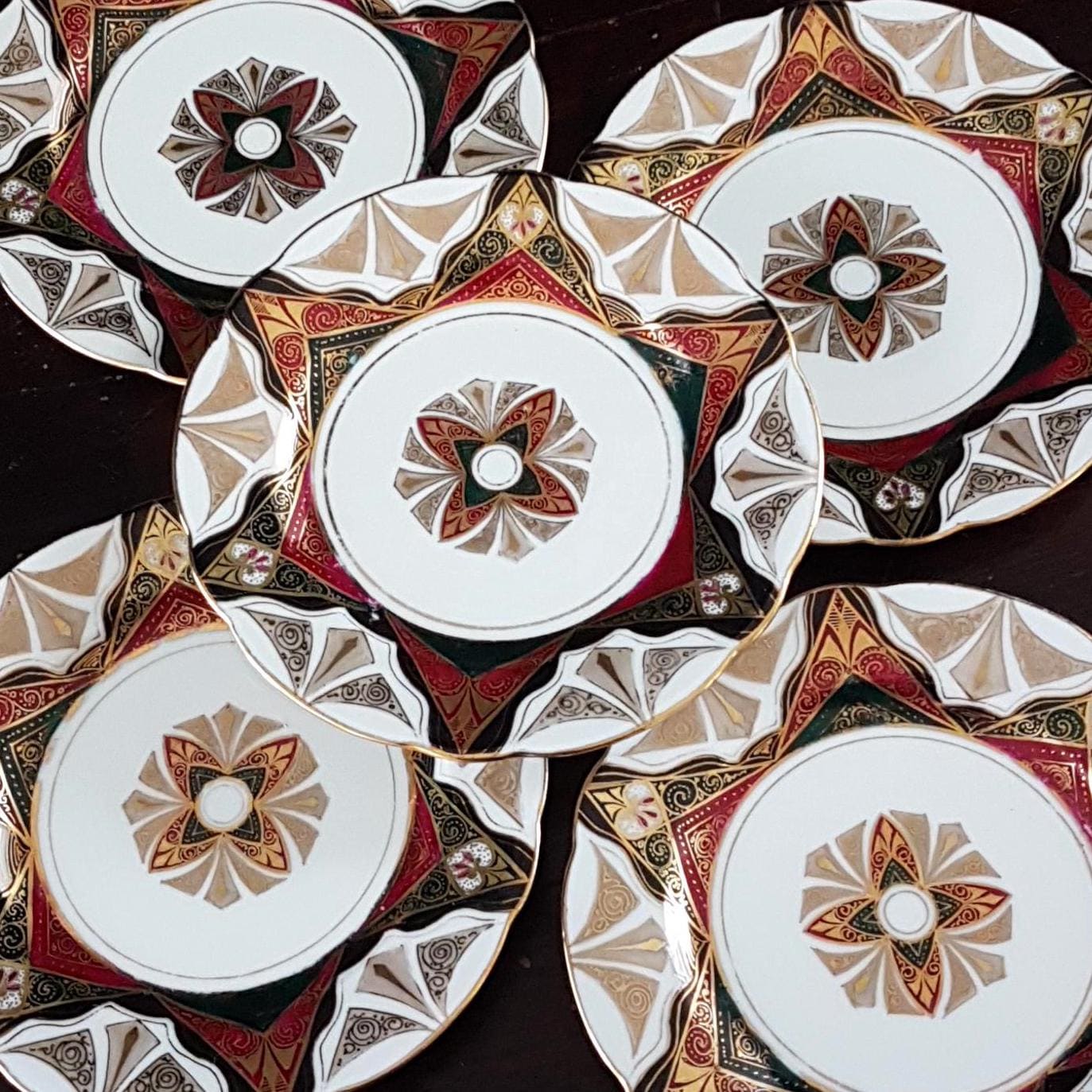 Vintage condition: NO chips. NO cracks. Light gold wear, in particular the inner circles where the plates would stack on top of each other.