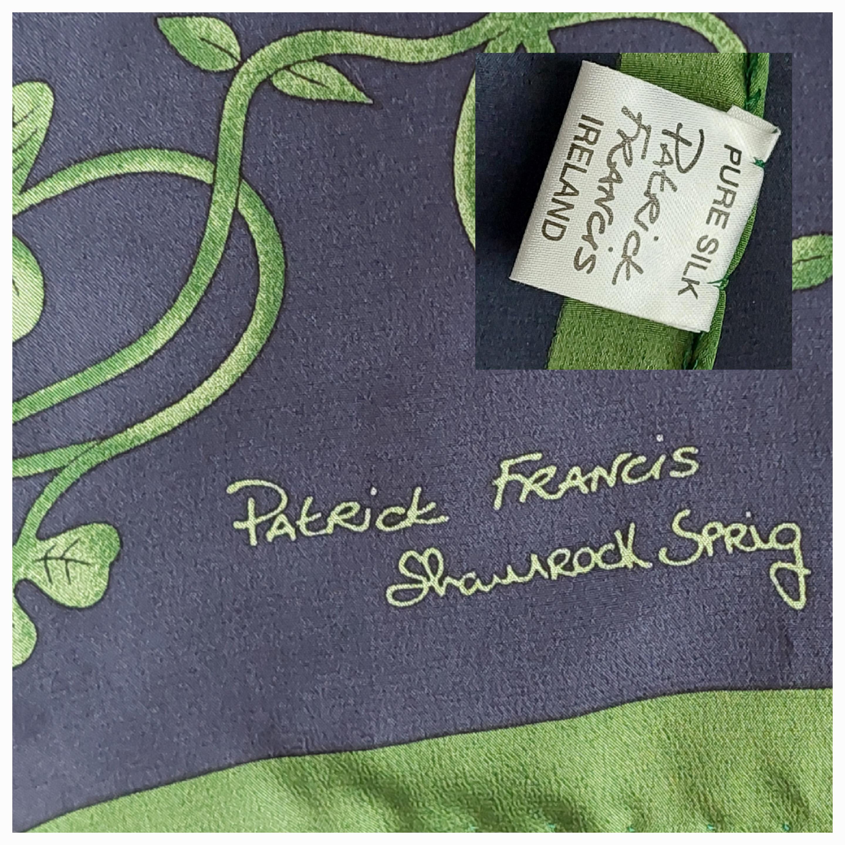 Long silk scarf Rolled edge. Signed Patrick Francis Shamrock Song