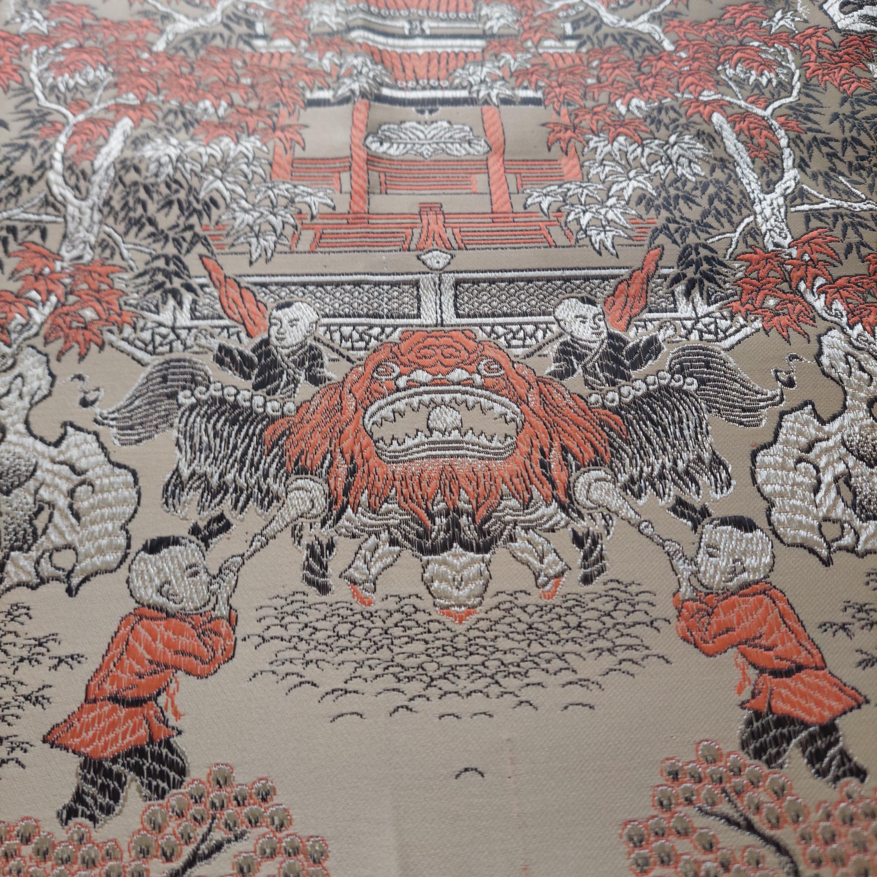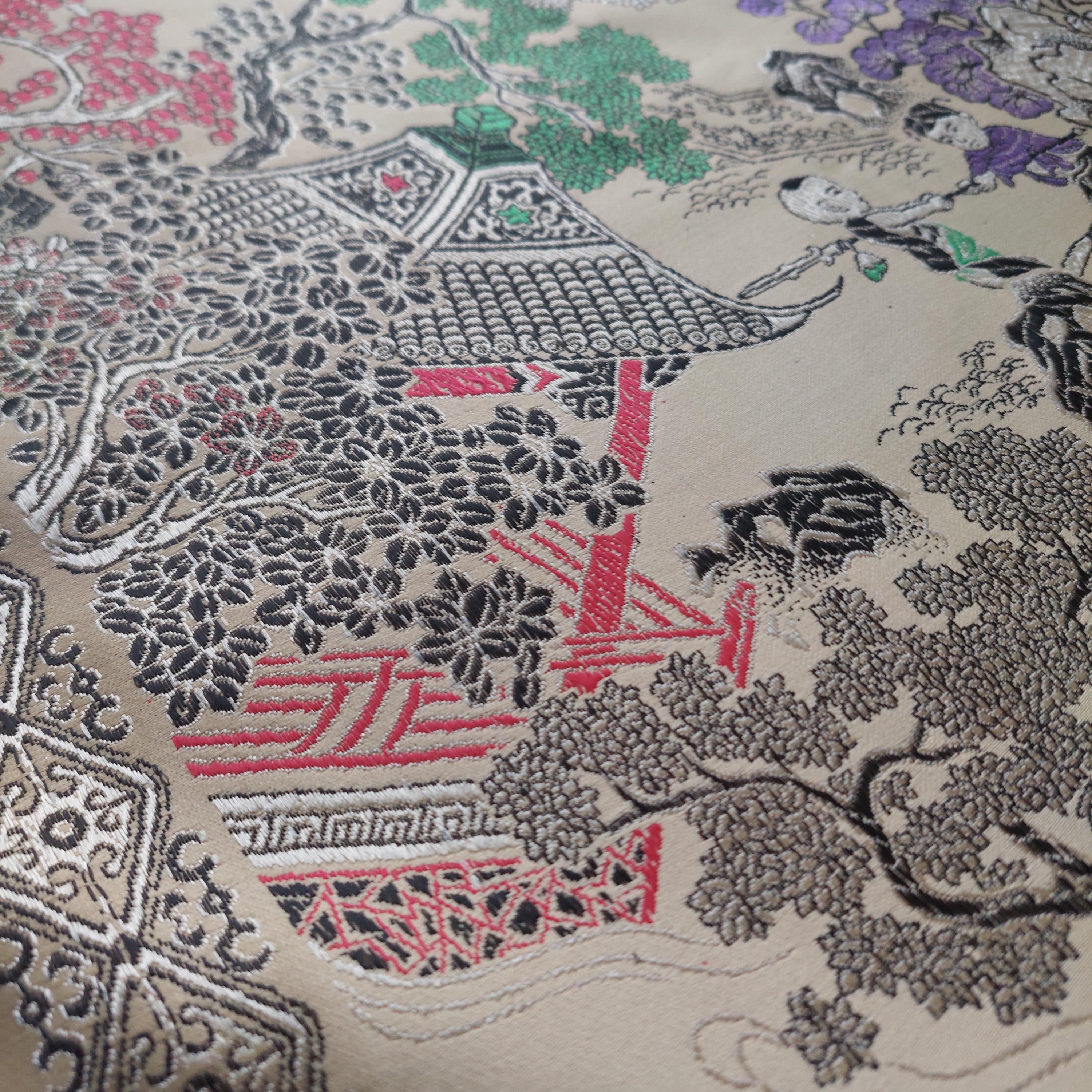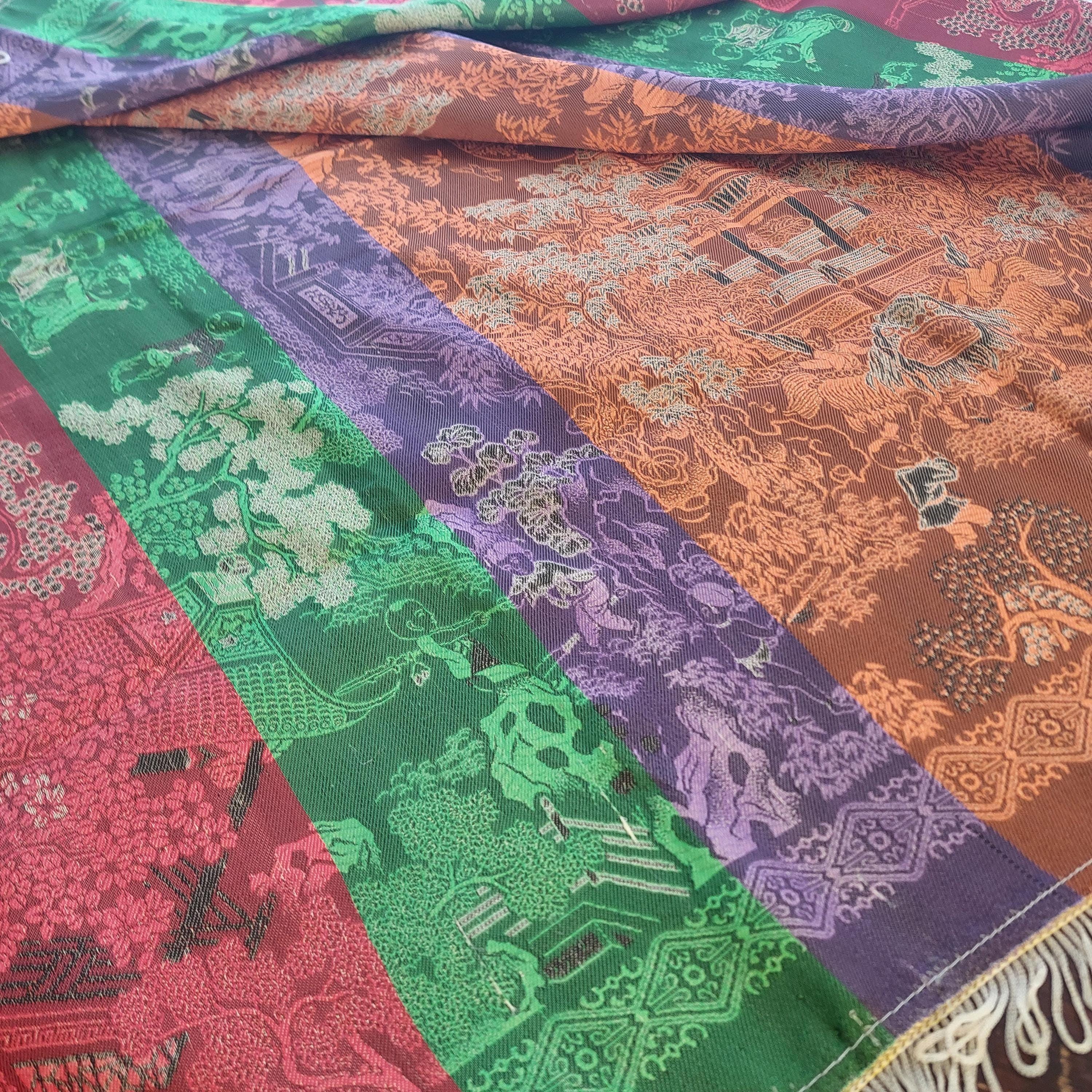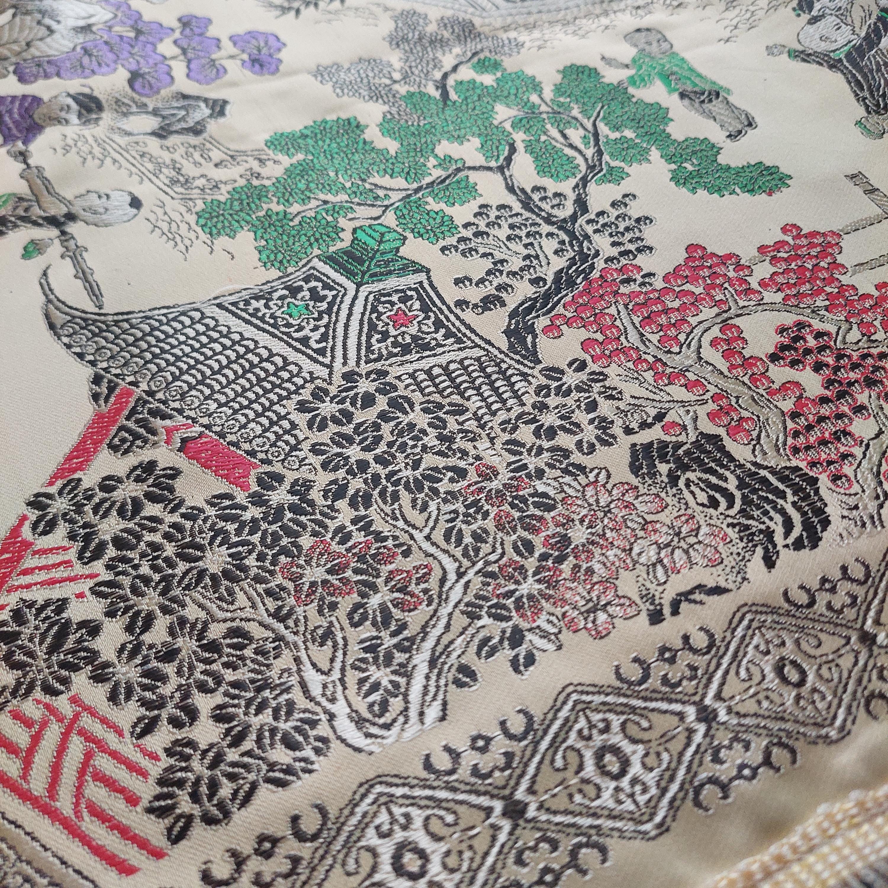 Vintage Asian reversible, square silk tablecloth with loop-style fringe.