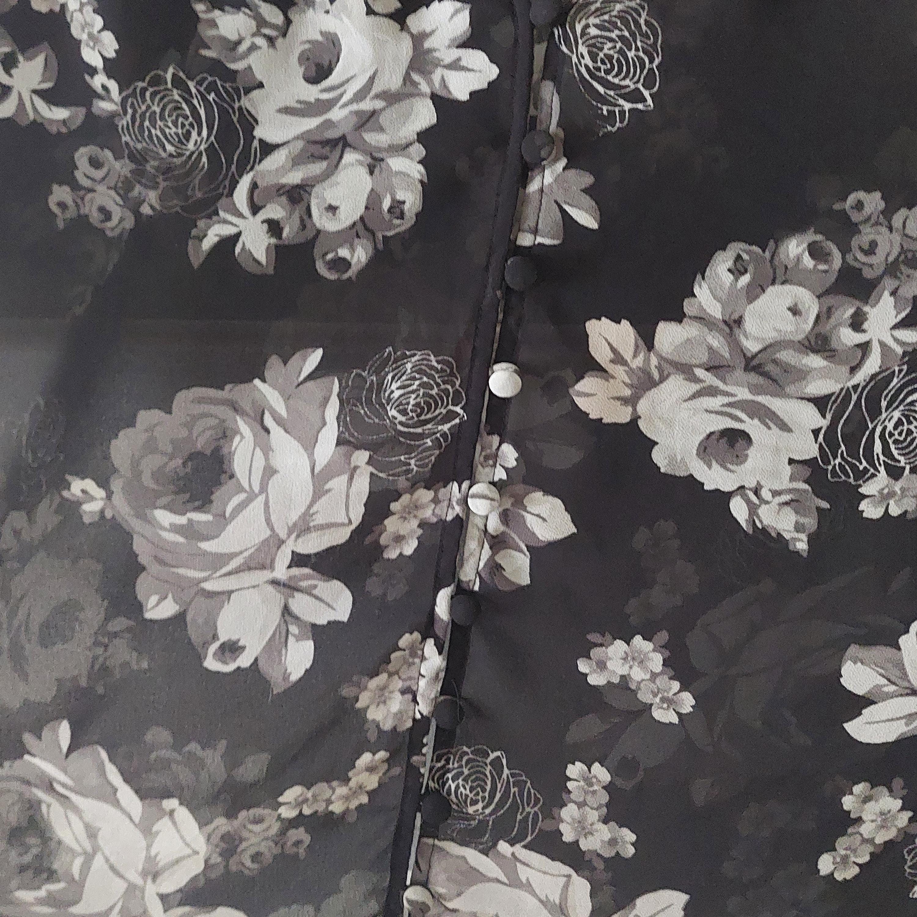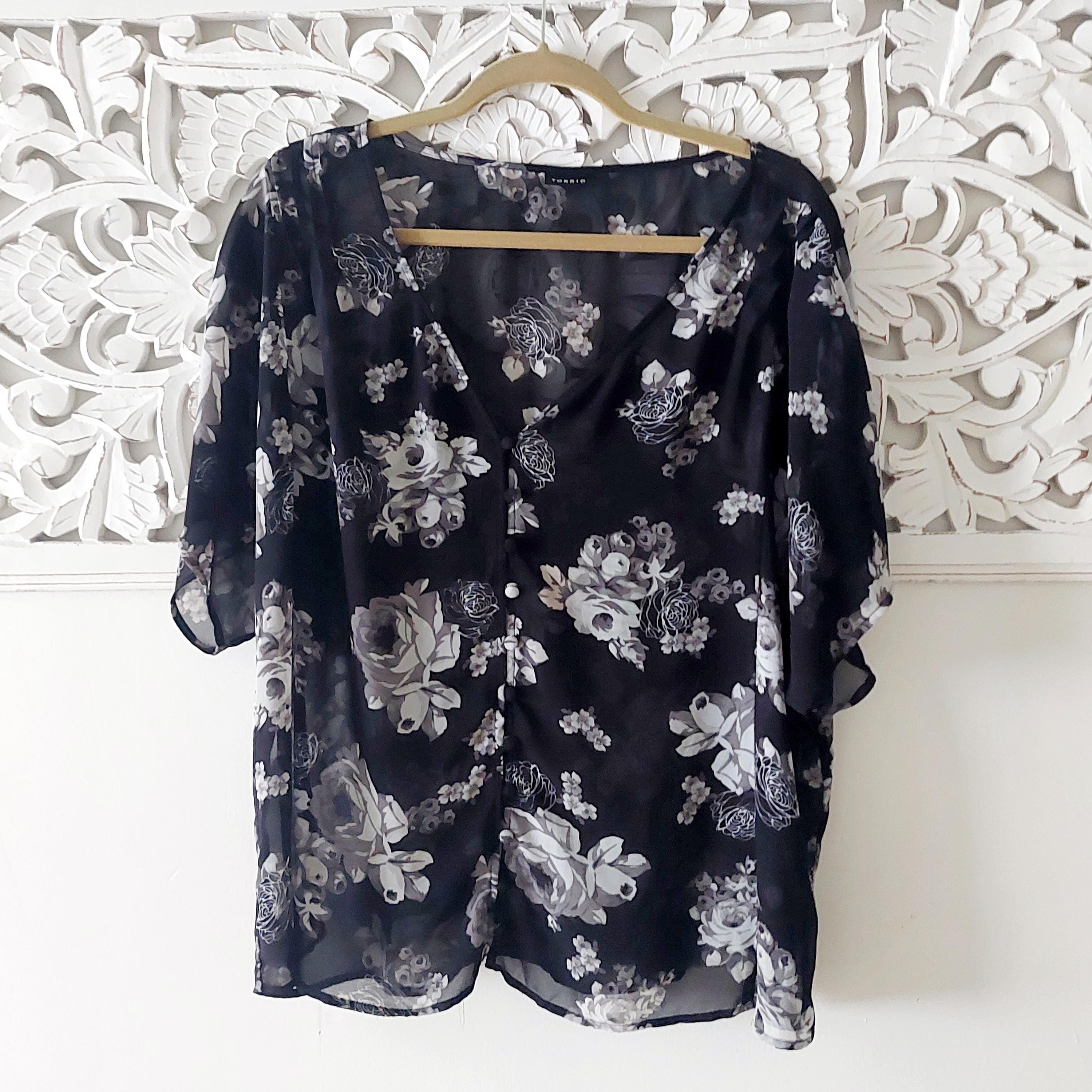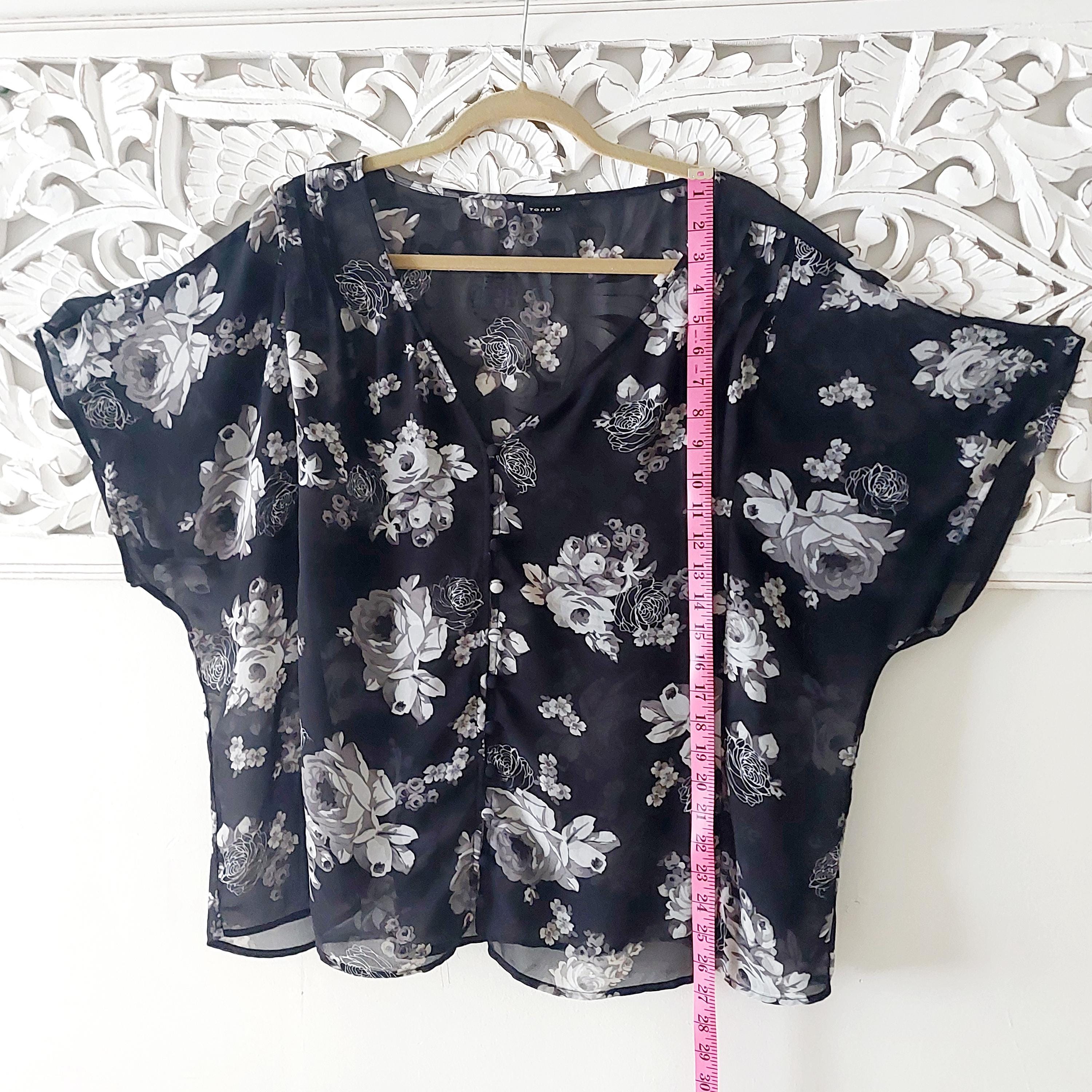 Vintage Torrid black sheer floral print short sleeve blouse with button front