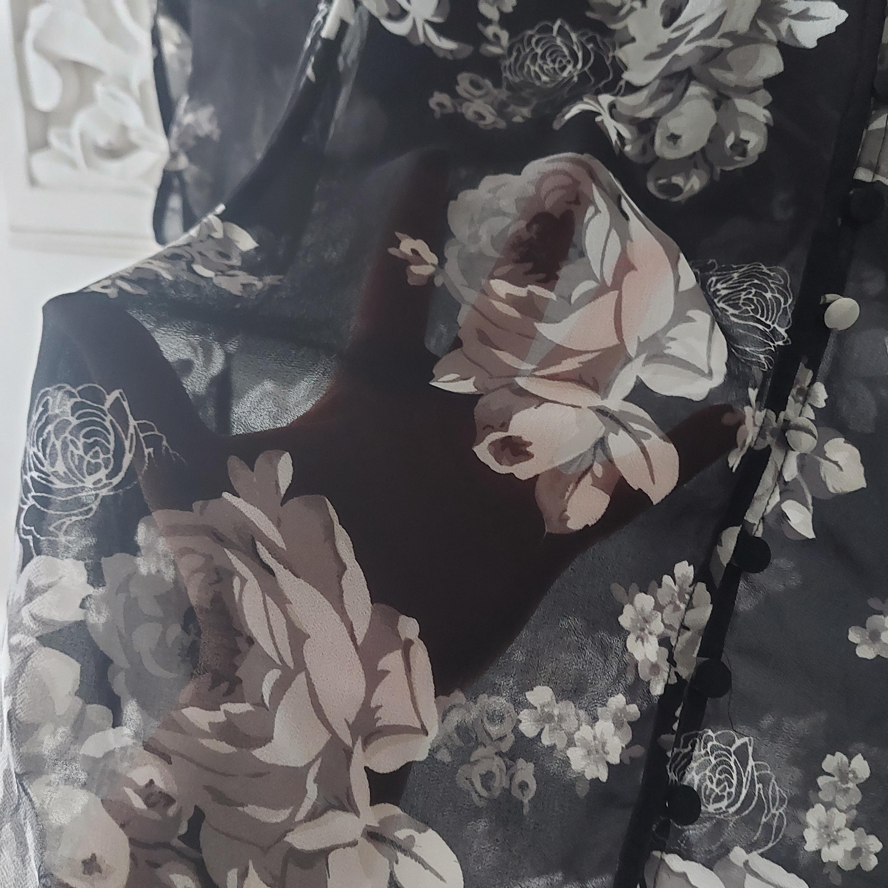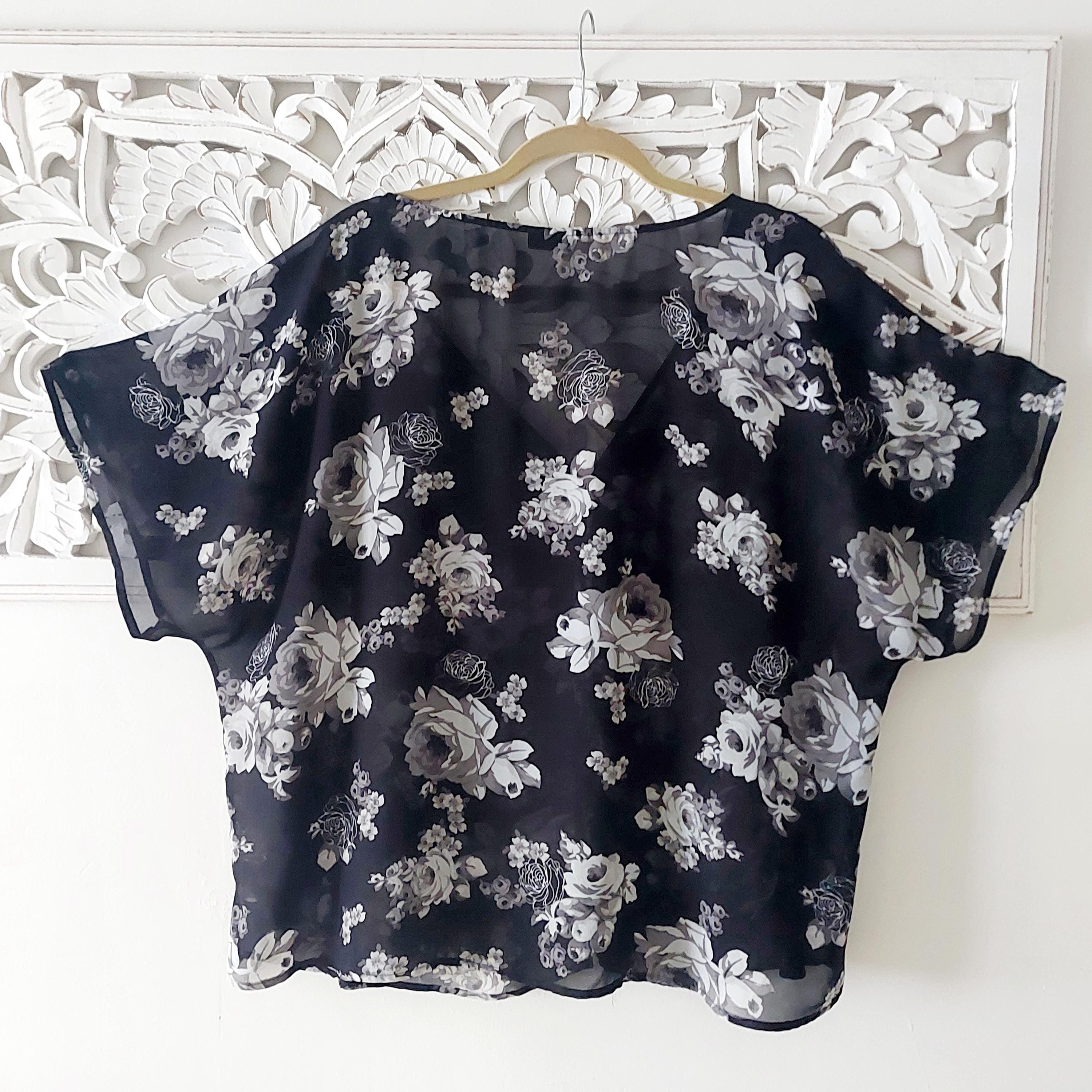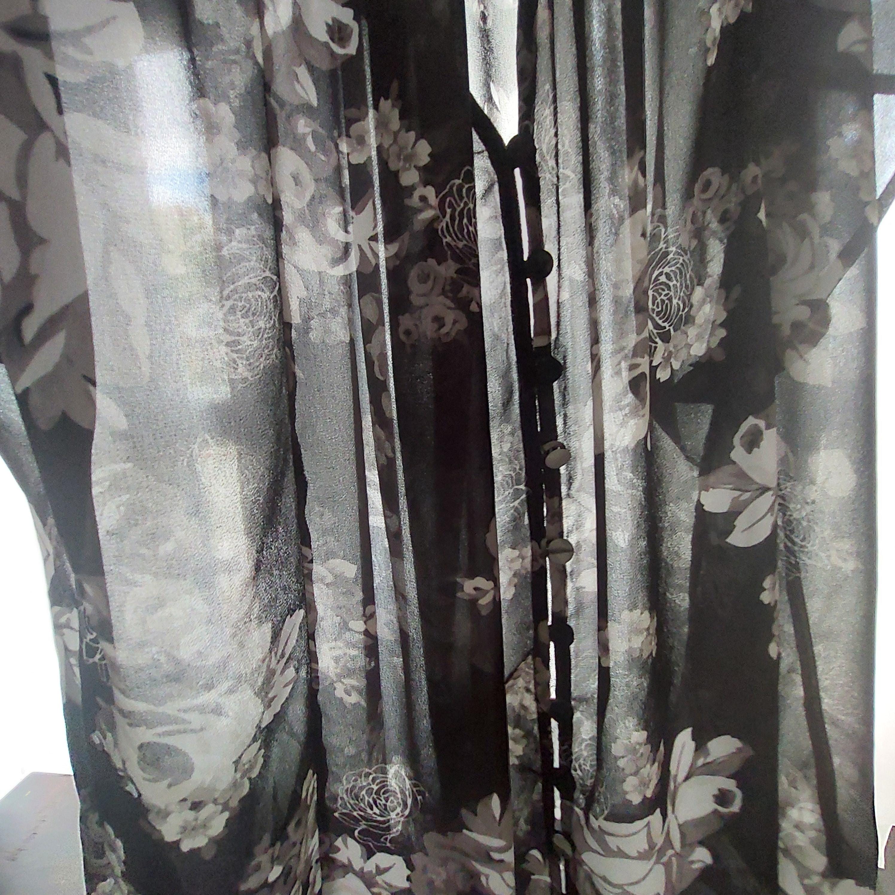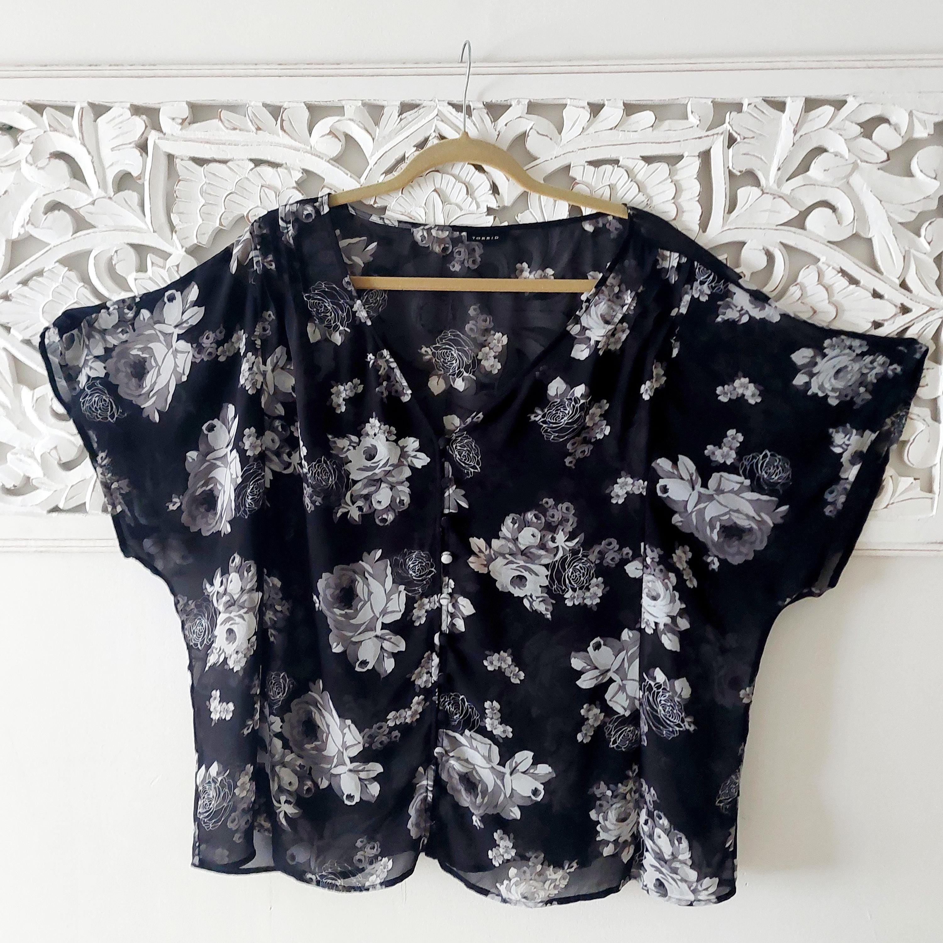 Vintage Torrid black sheer floral print short sleeve blouse with button front