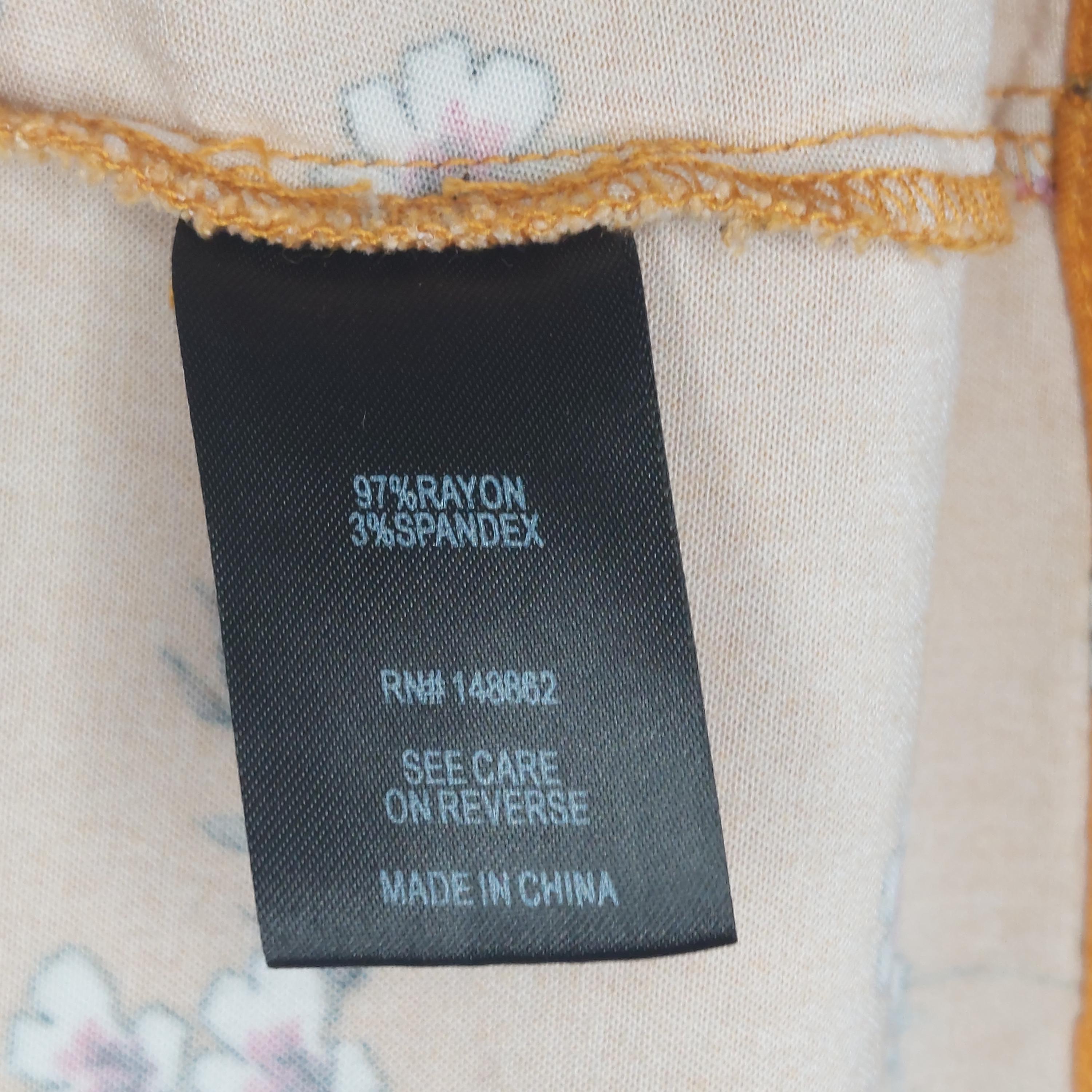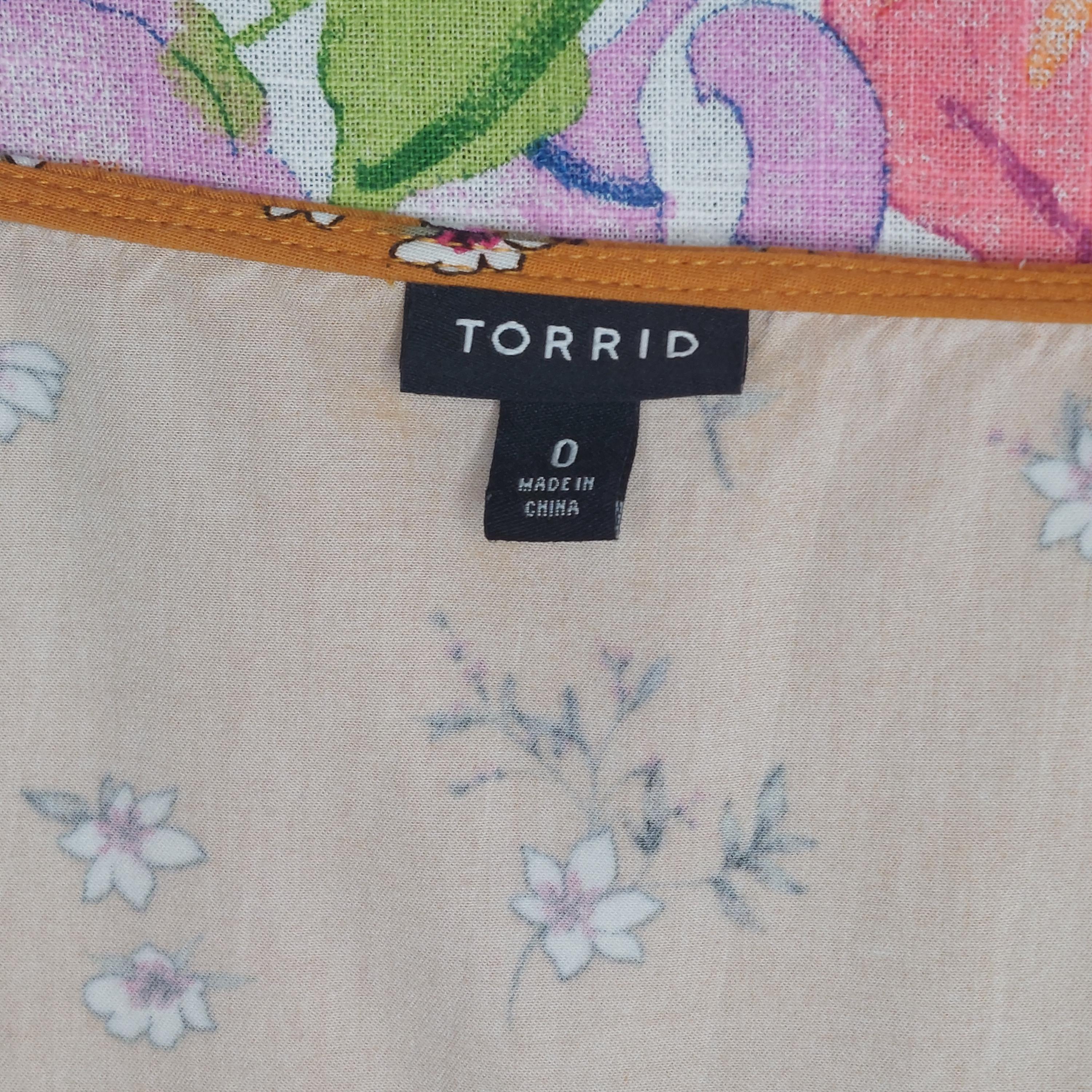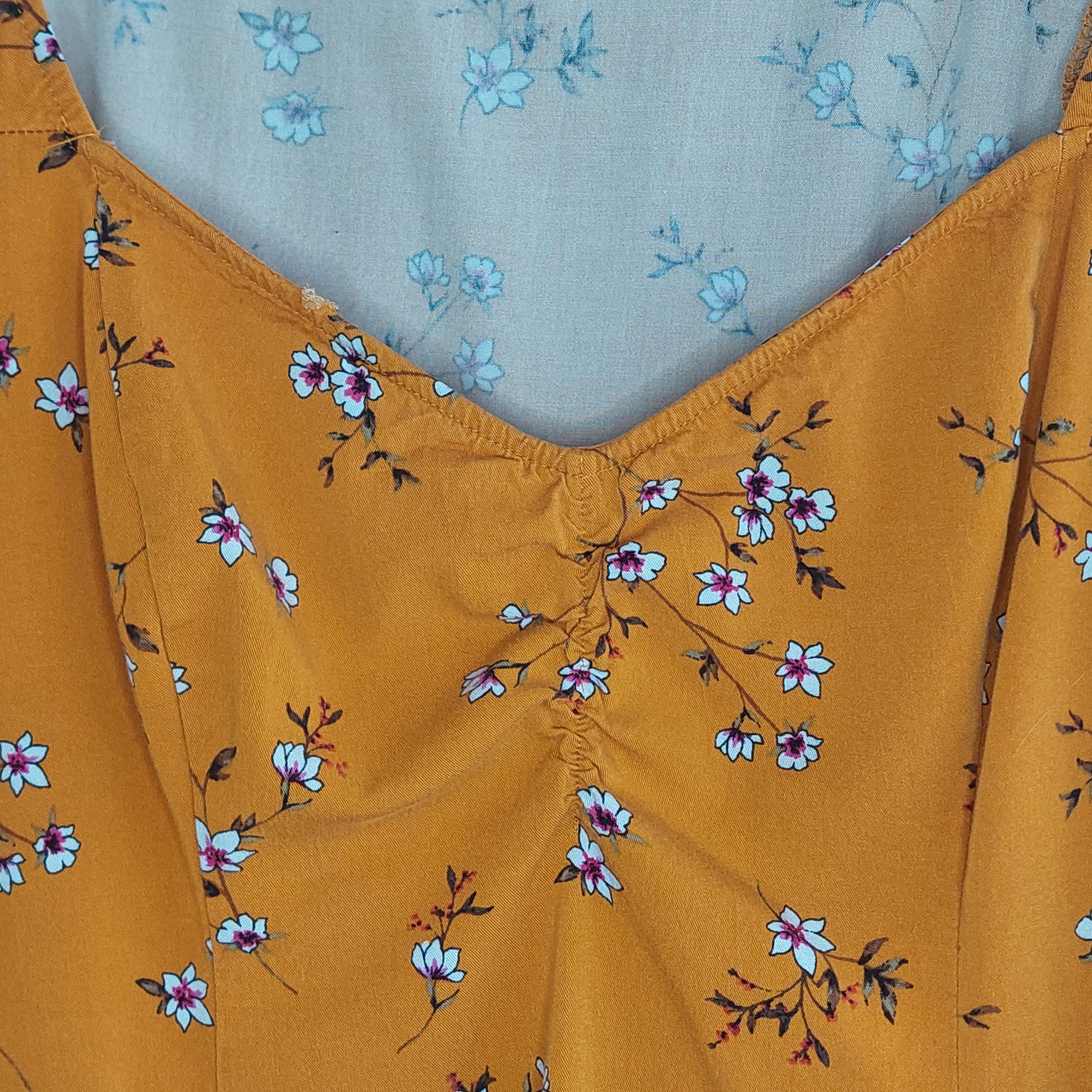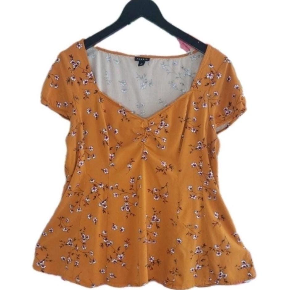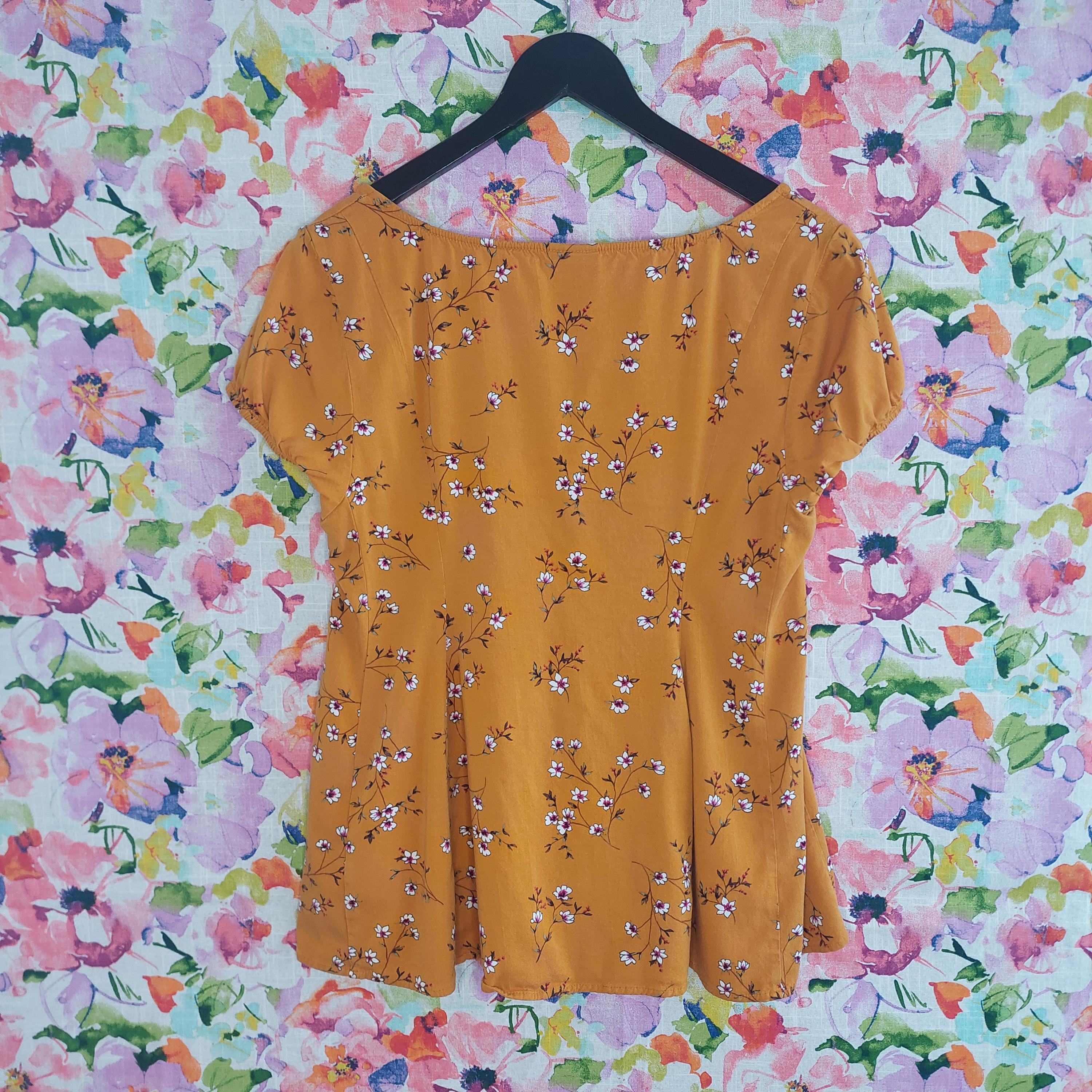 Vintage Torrid golden orange with white & pink florals. Elastic edged short sleeves.