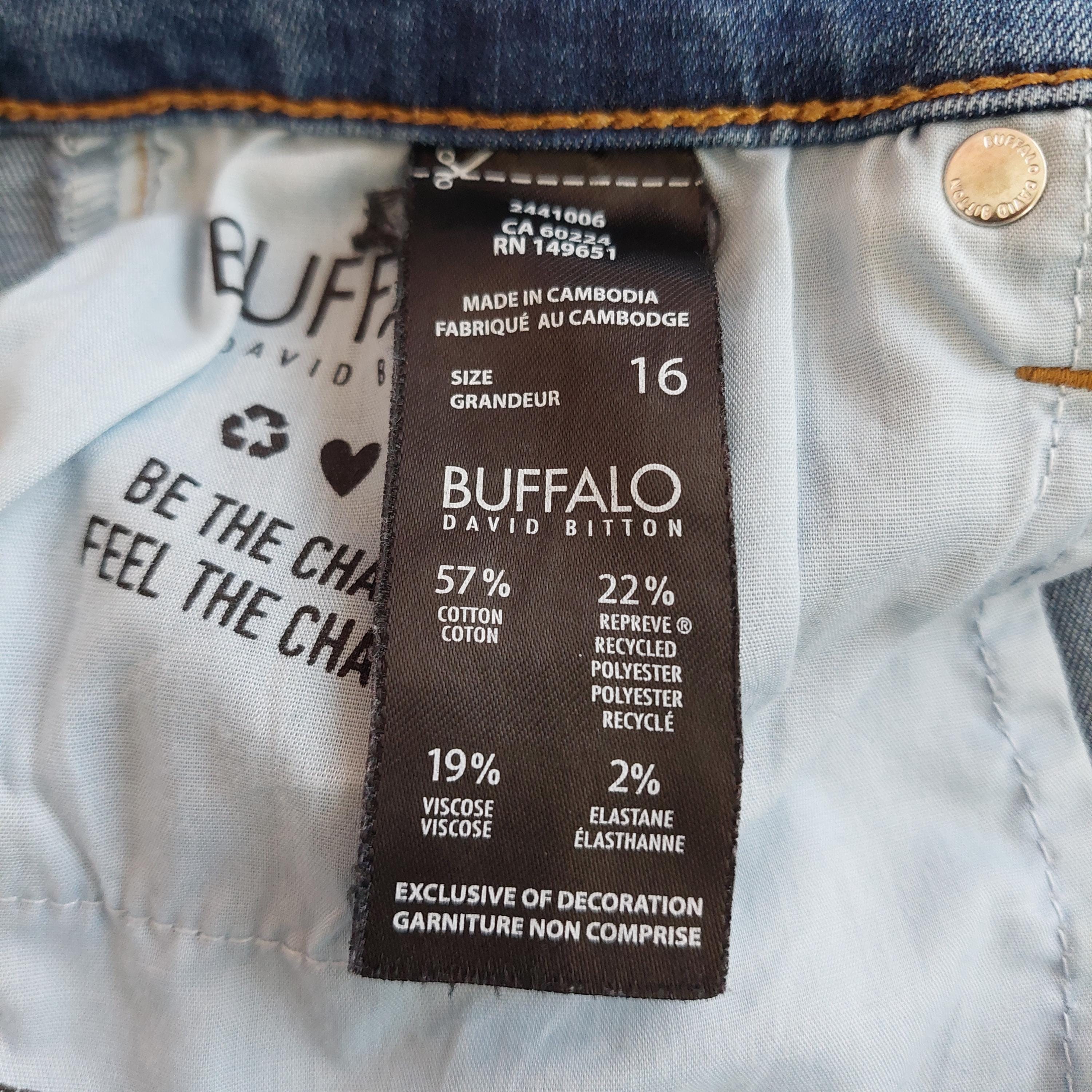 Tag: "Buffalo David Bitton - Mollie 16 - High-Rise Stretch Skinny - Made in Cambodia - 57% Cotton - 22% Recycled Polyester - 19% Viscose - 2% Elastane"