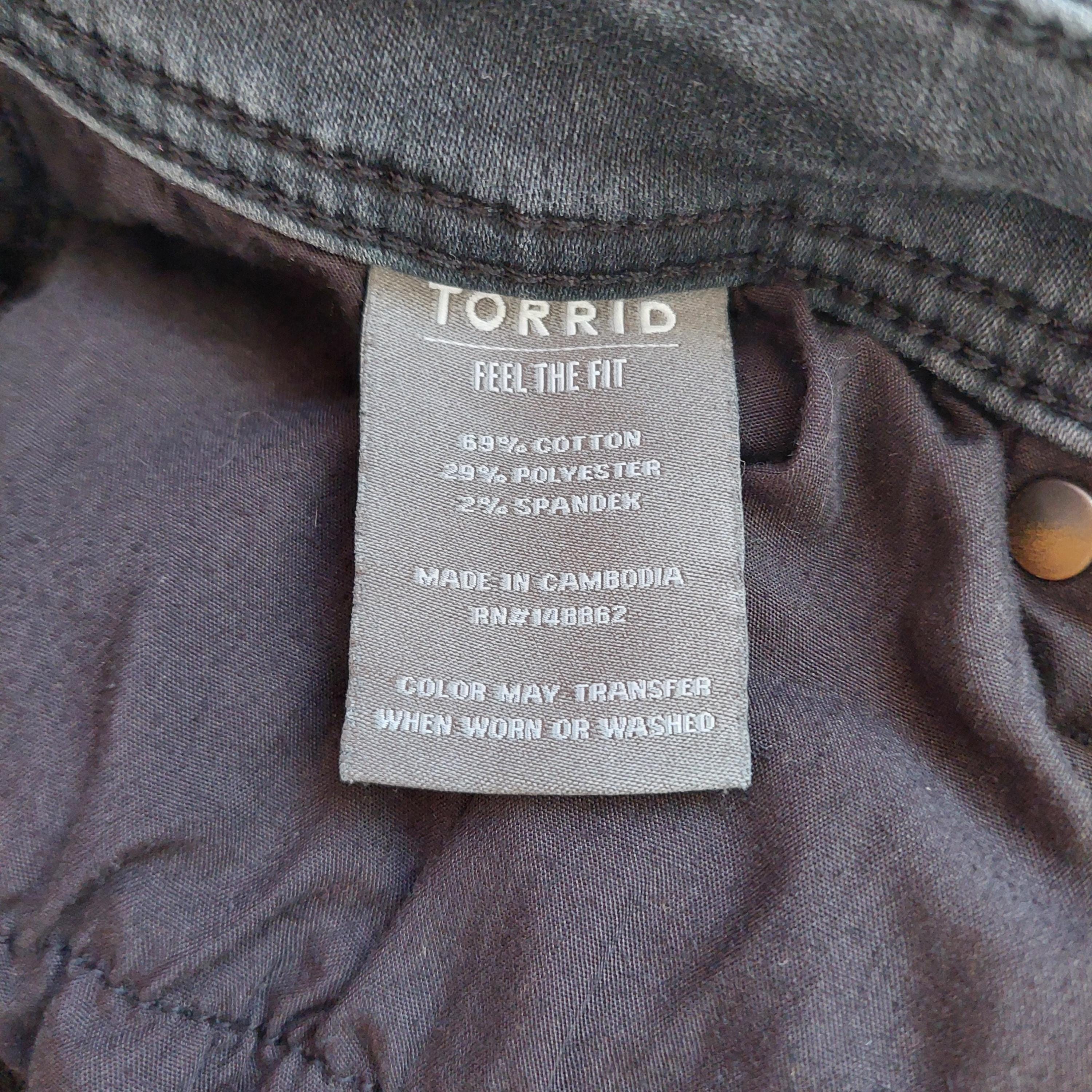 Tag: "Torrid Feel The Fit - 18T - 69% Cotton - 29% Polyester - 2% Spandex - Made in Cambodia"