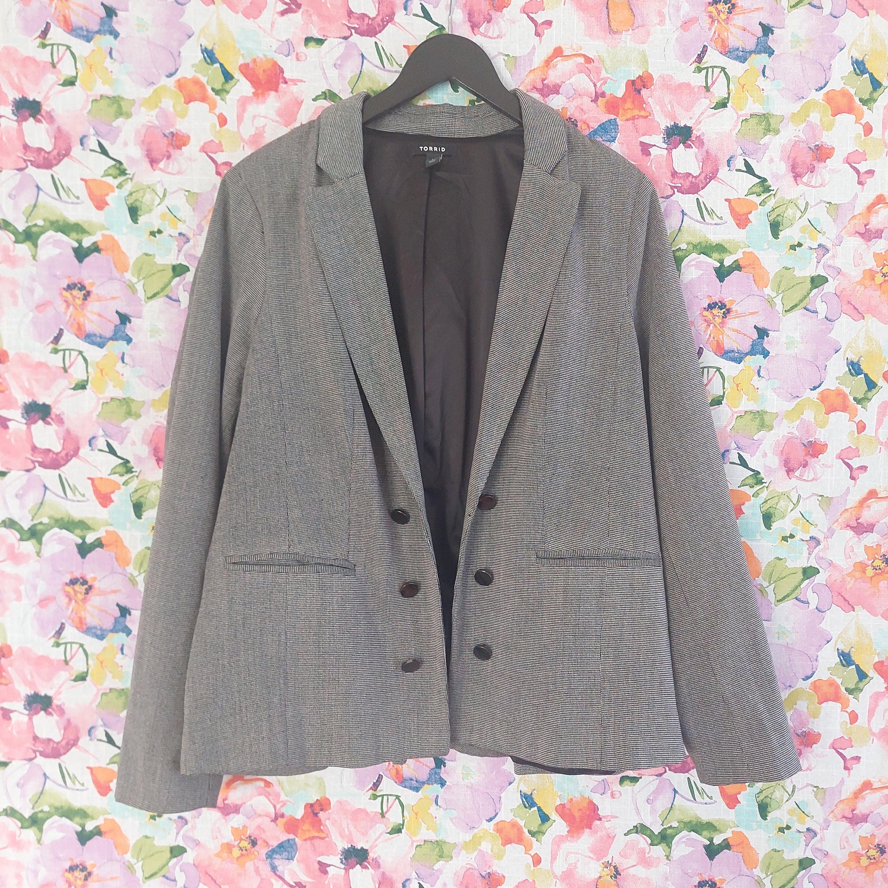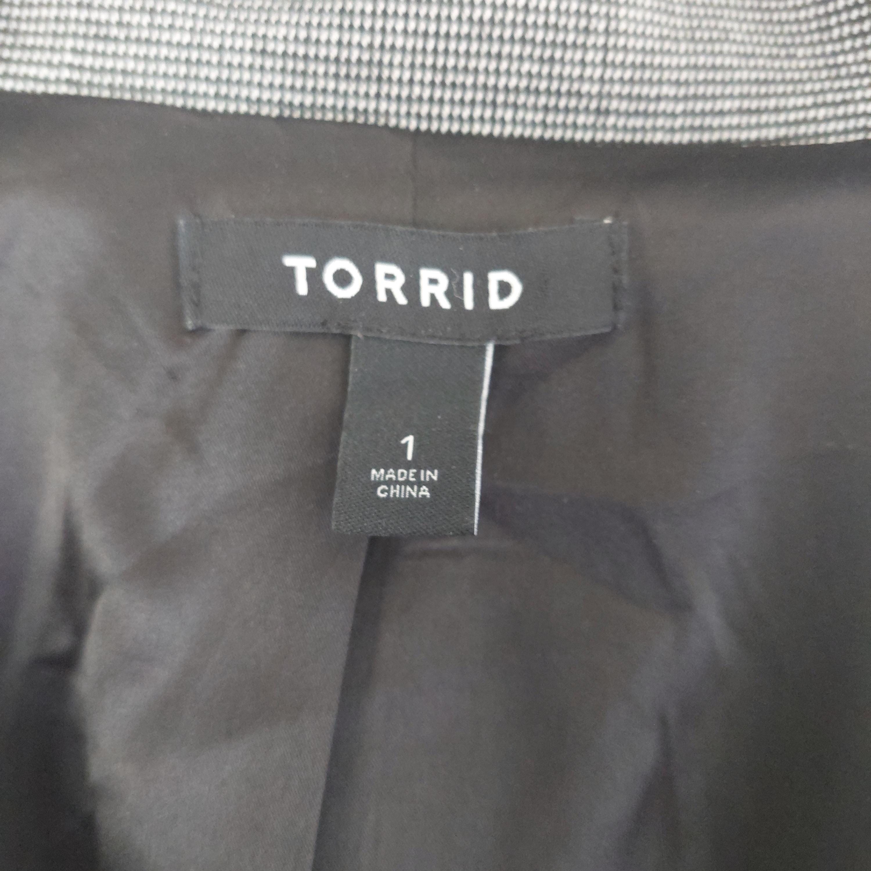 Tag: "Torrid 1 - Shell 63% Polyester - 33% Rayon - 4% Spandex - Lining - 96% Polyester - 4% Spandex - Machine Wash Cold - Tumble Dry Low - Made in China"