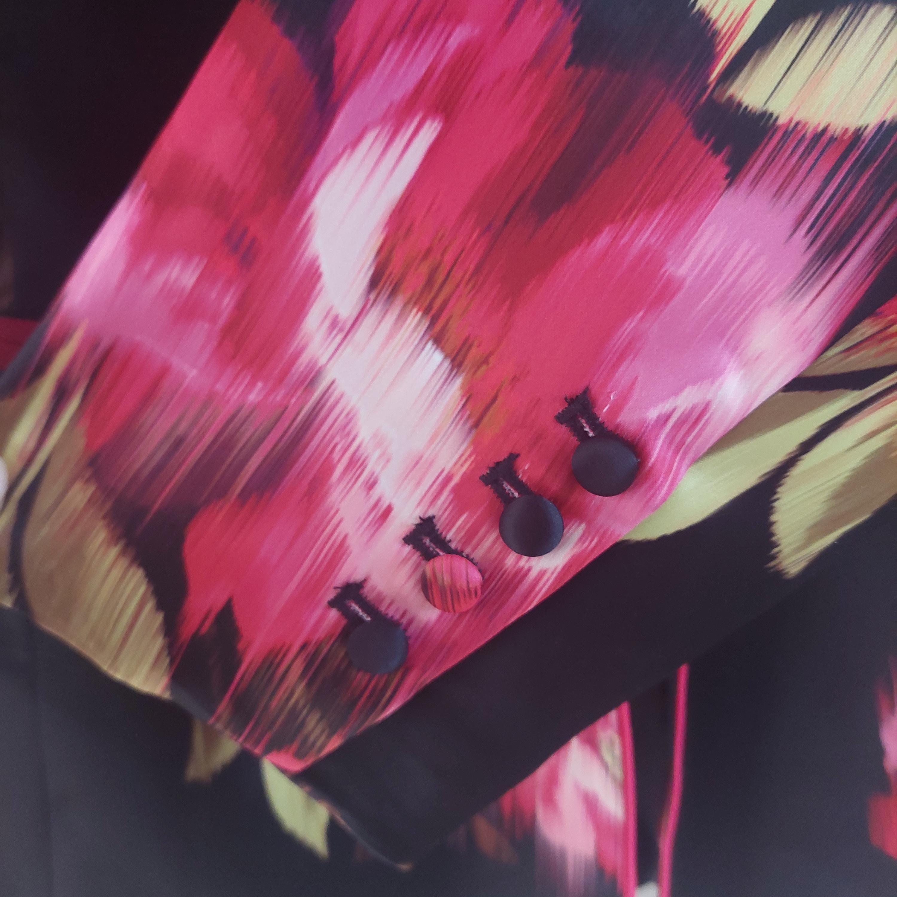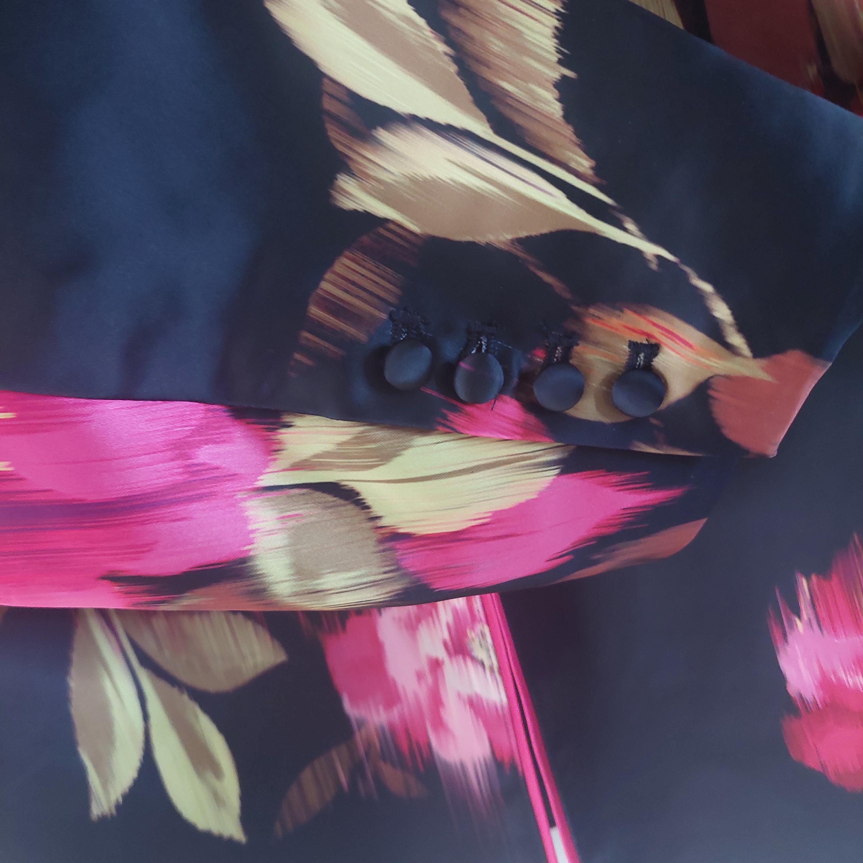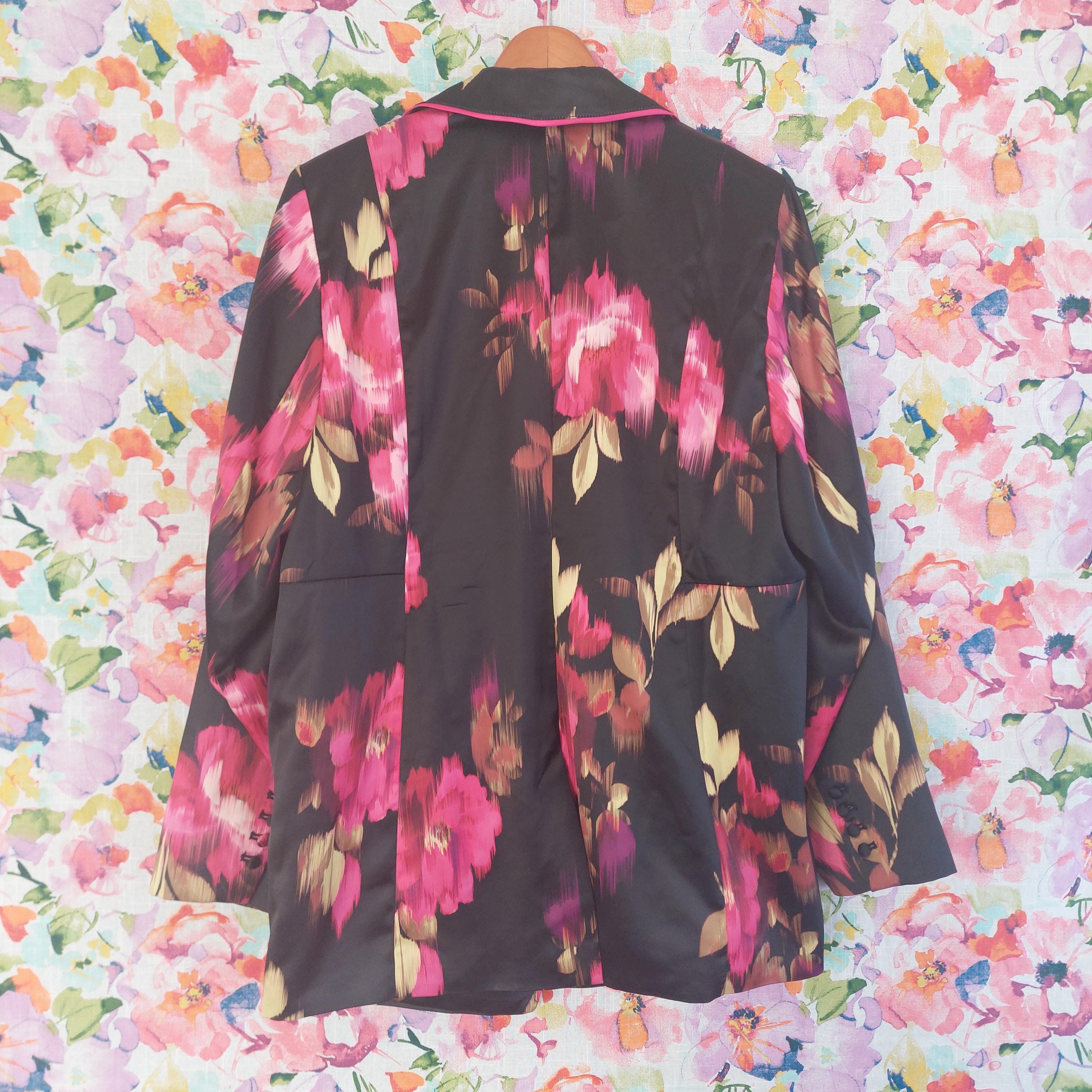 Vintage satin woven soft, silky blazer with colorful print floral pattern.