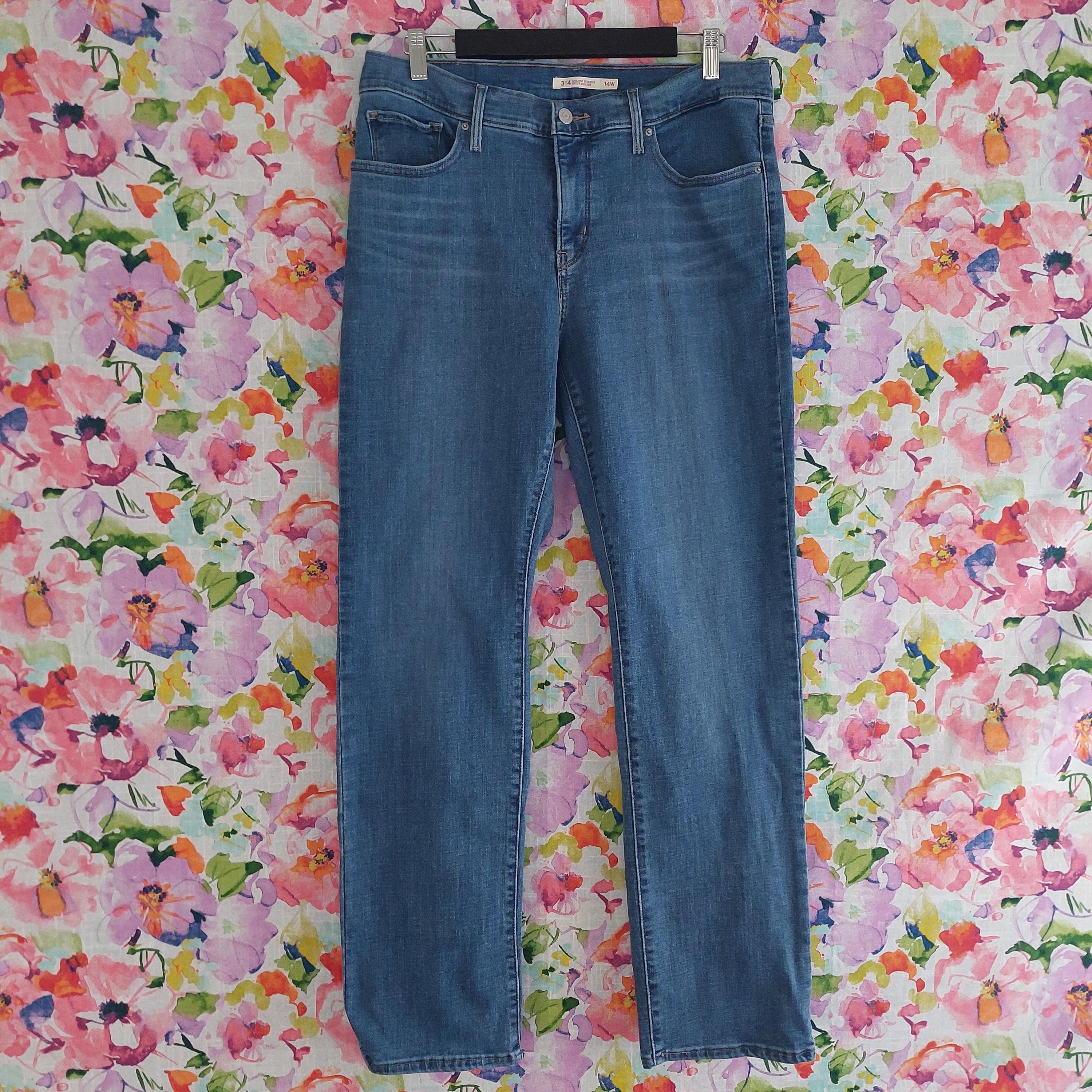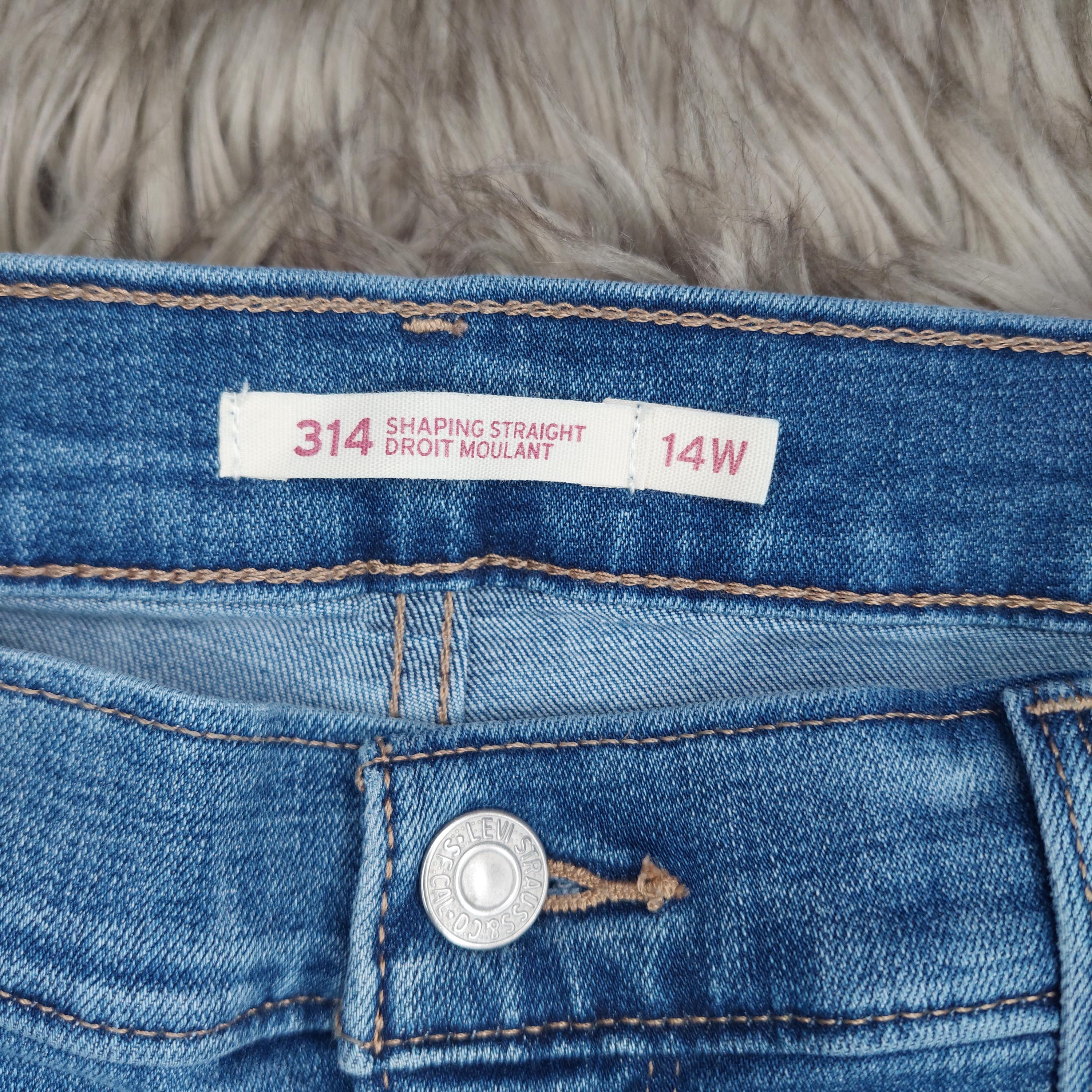 Tag: "Levi's Strauss - 314 Shaping Straight - 14W - Made in Sri Lanka - 60% Cotton - 23% Viscose - 16% Polyester - 1% Elastane - Machine Wash Cold - Tumble Dry Medium"