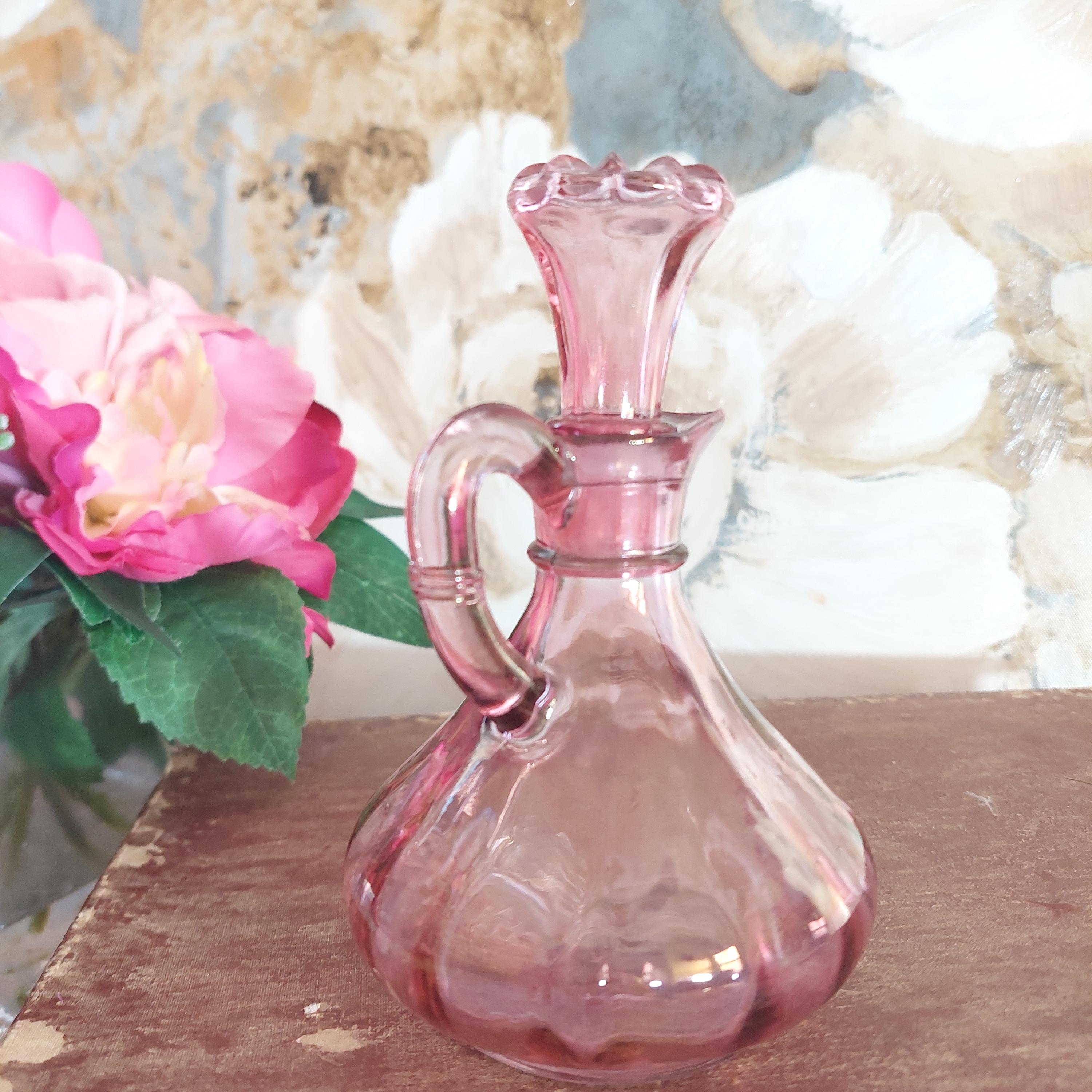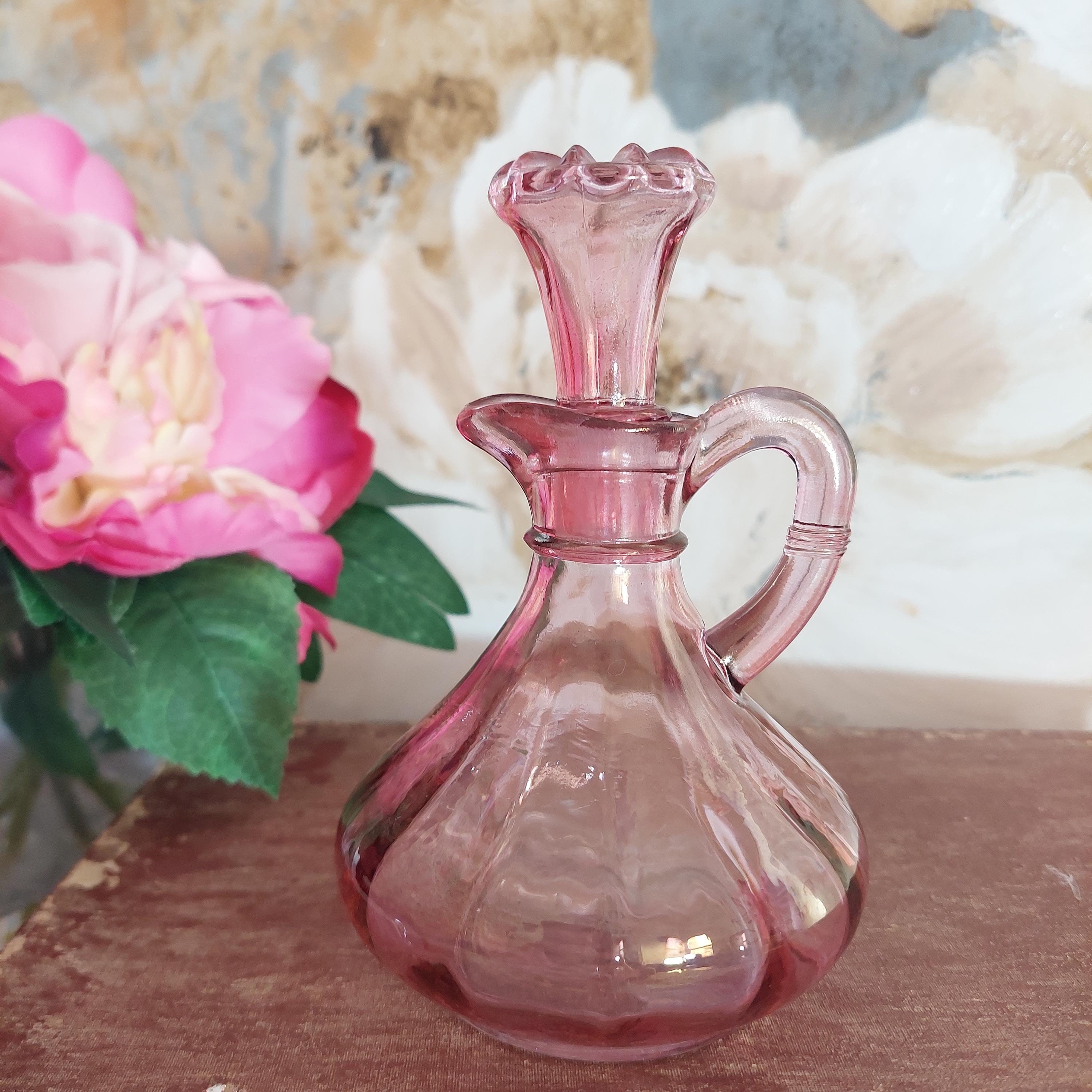 Vintage pink-purple oil or vinegar cruet with matching glass stopper.