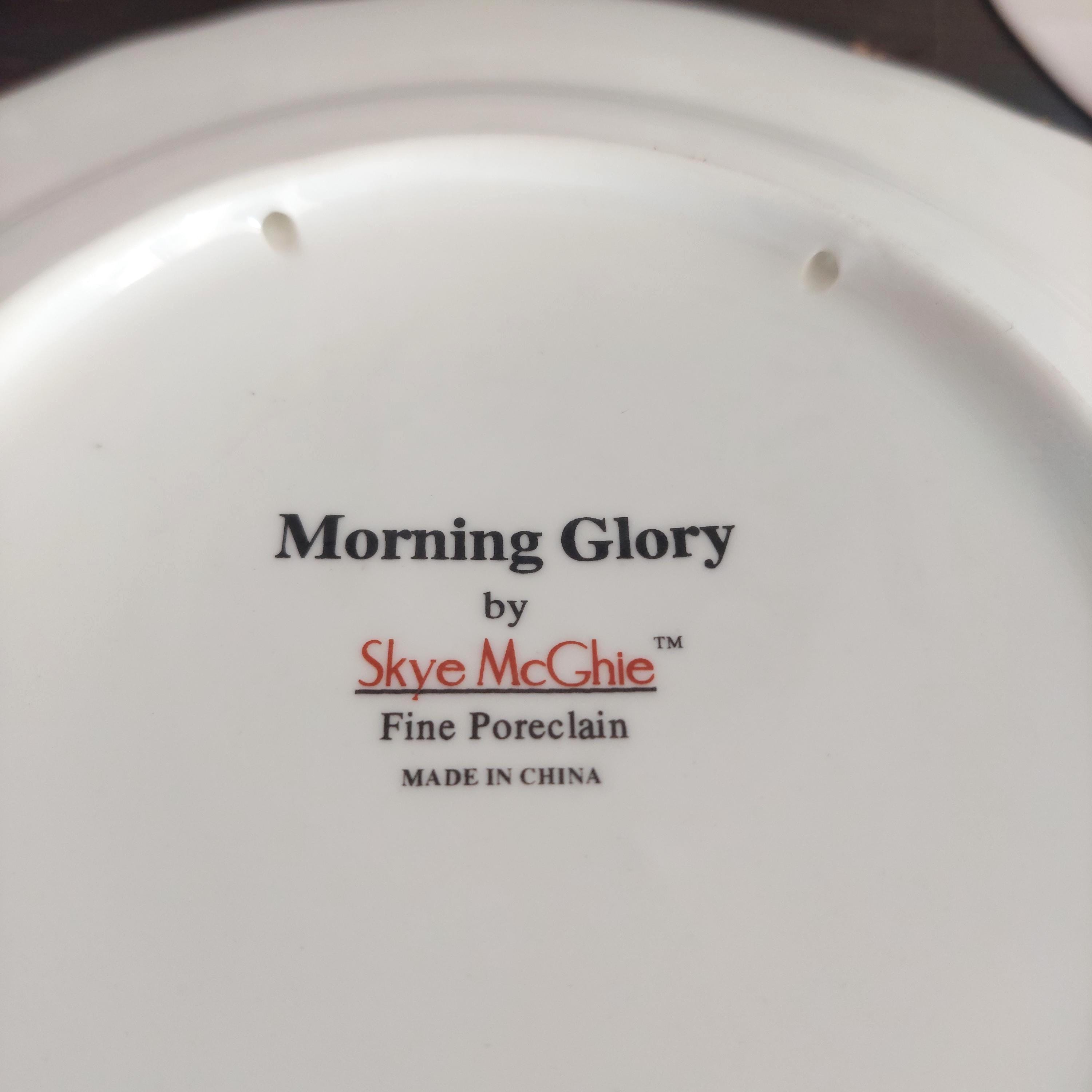 Backstamp: "Morning Glory by Skye McGhie - Fine Porcelain - Made in China"