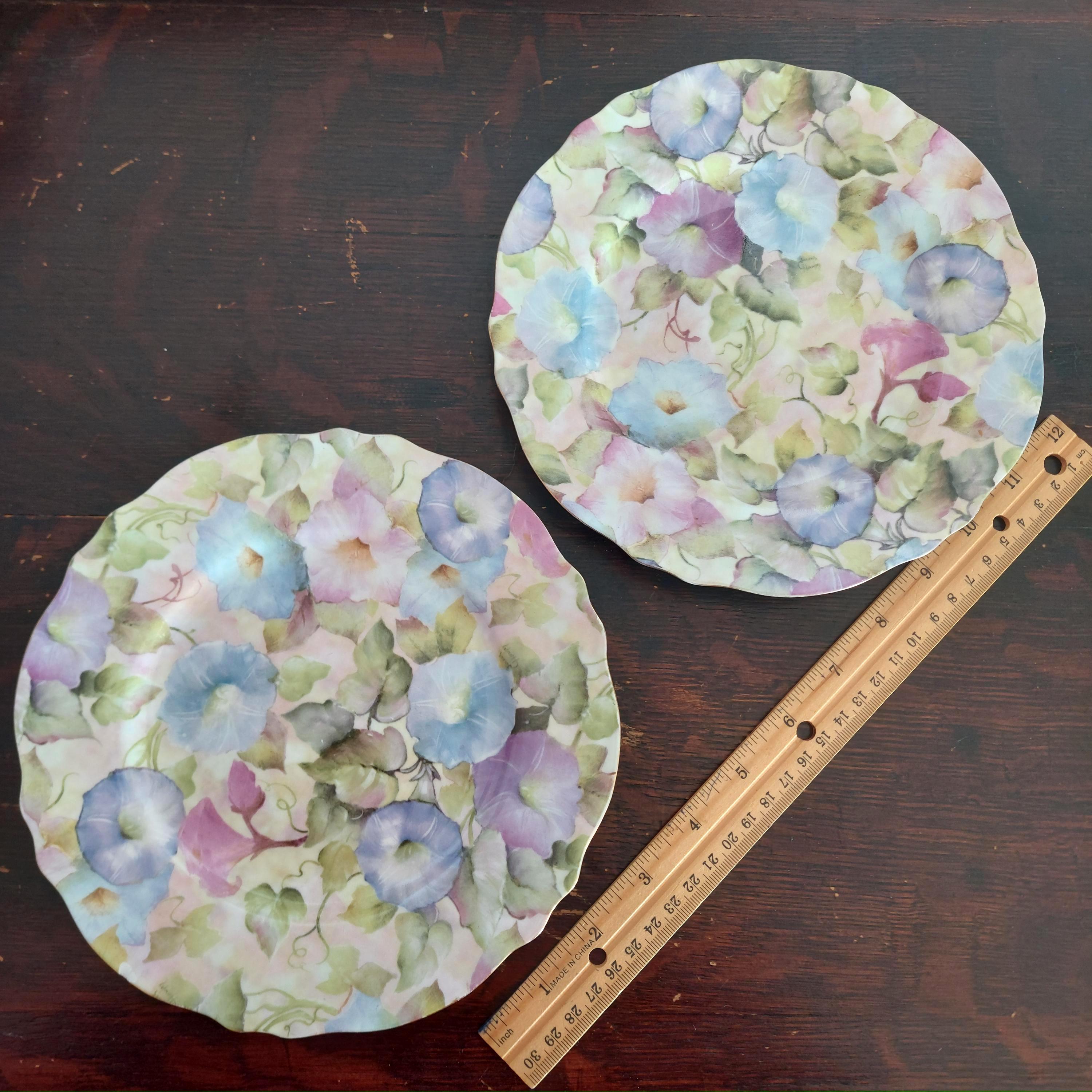 Pair of decorative wall plates in MORNING GLORY pattern by Skye McGhie.