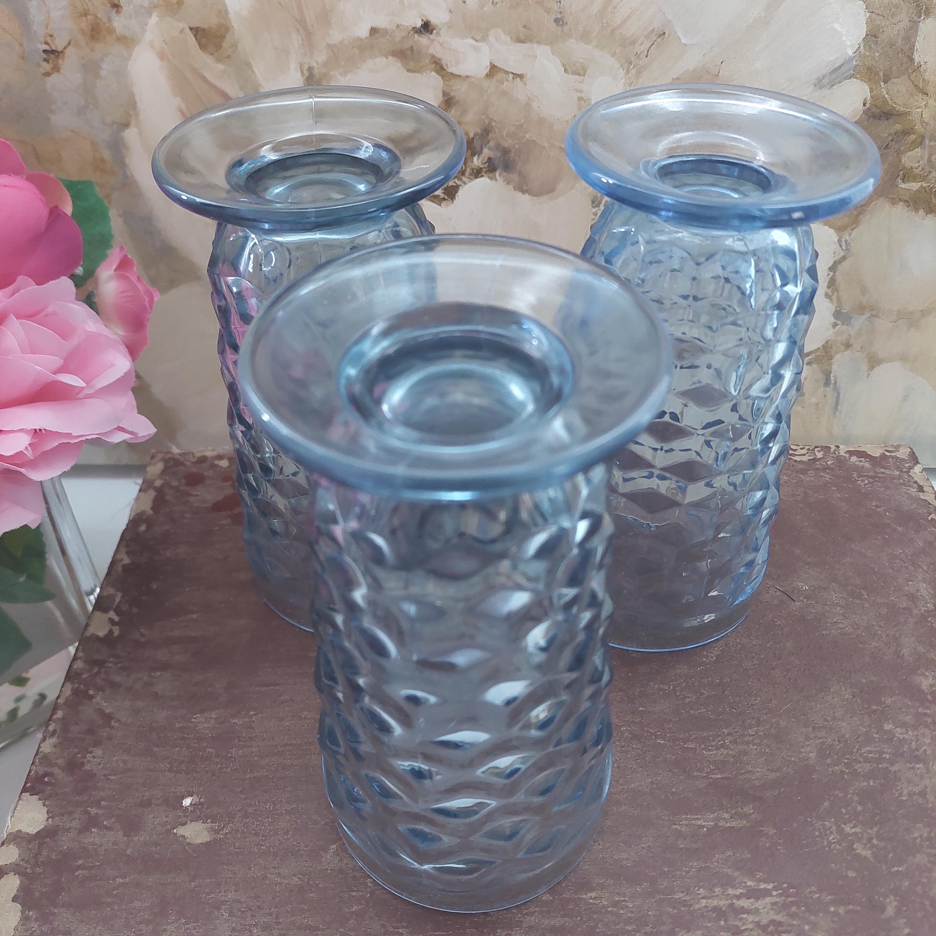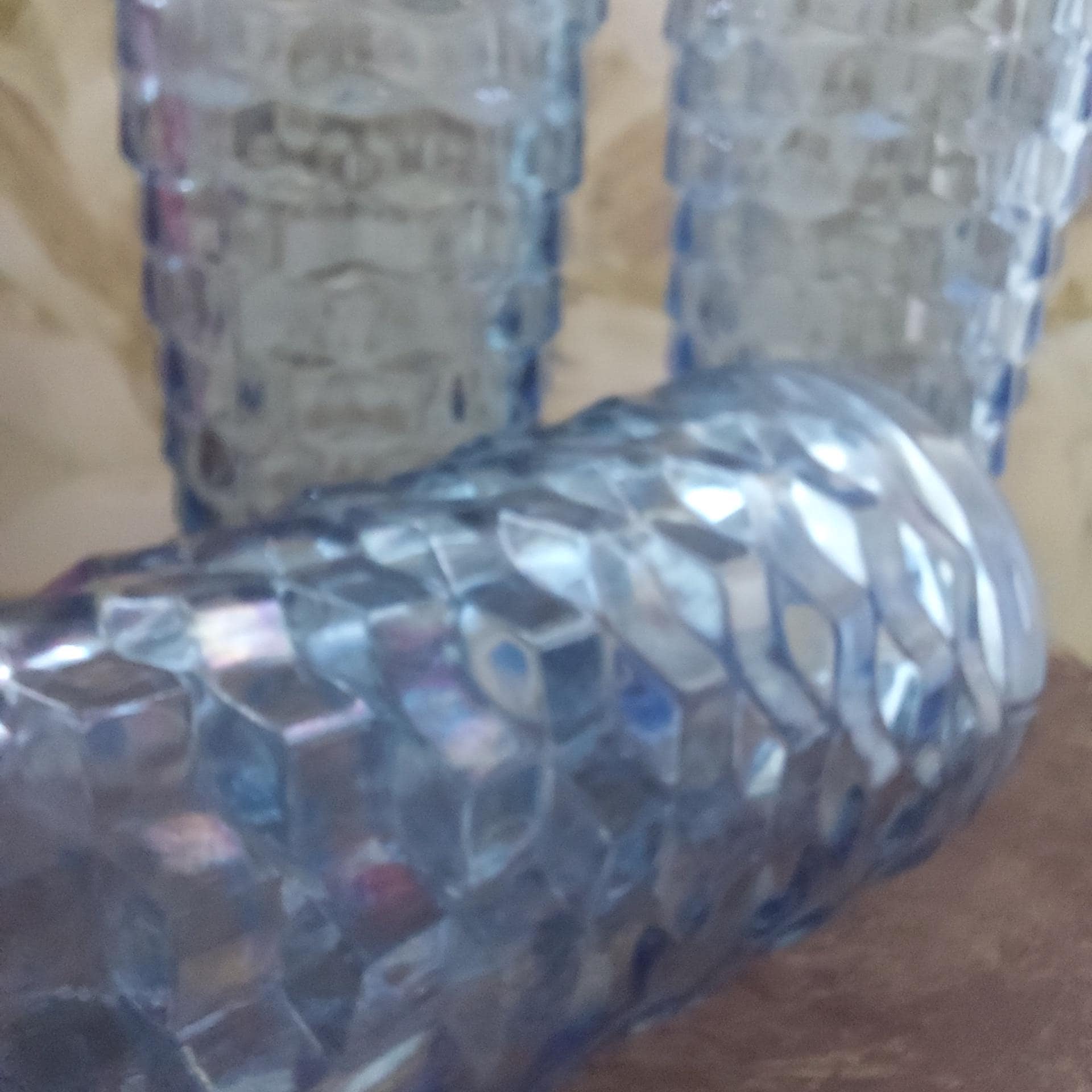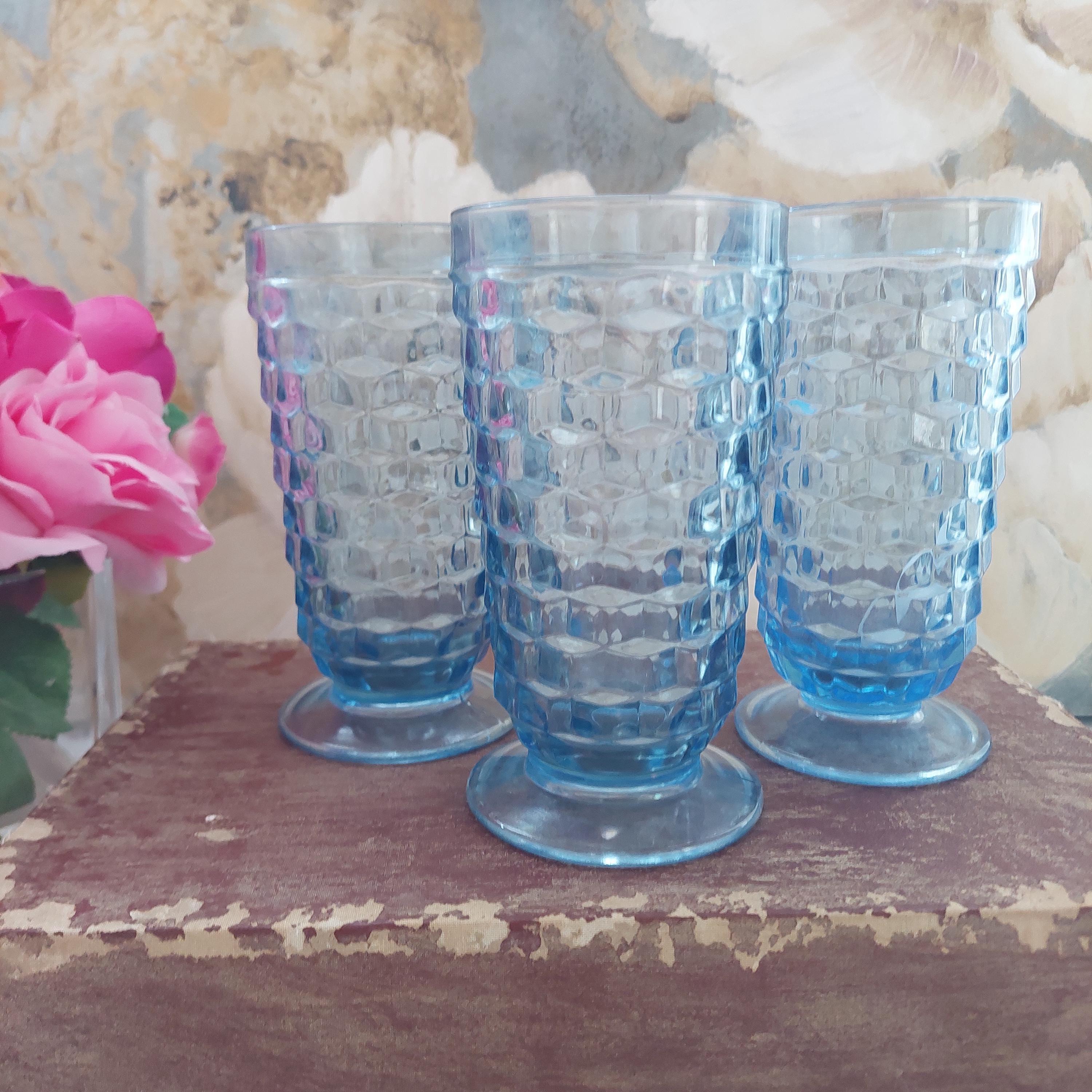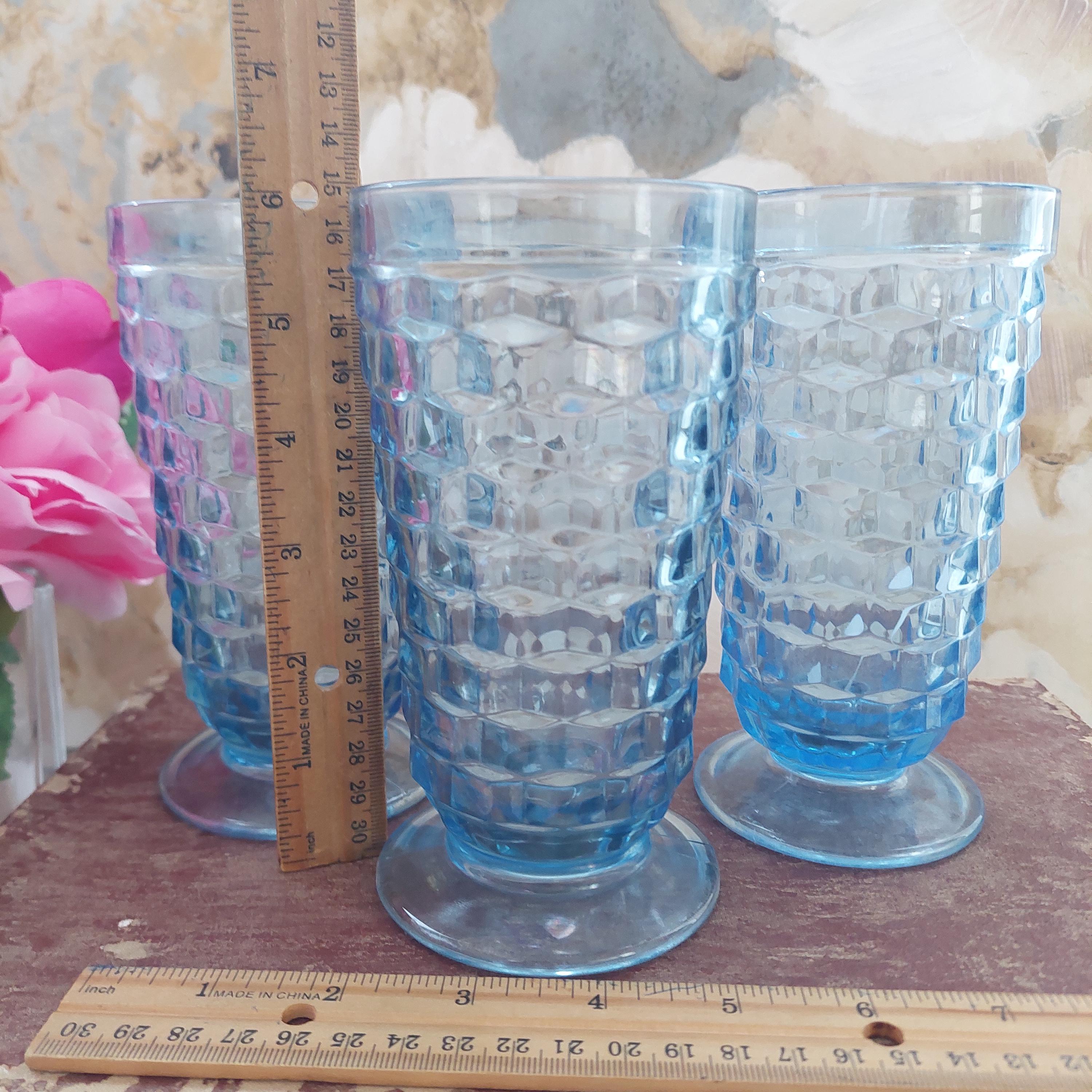 Indiana Glass Colony Whitehall light blue 12oz iced tea glasses set. Glass features a stacked cube pattern.