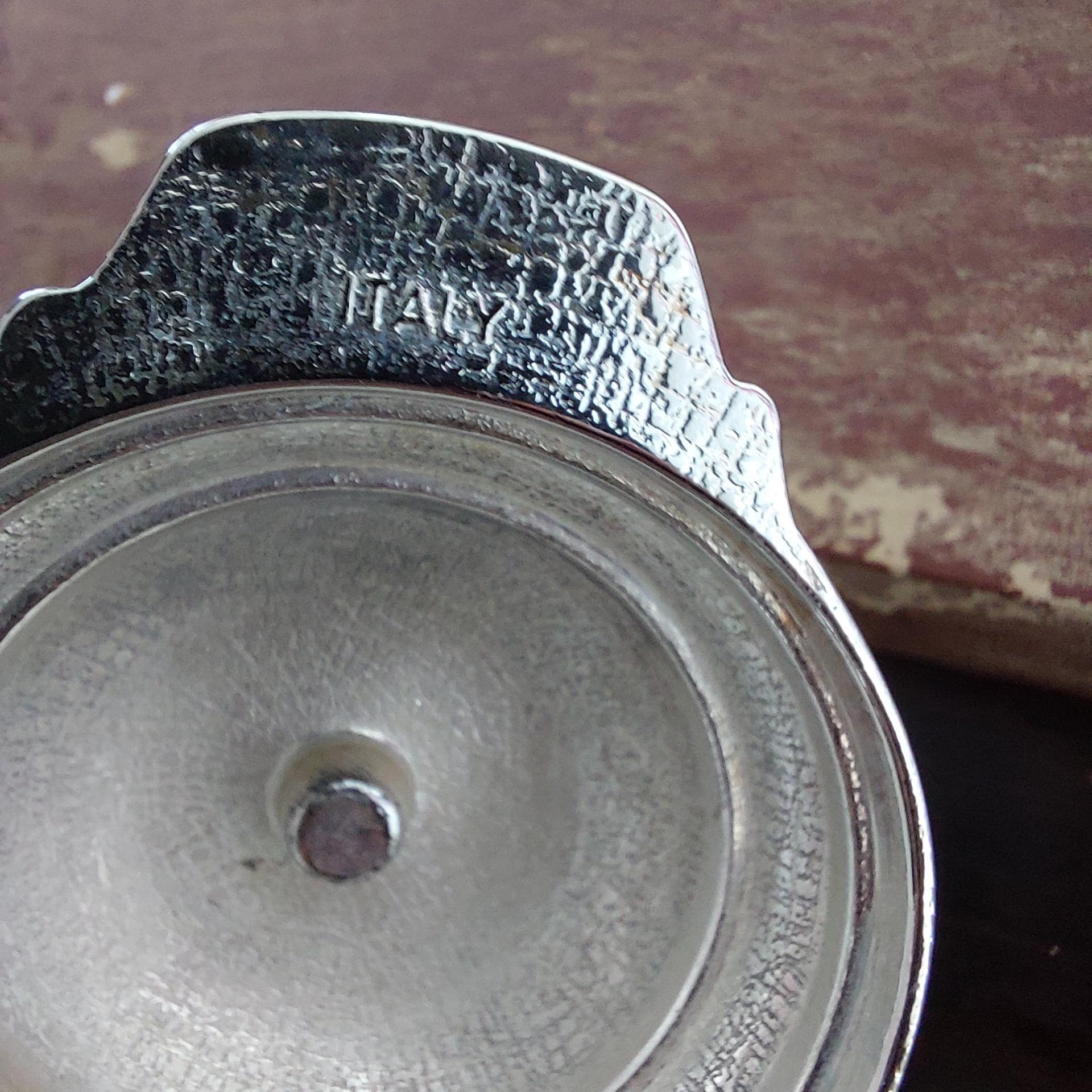 Vintage condition: NO chips. NO cracks. Tarnish & scratches to silver-plate, expected with vintage use