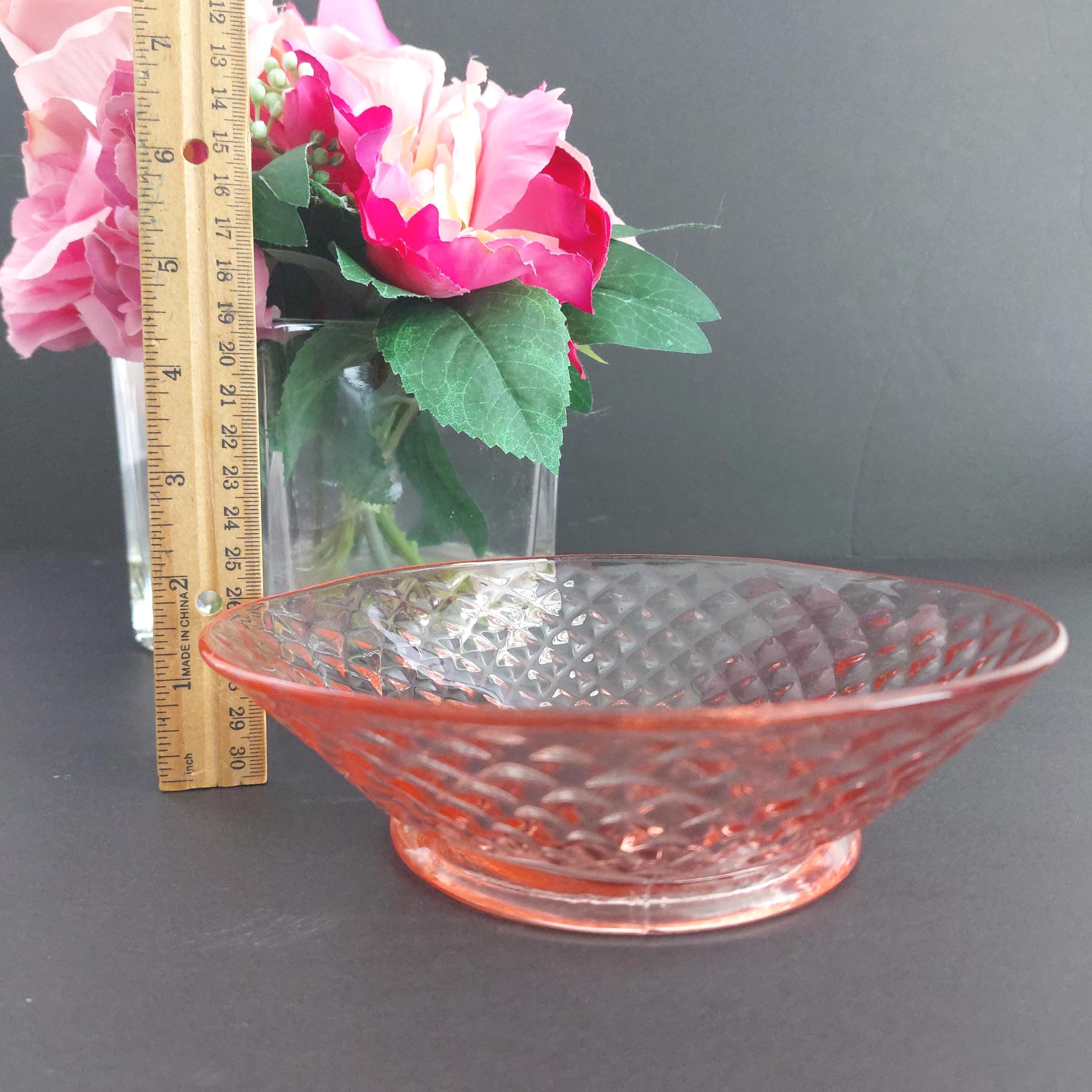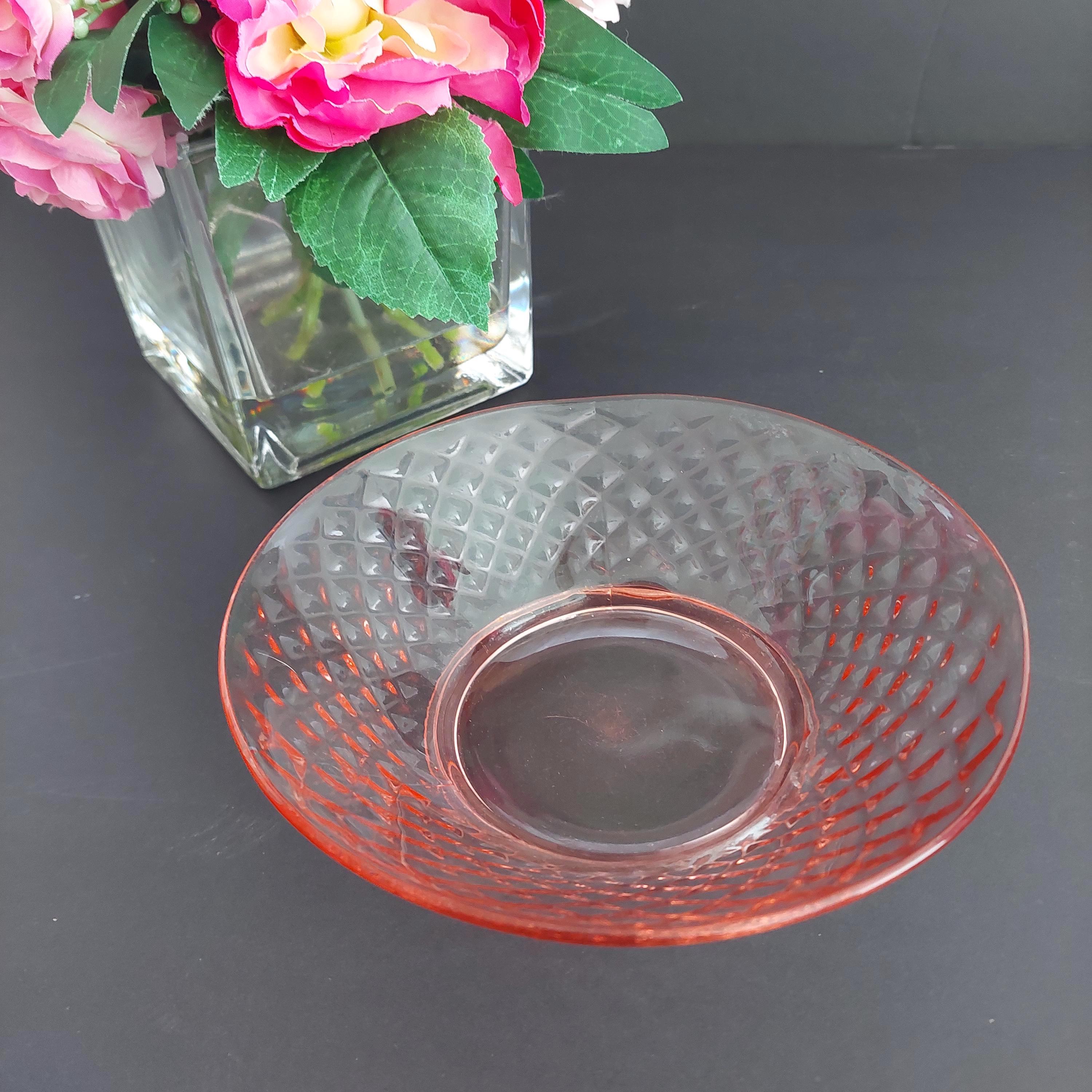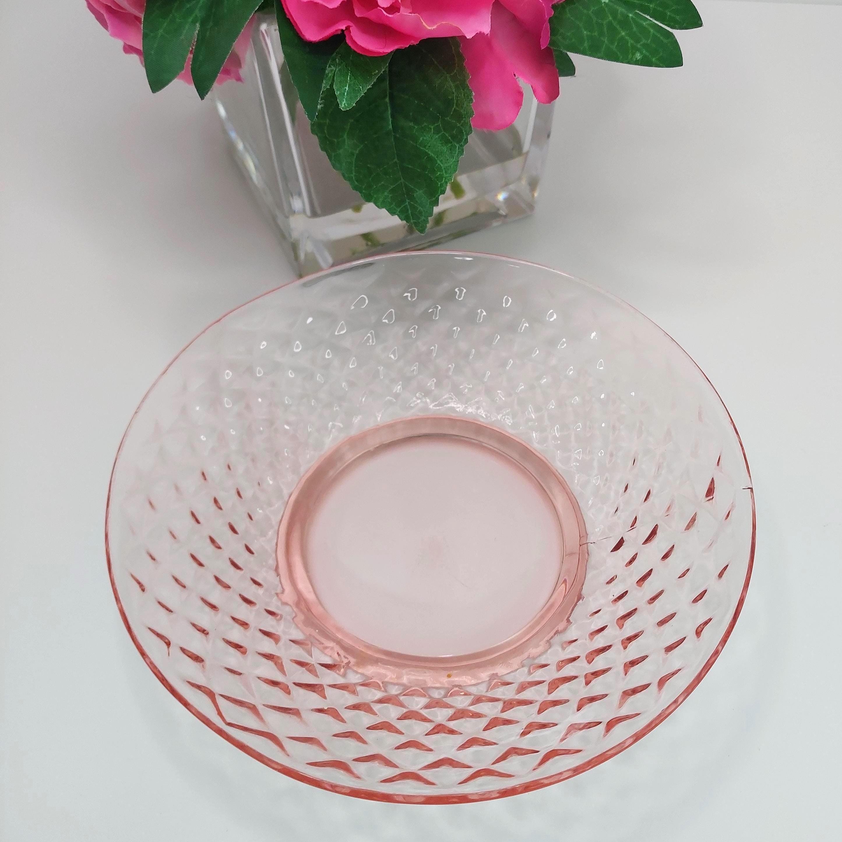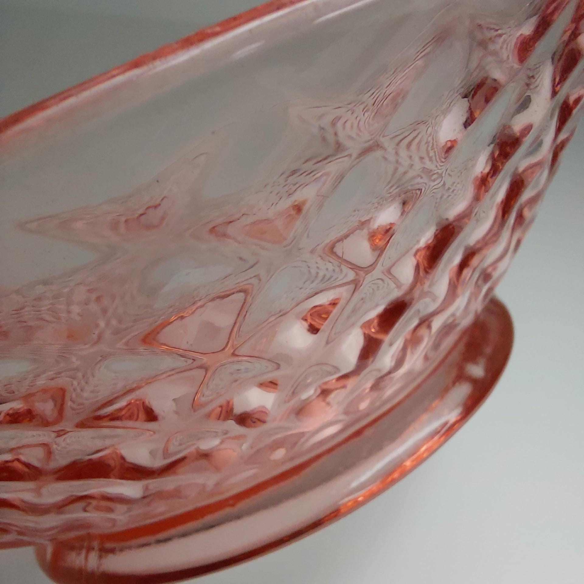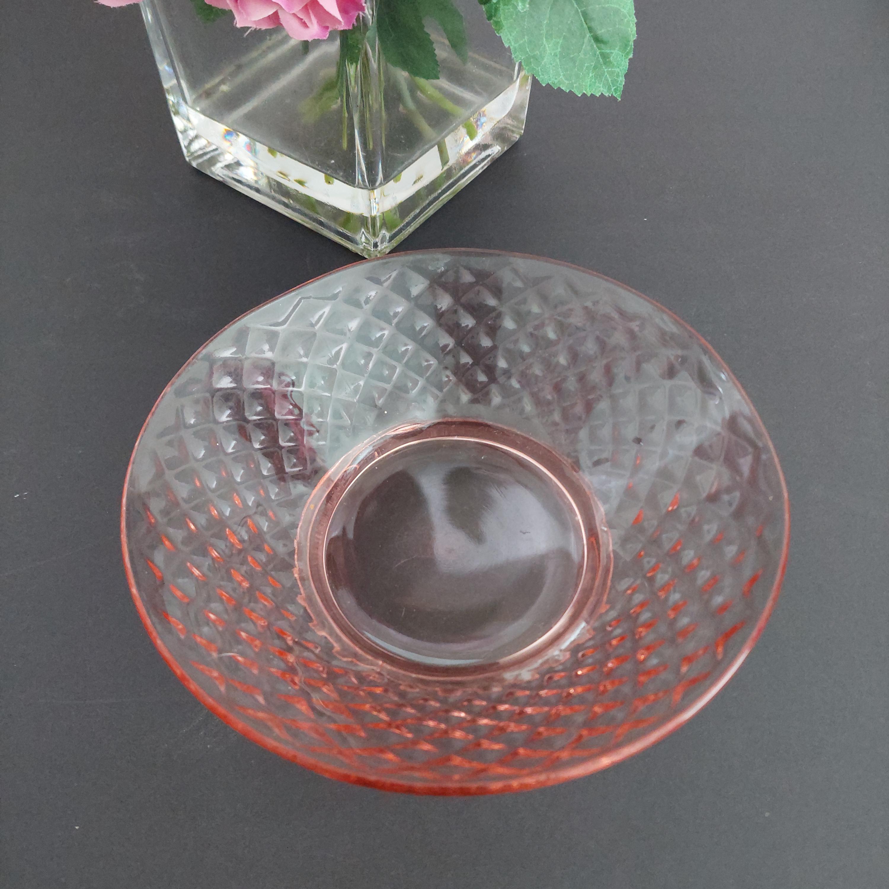 Vintage 1930s pink Depression Glass (Flat Diamond) Quilted bowl