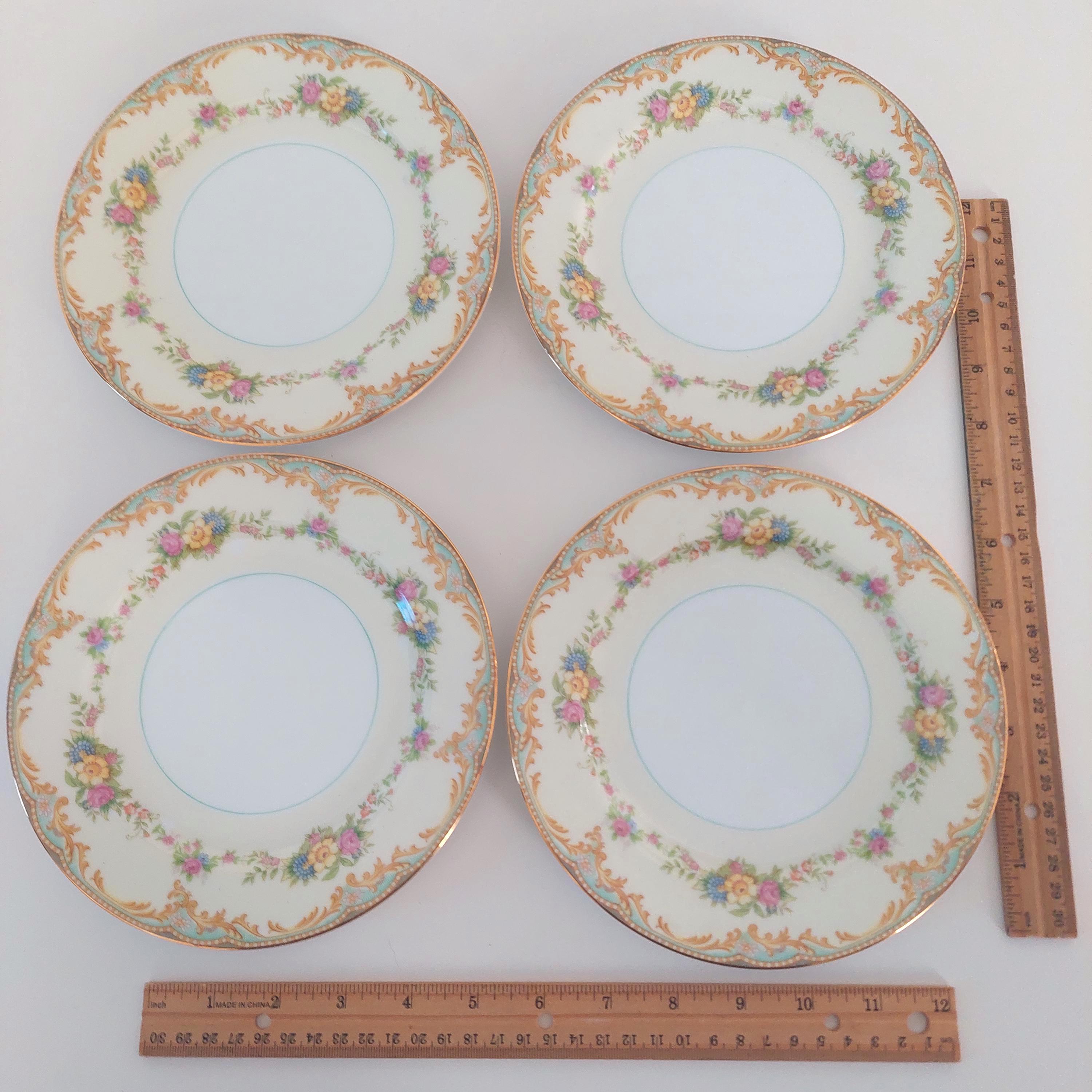 4-piece Noritake Milroy salad / dessert plate set. Made in Japan, circa 1930s