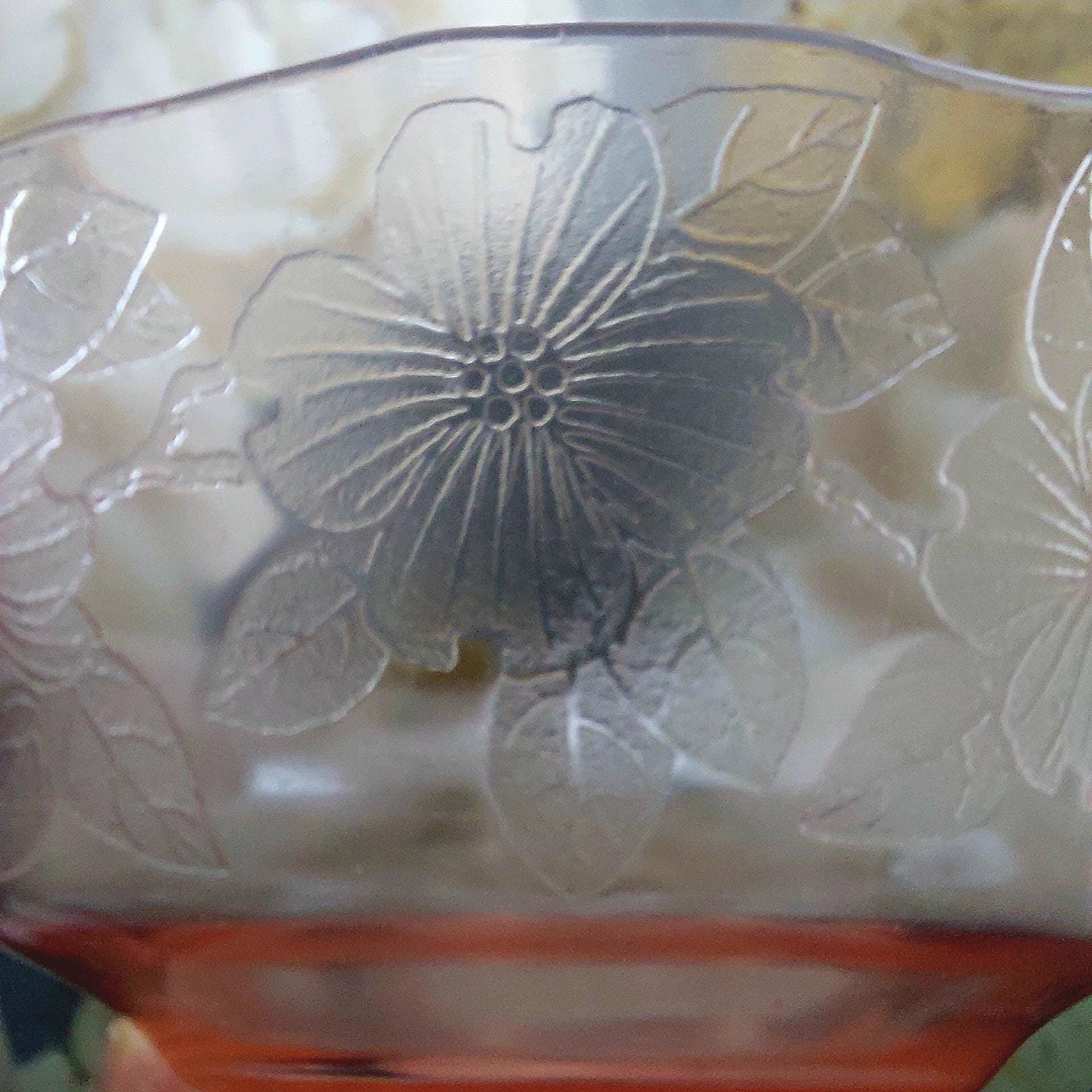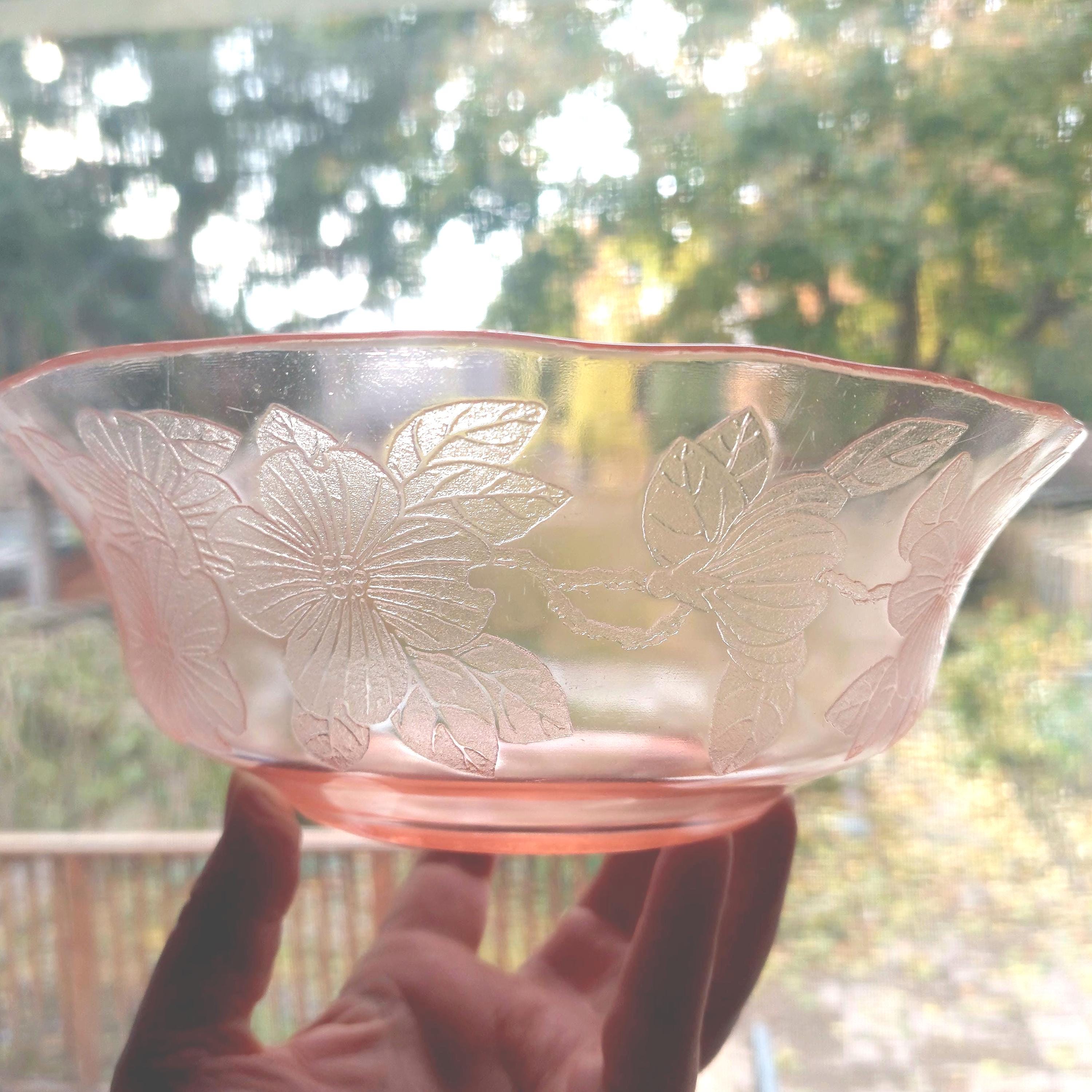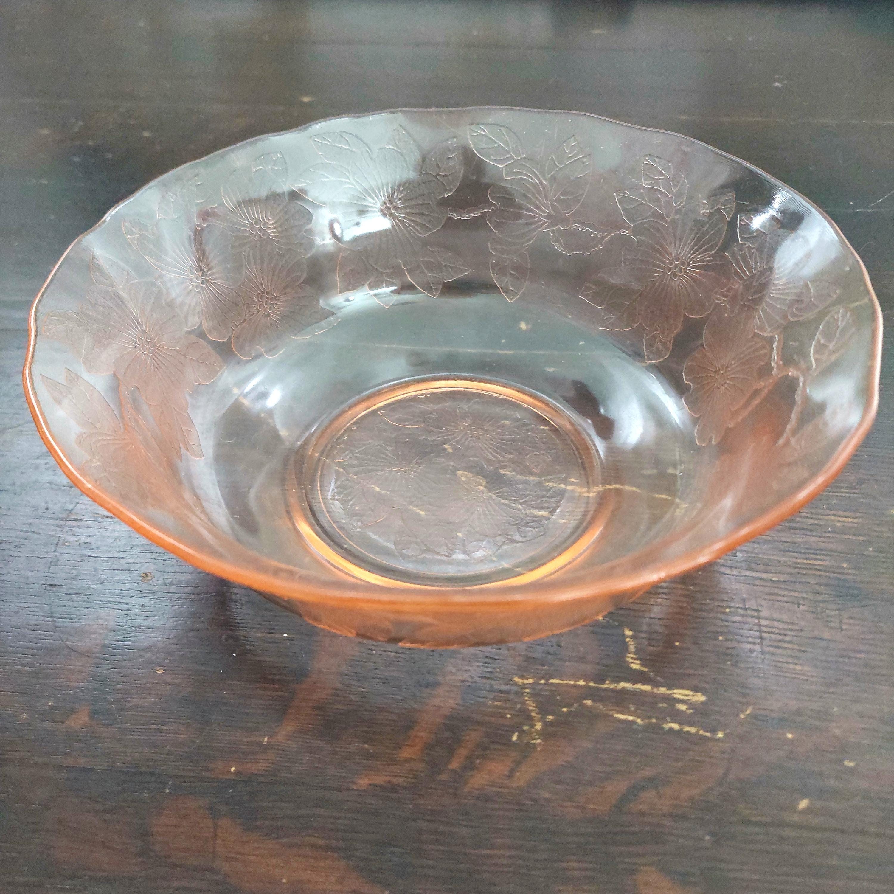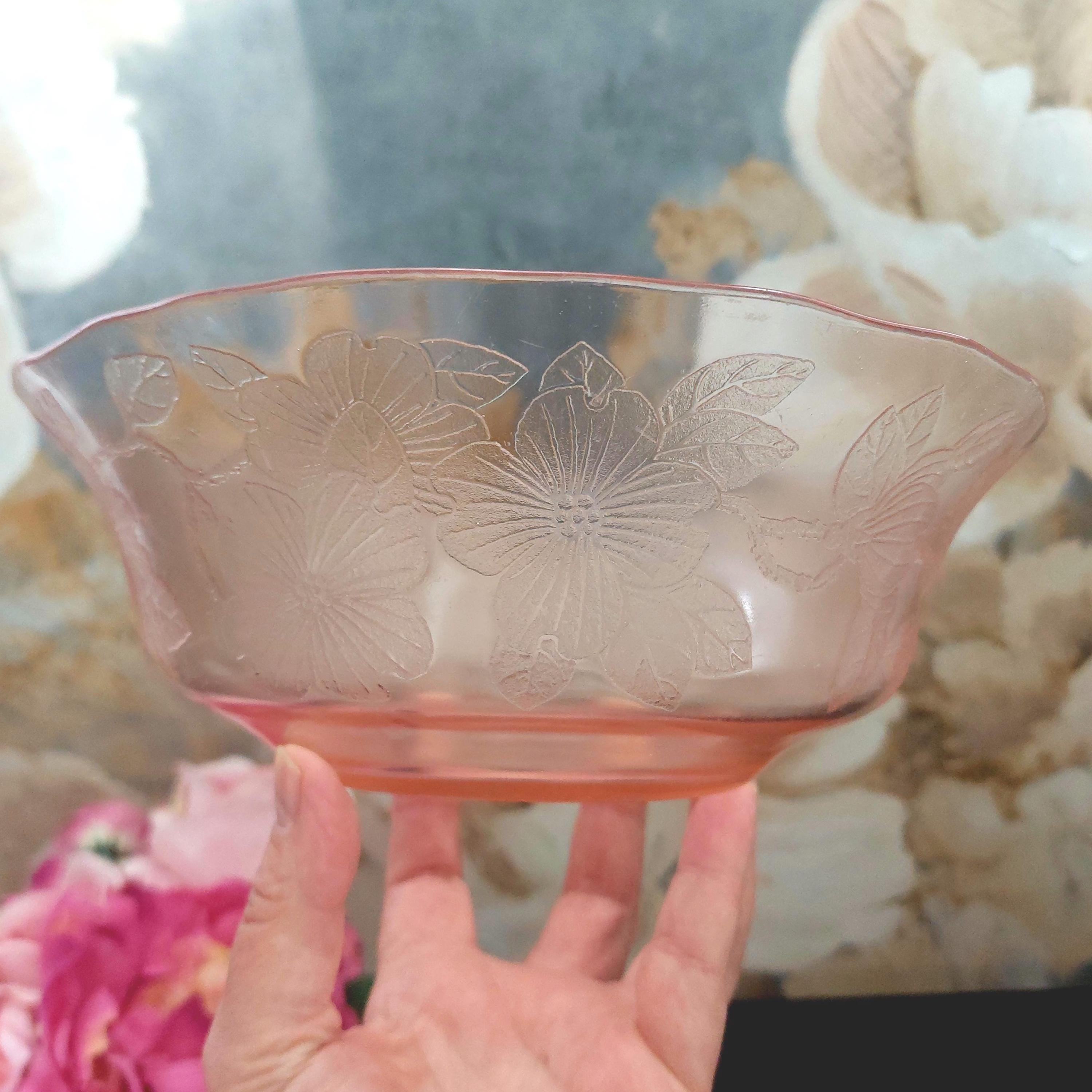 MacBeth-Evans pink Depression glass serving bowl in Dogwood pattern. Also called Apple Blossom or Wild Rose.