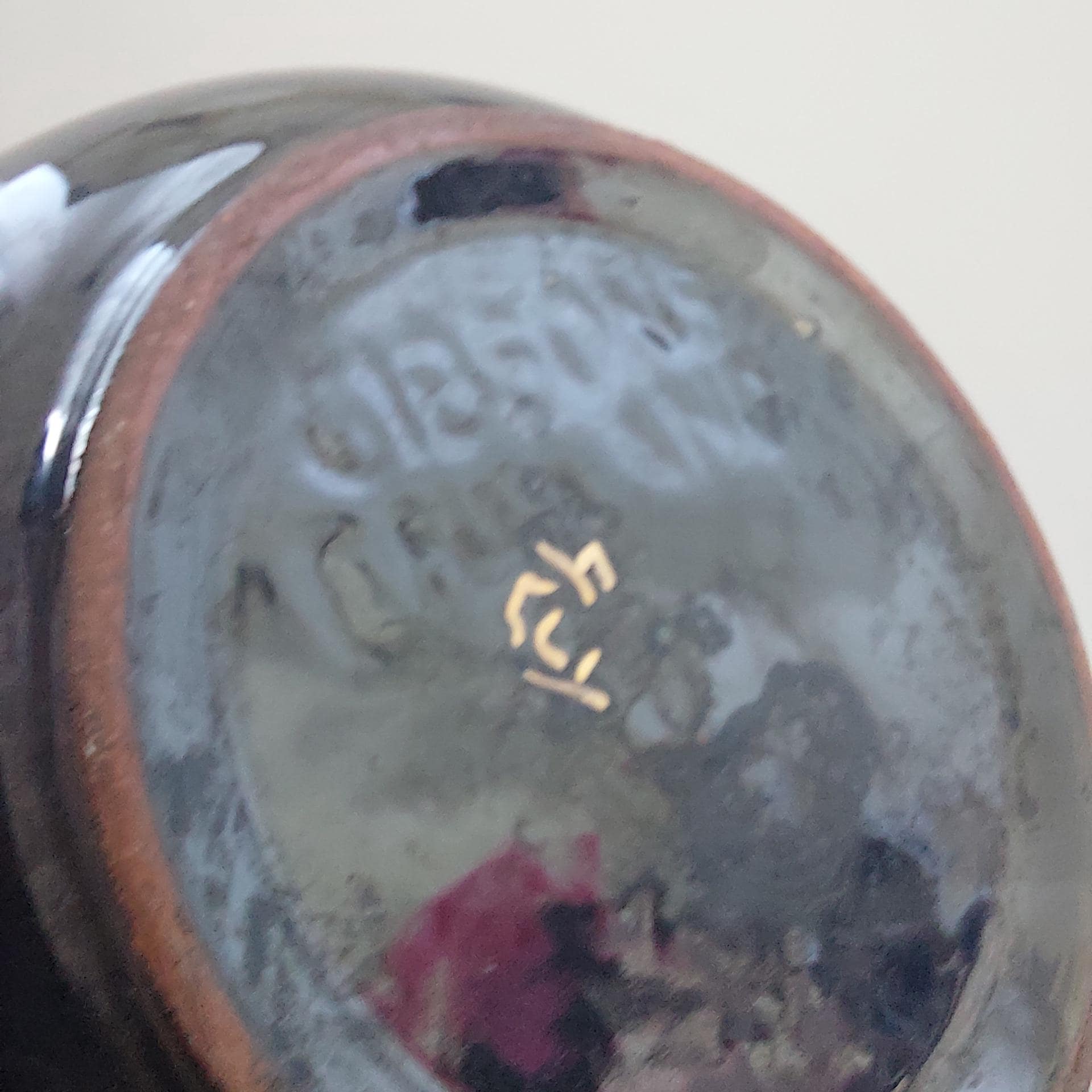 Brown Betty teapots are made of red clay, which is known to keep liquid warm for longer. Brown Betty teapots were very popular during the Victorian Era, especially in England, where they were manufactured. They regained popularity during the 1950s and 60s. This Gibsons Brown Betty is circa 1950-1960s and made in England.