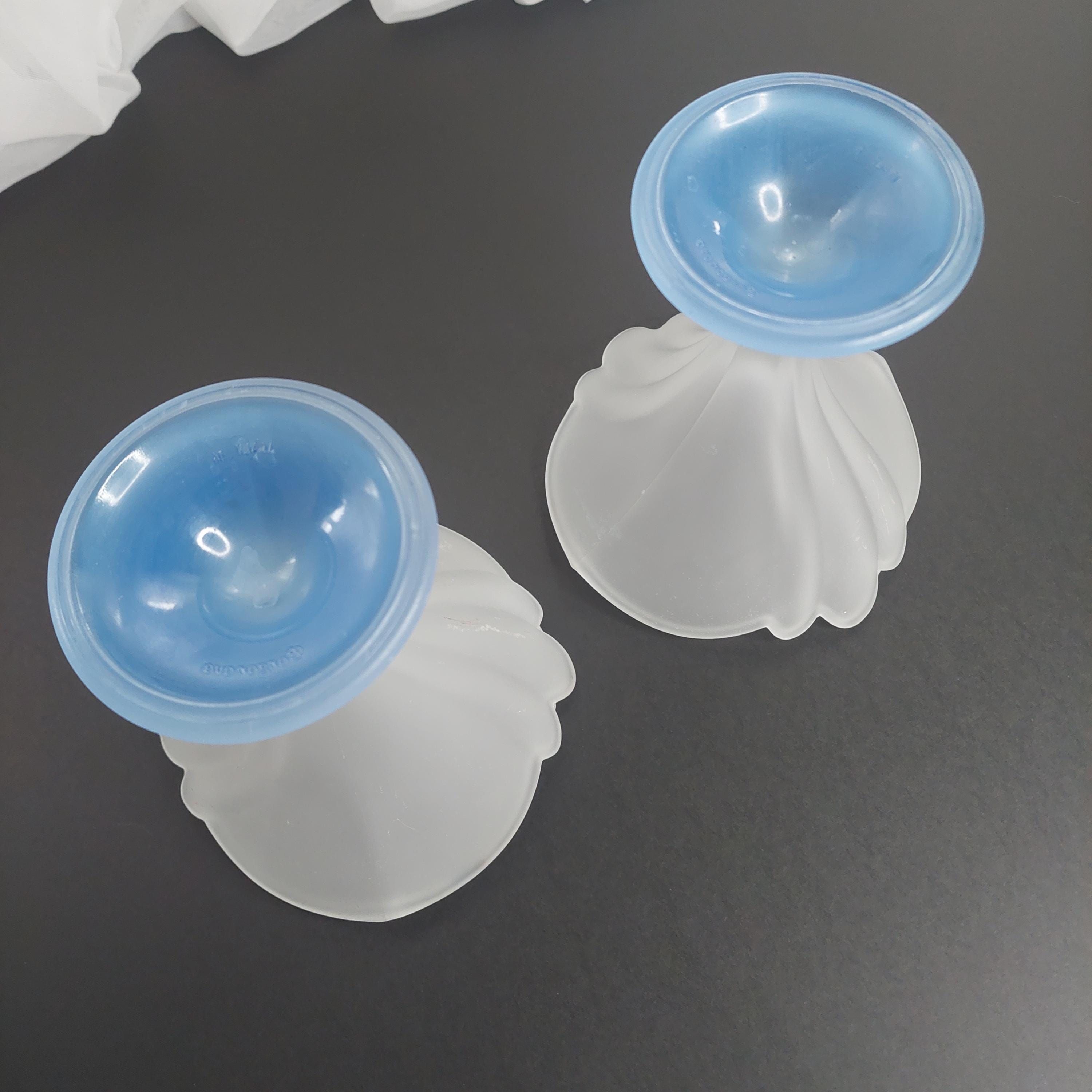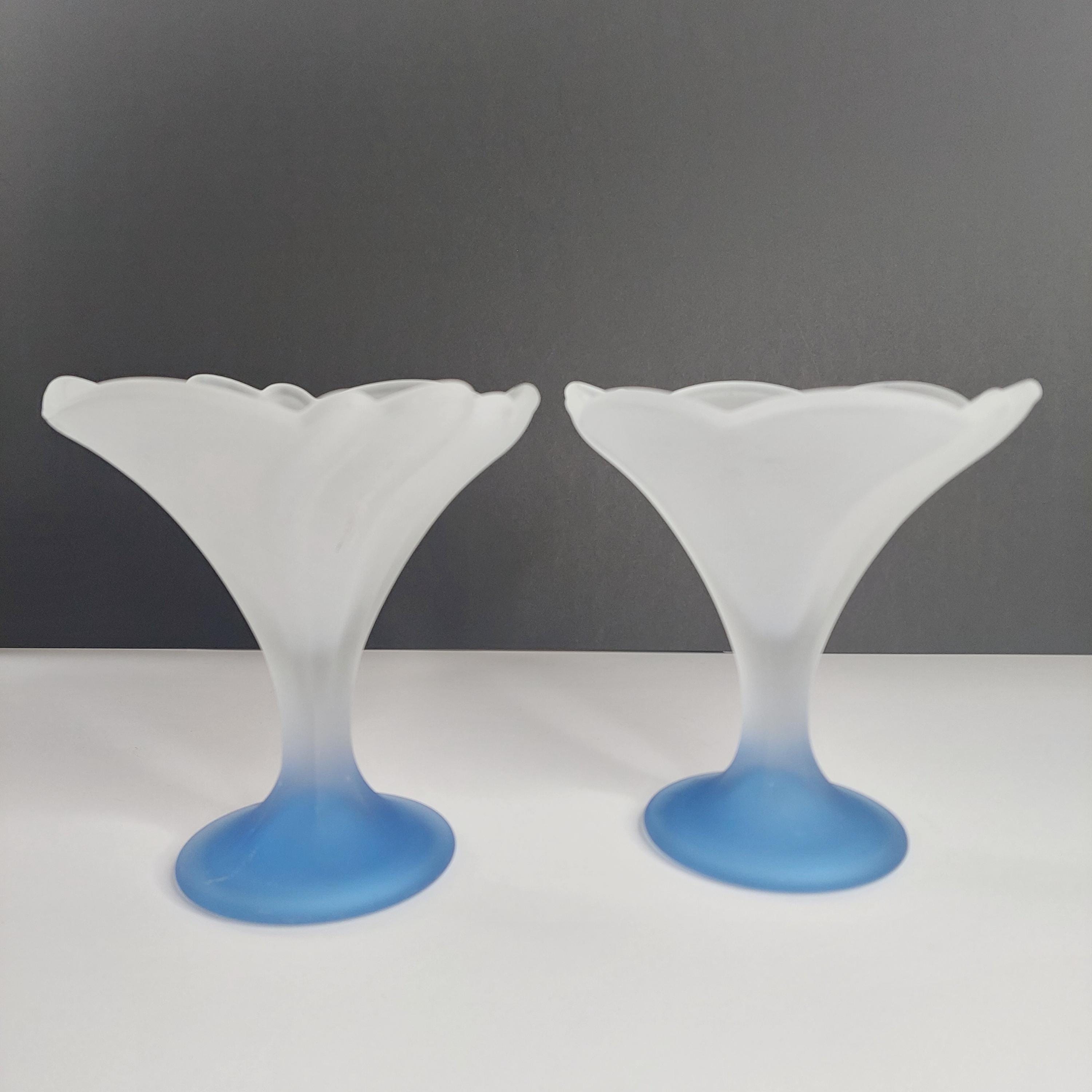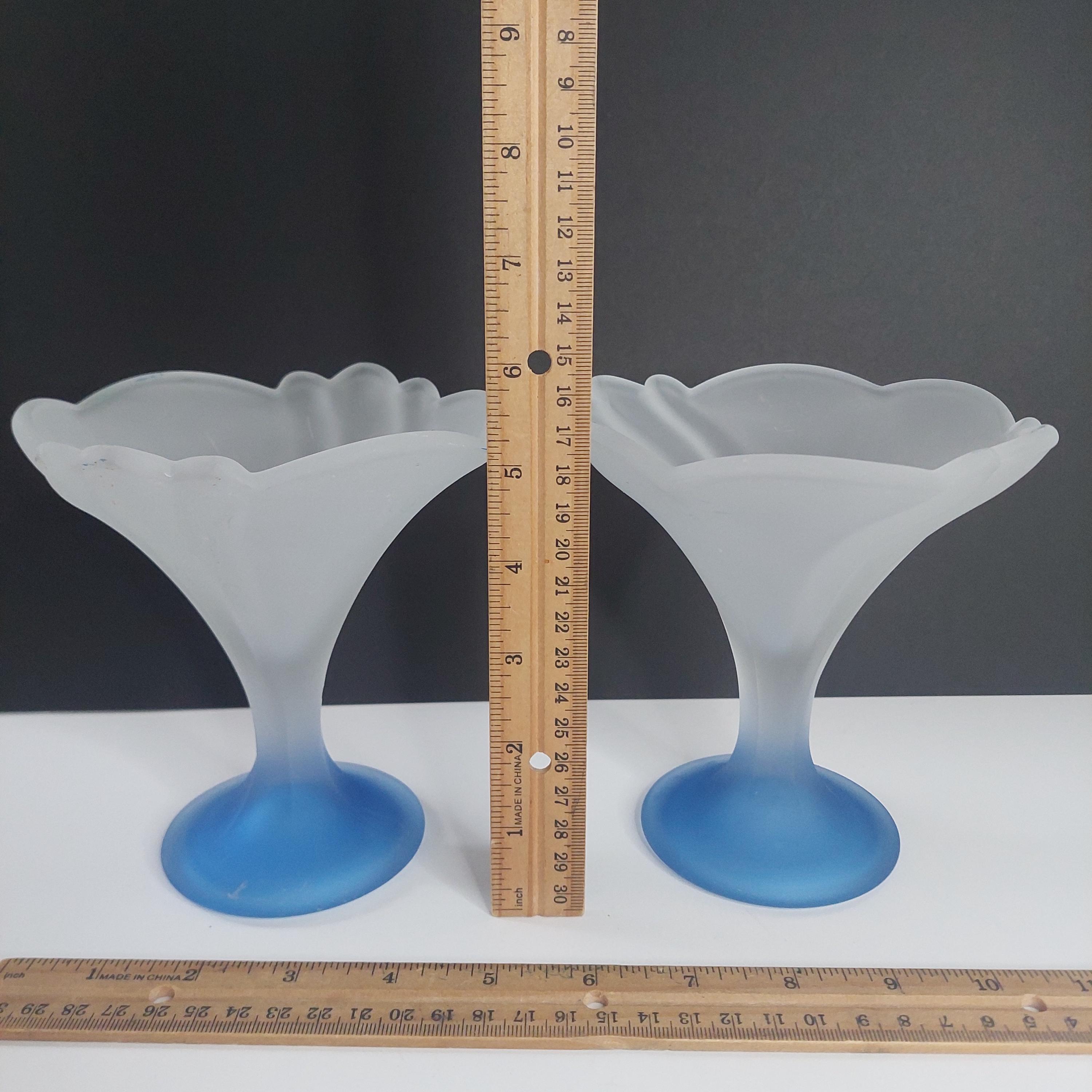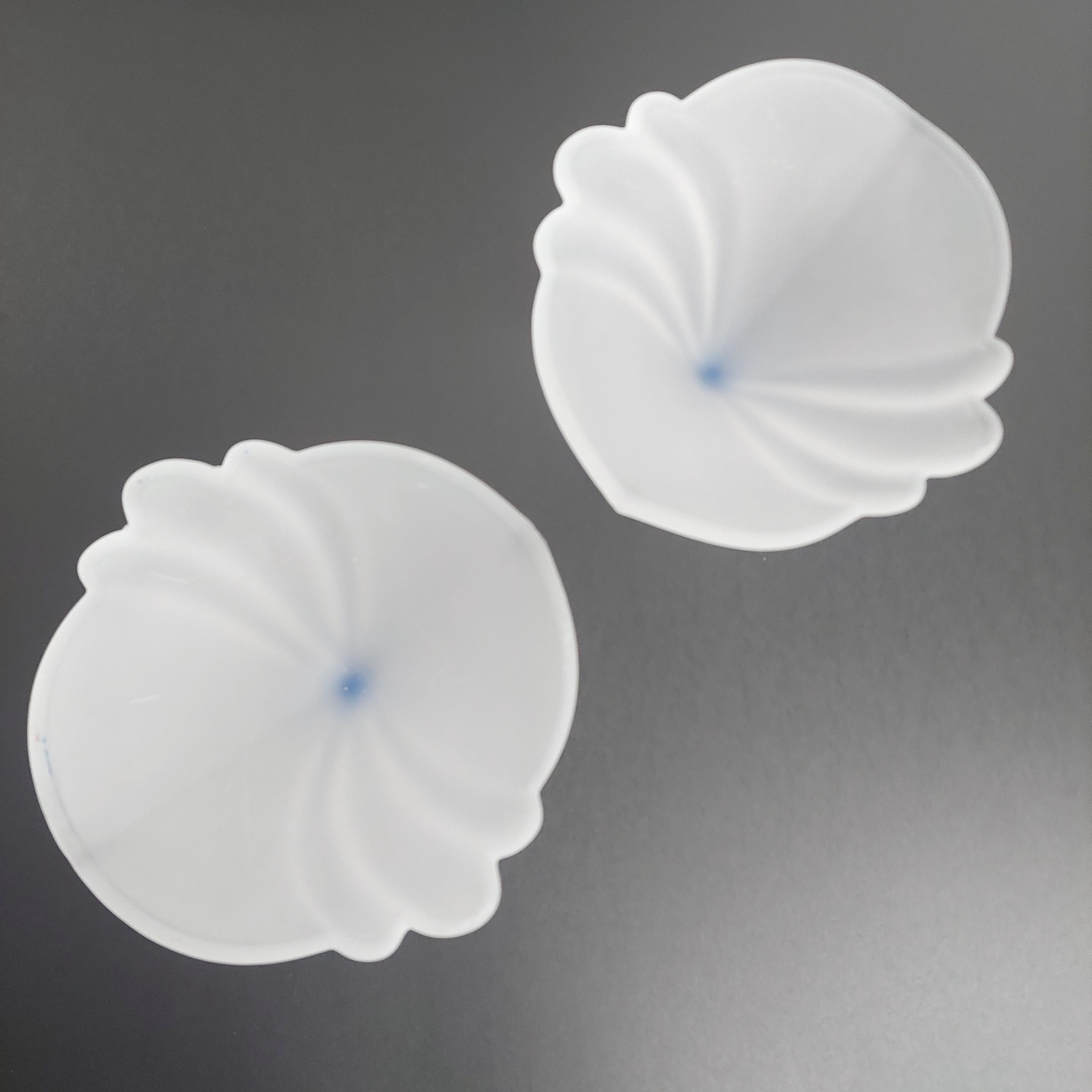 Vintage Italian flower-shaped sundae glasses featuring white frosted / satin cup and translucent blue foot.