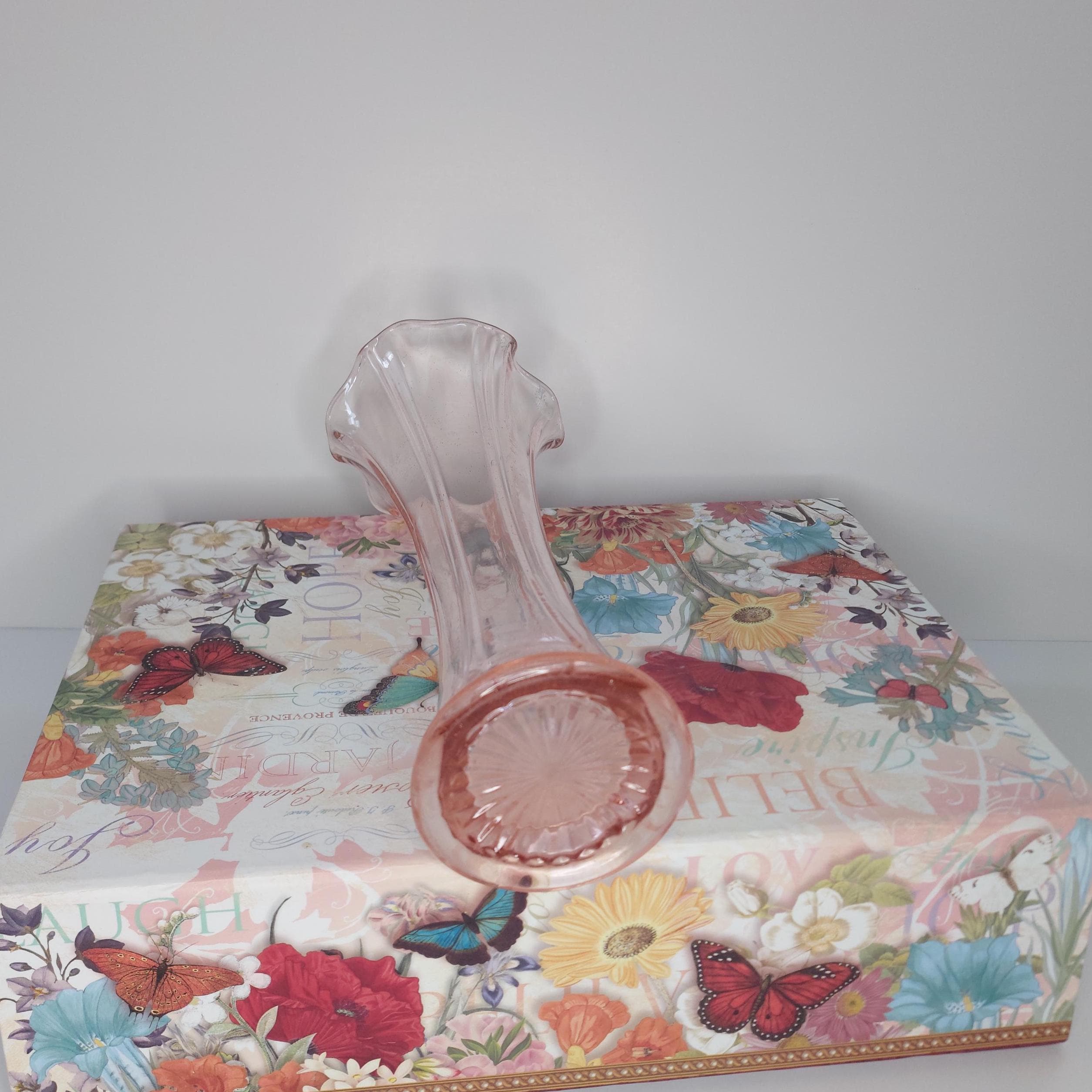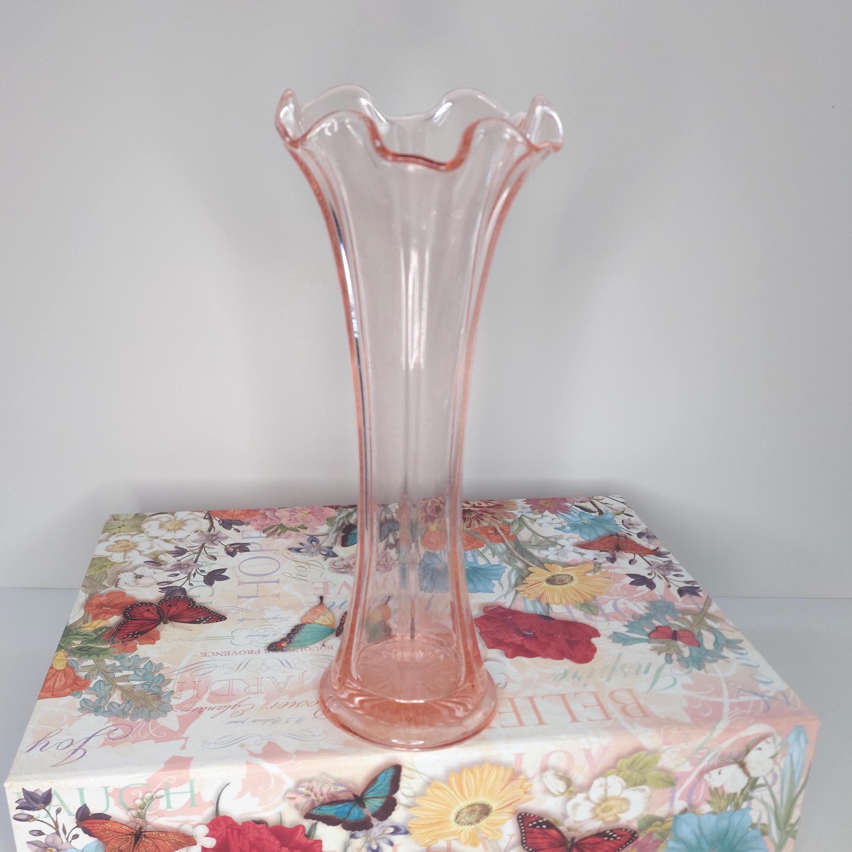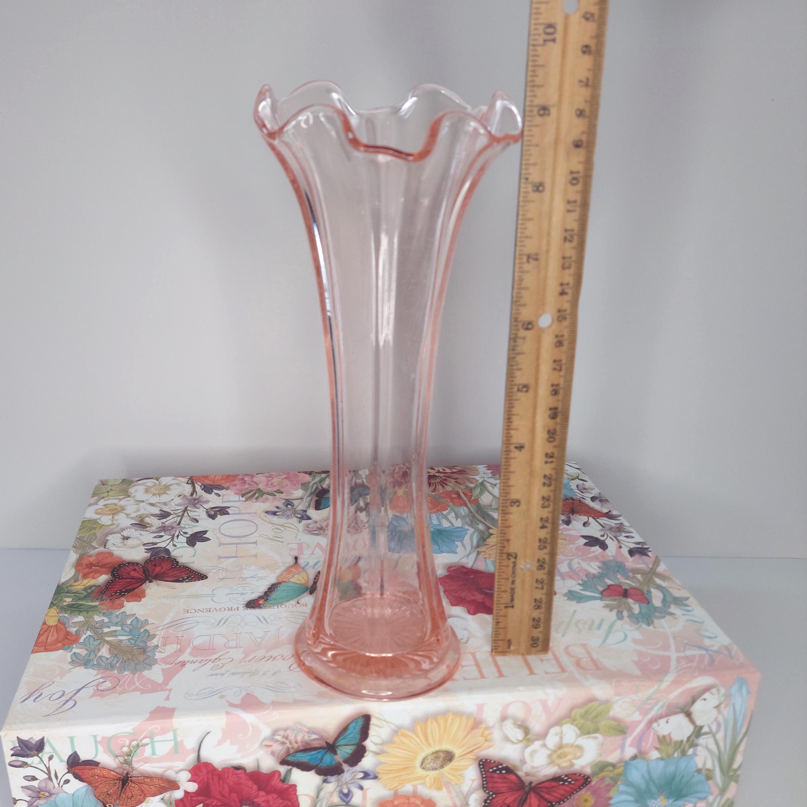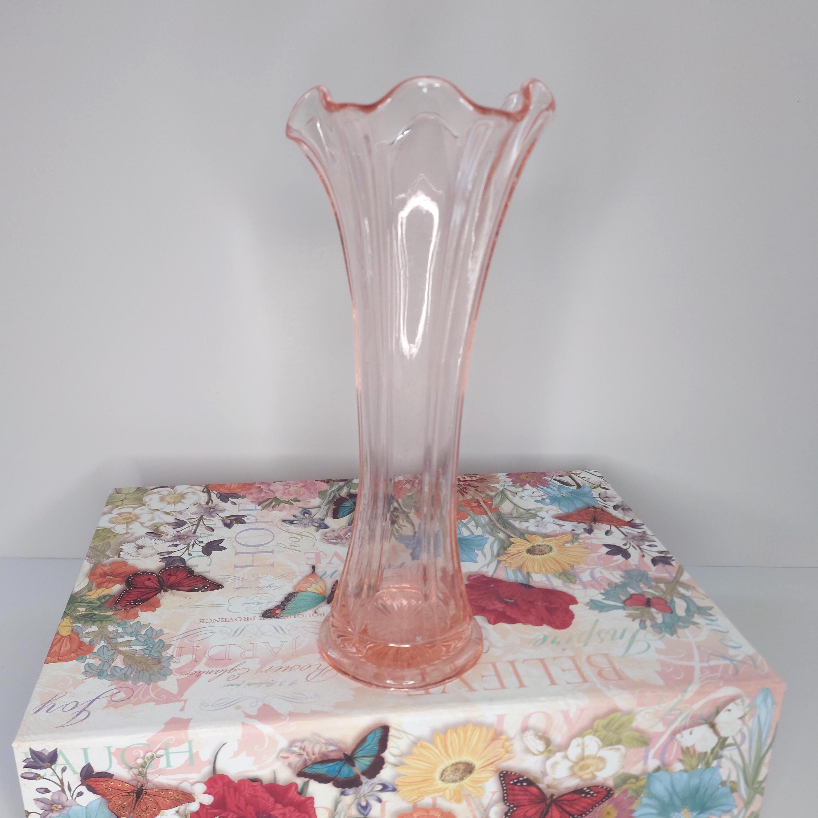 Vintage pink vase with a lovely ruffled edge. May be Fenton. Lots of tiny bubbles