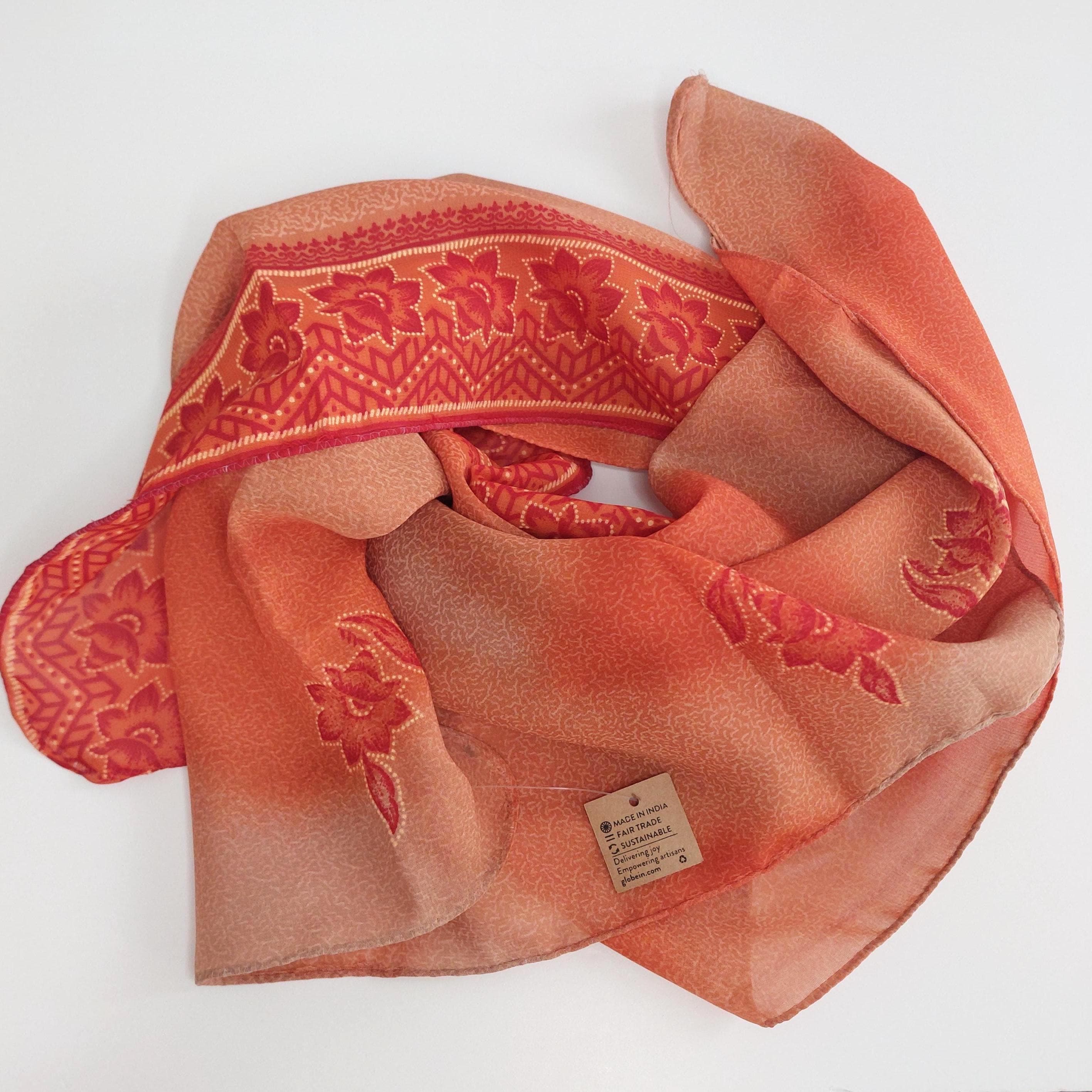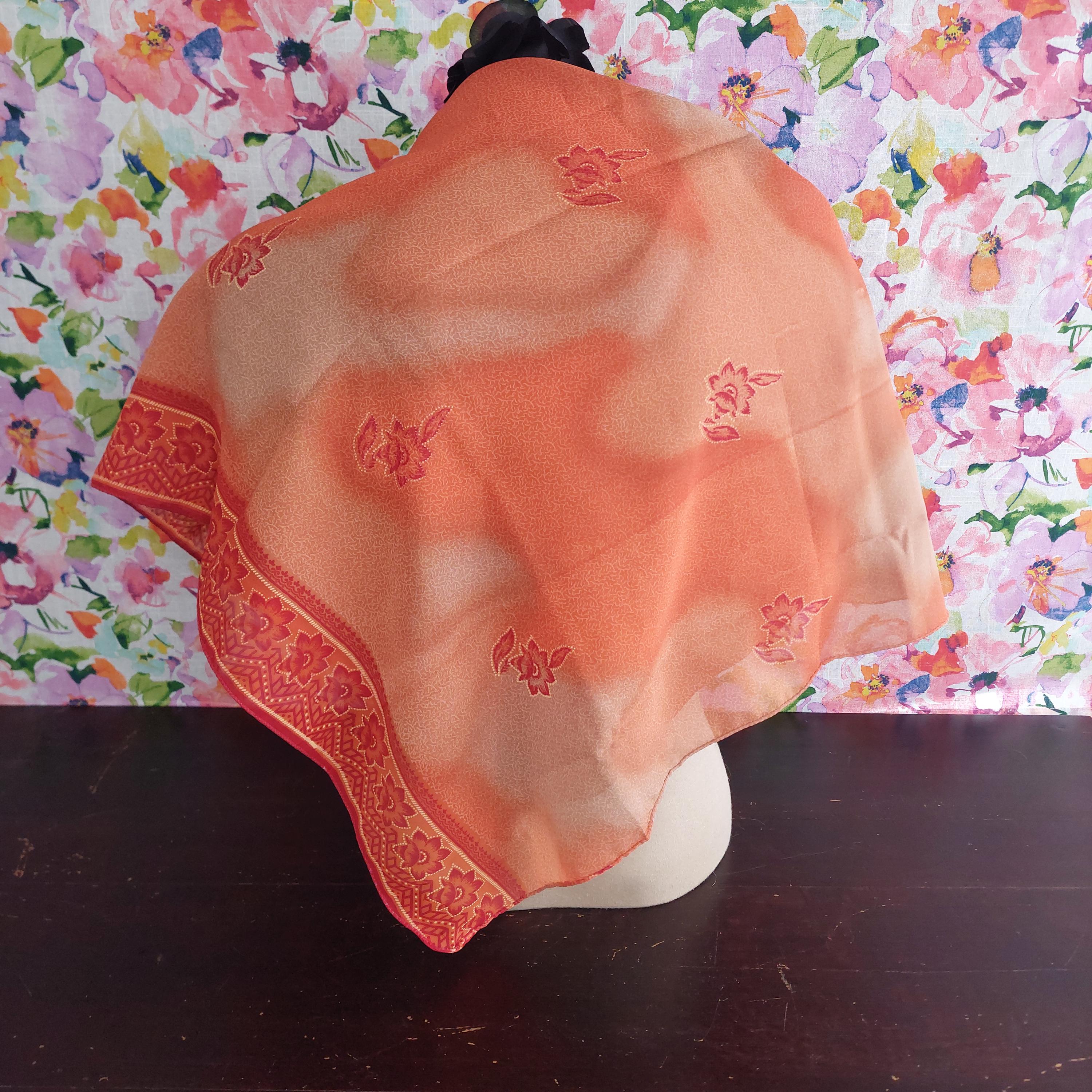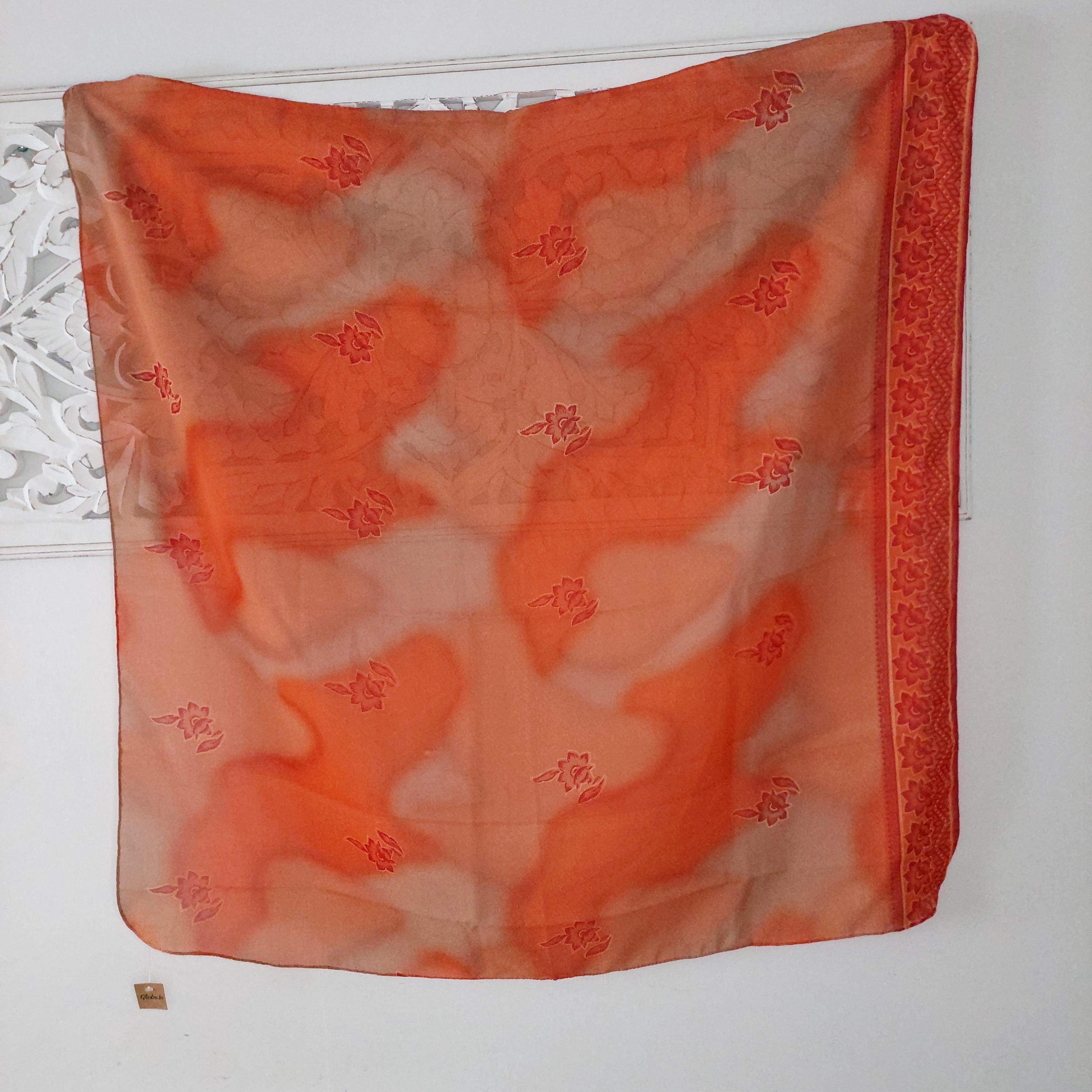 With tag orange floral square scarf. Made in India