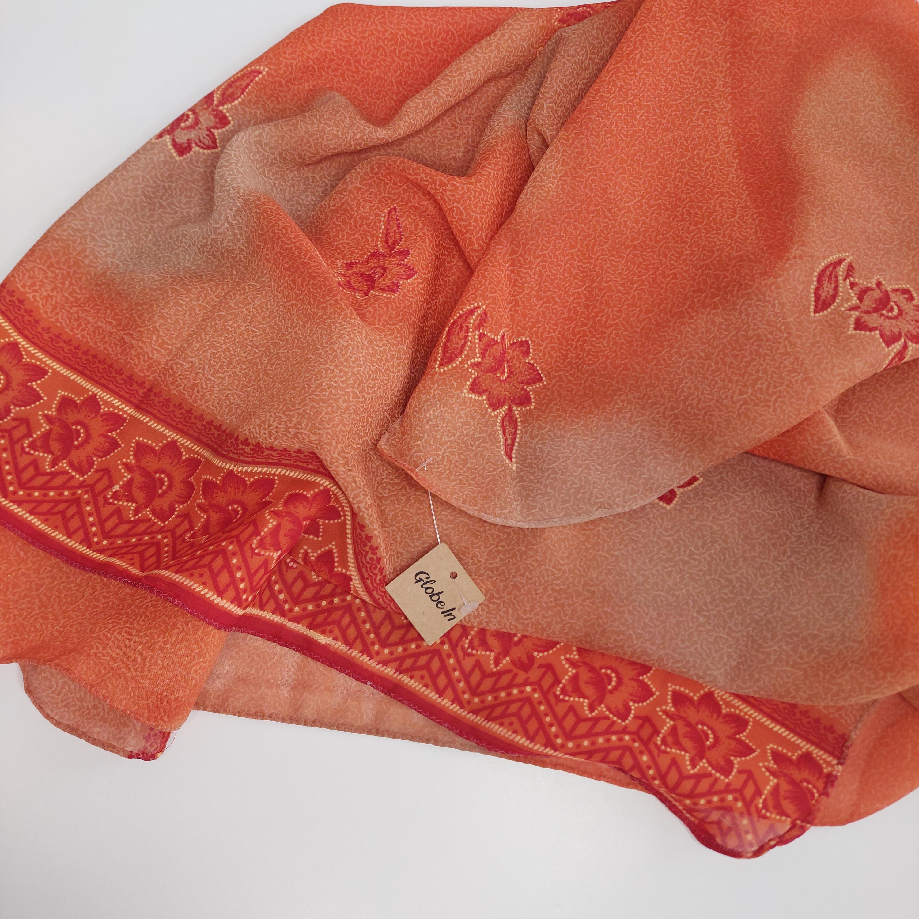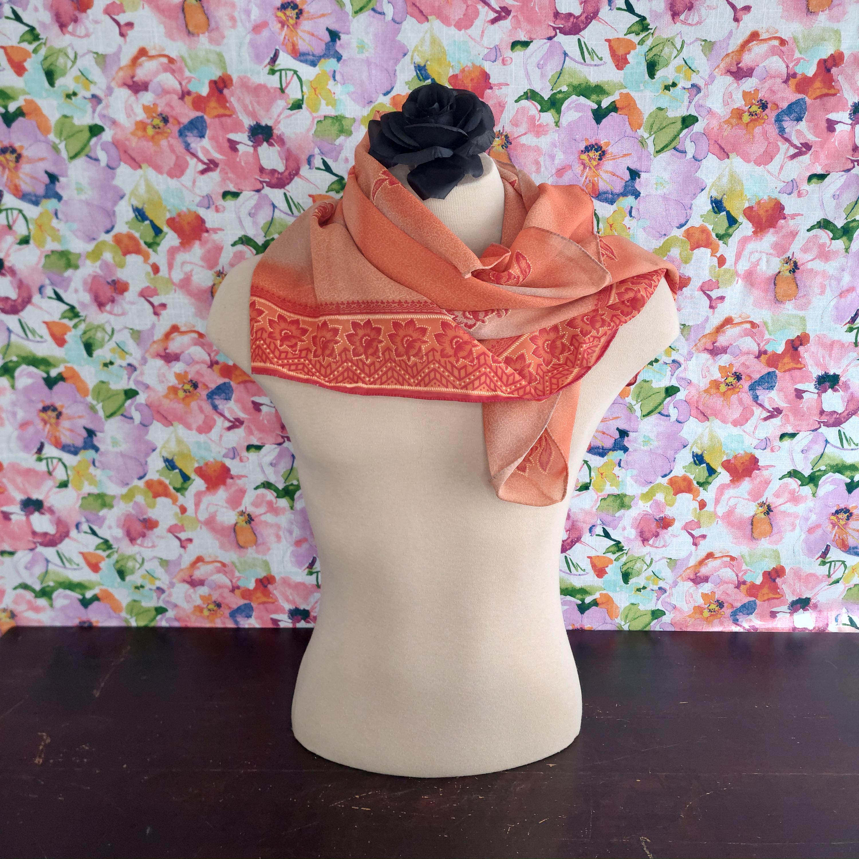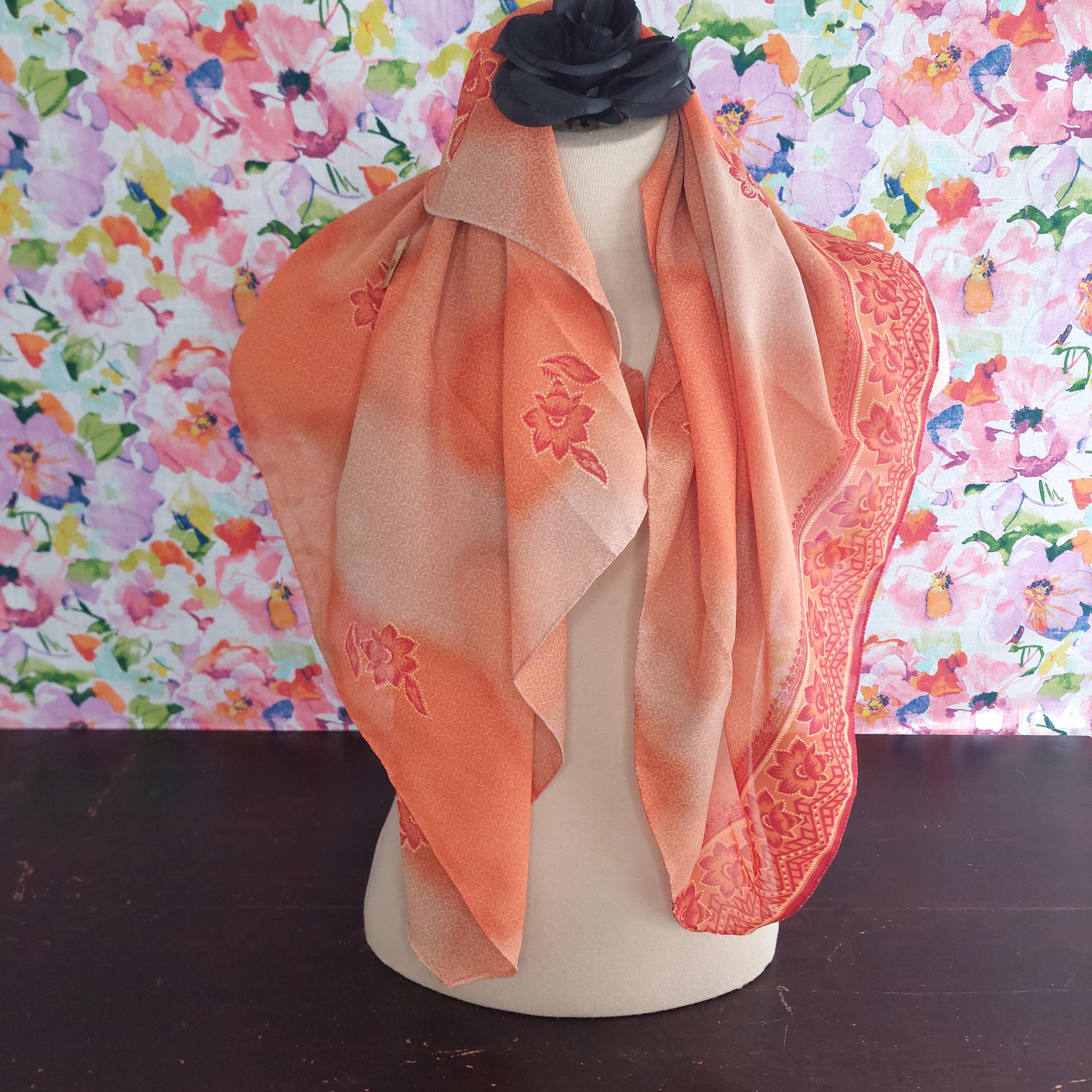 With tag orange floral square scarf. Made in India