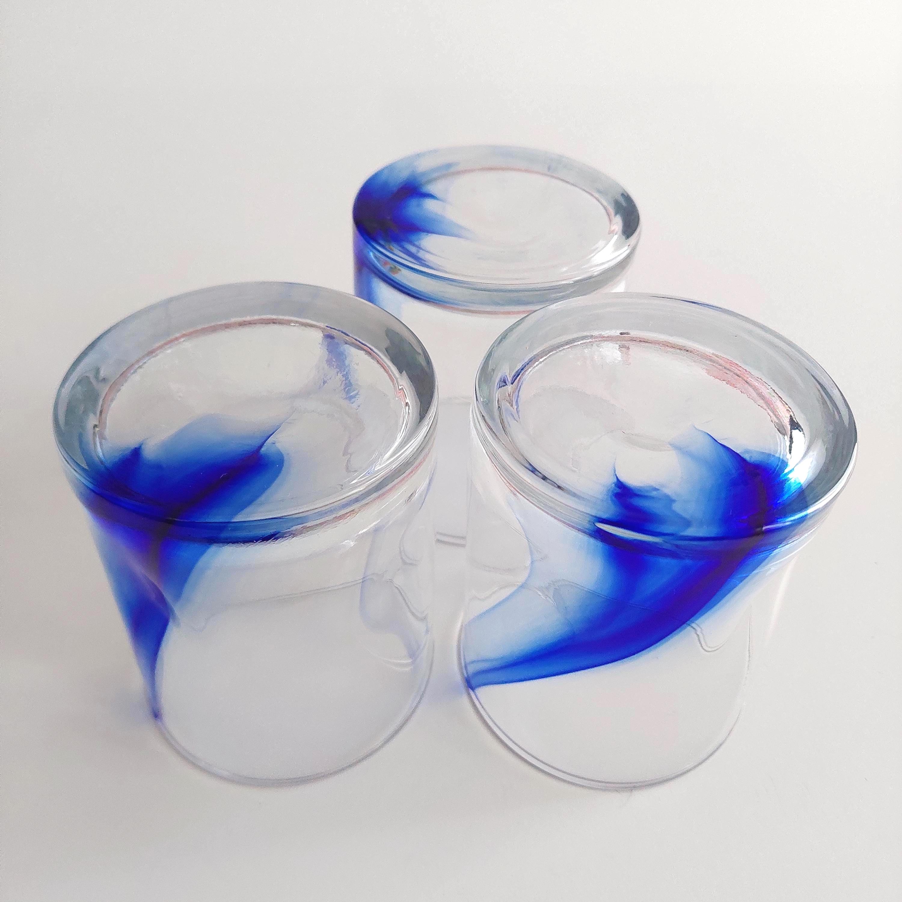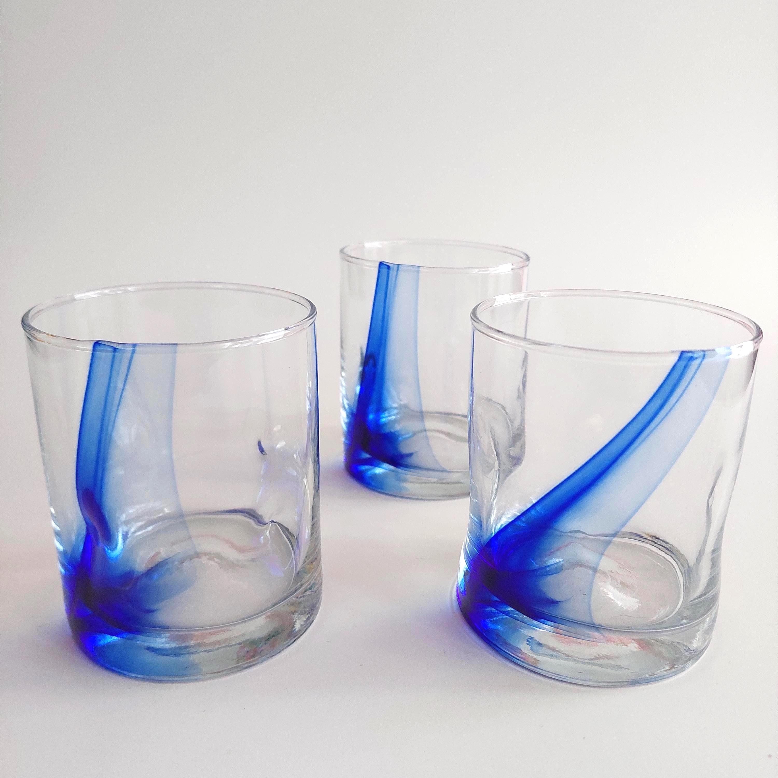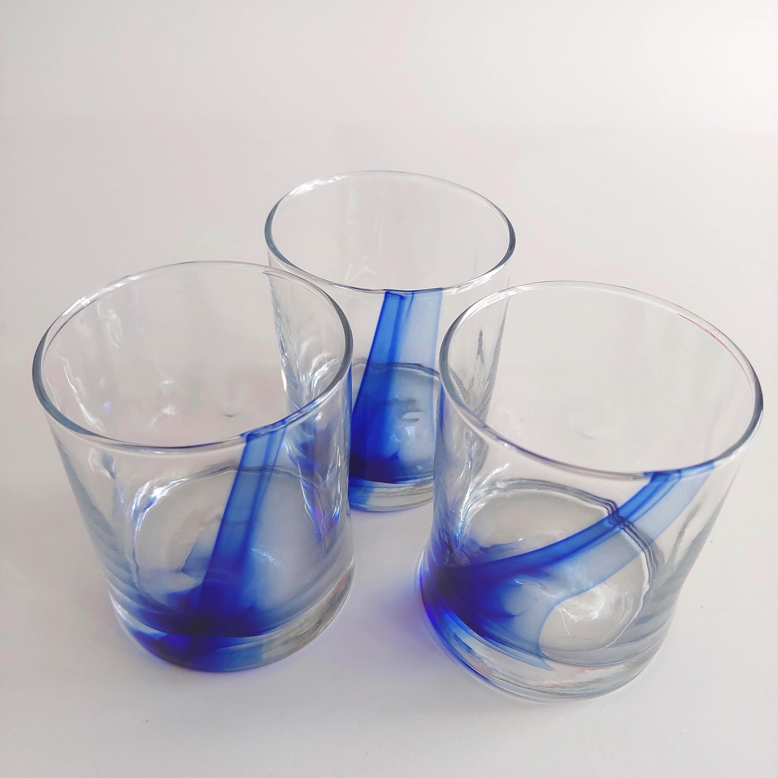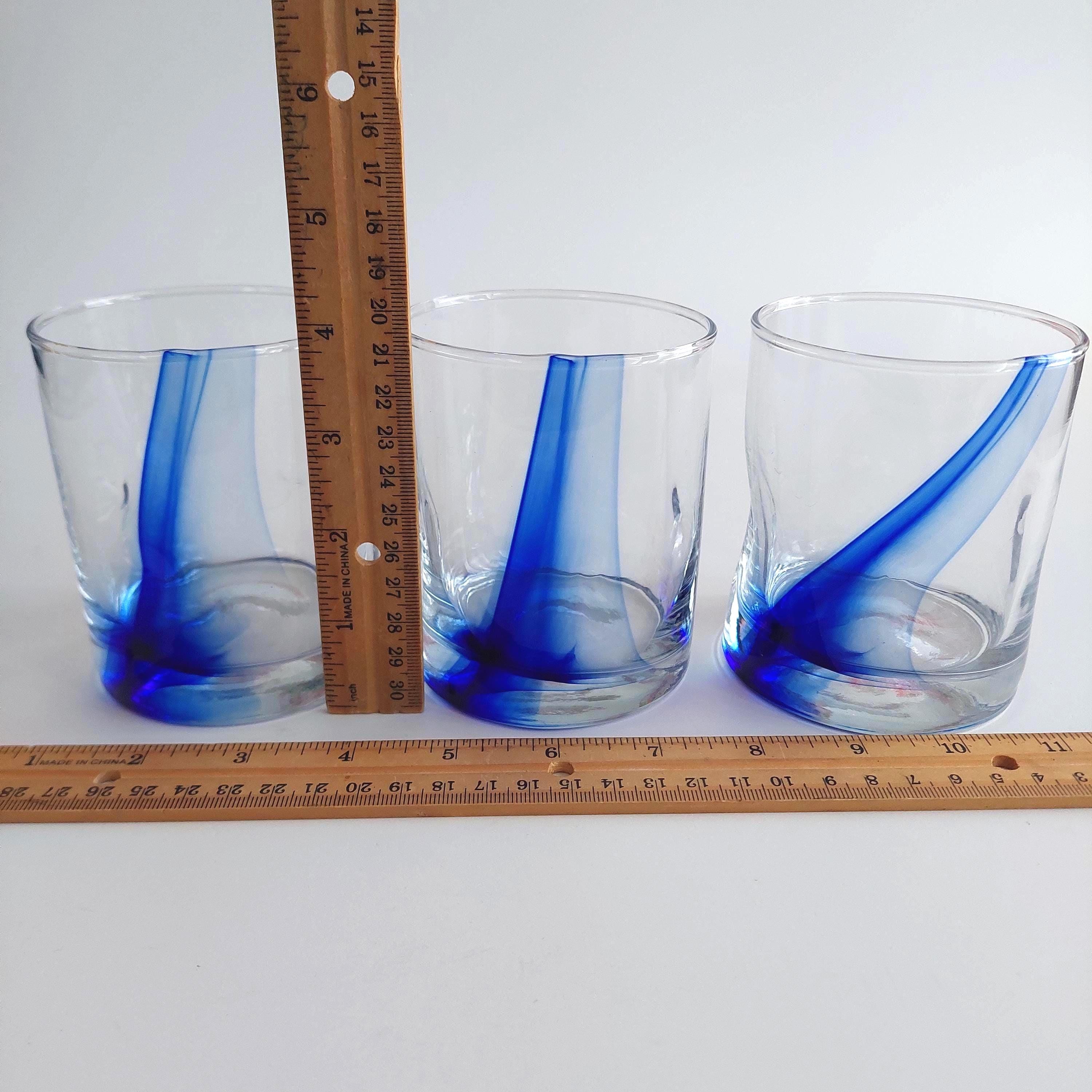 Vintage Libbey Blue Ribbon Impressions with abstract cobalt blue ribbon in the clear glass.