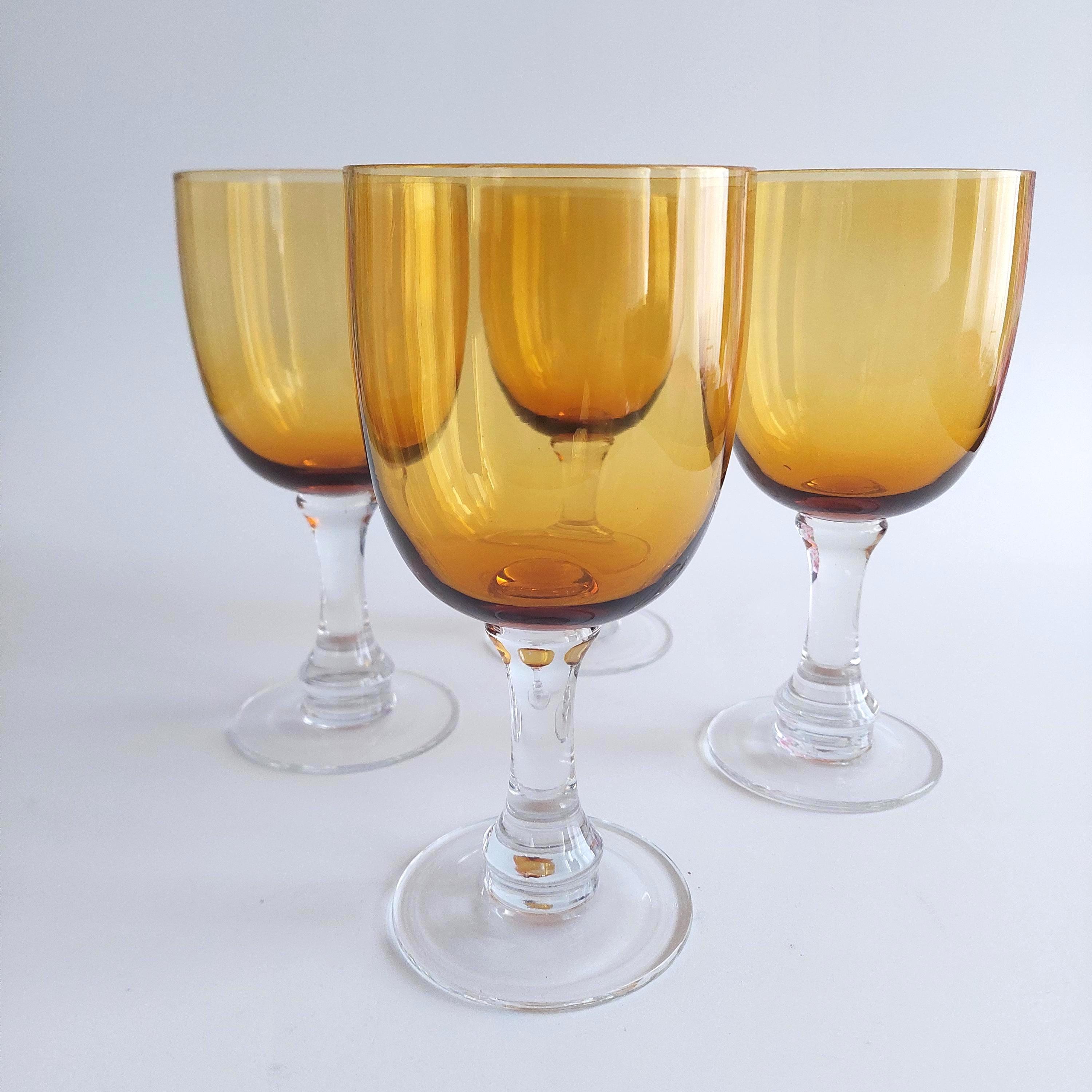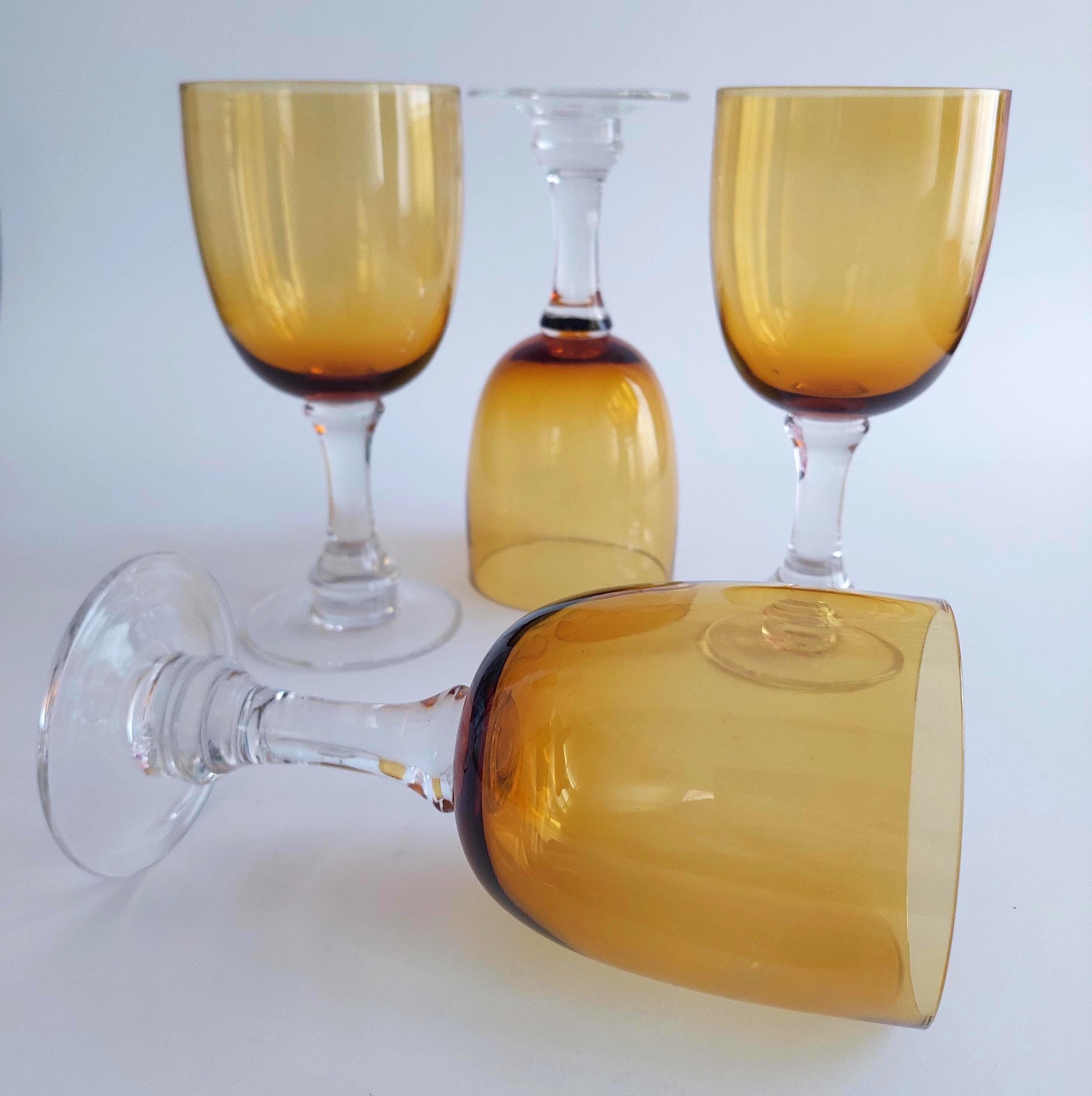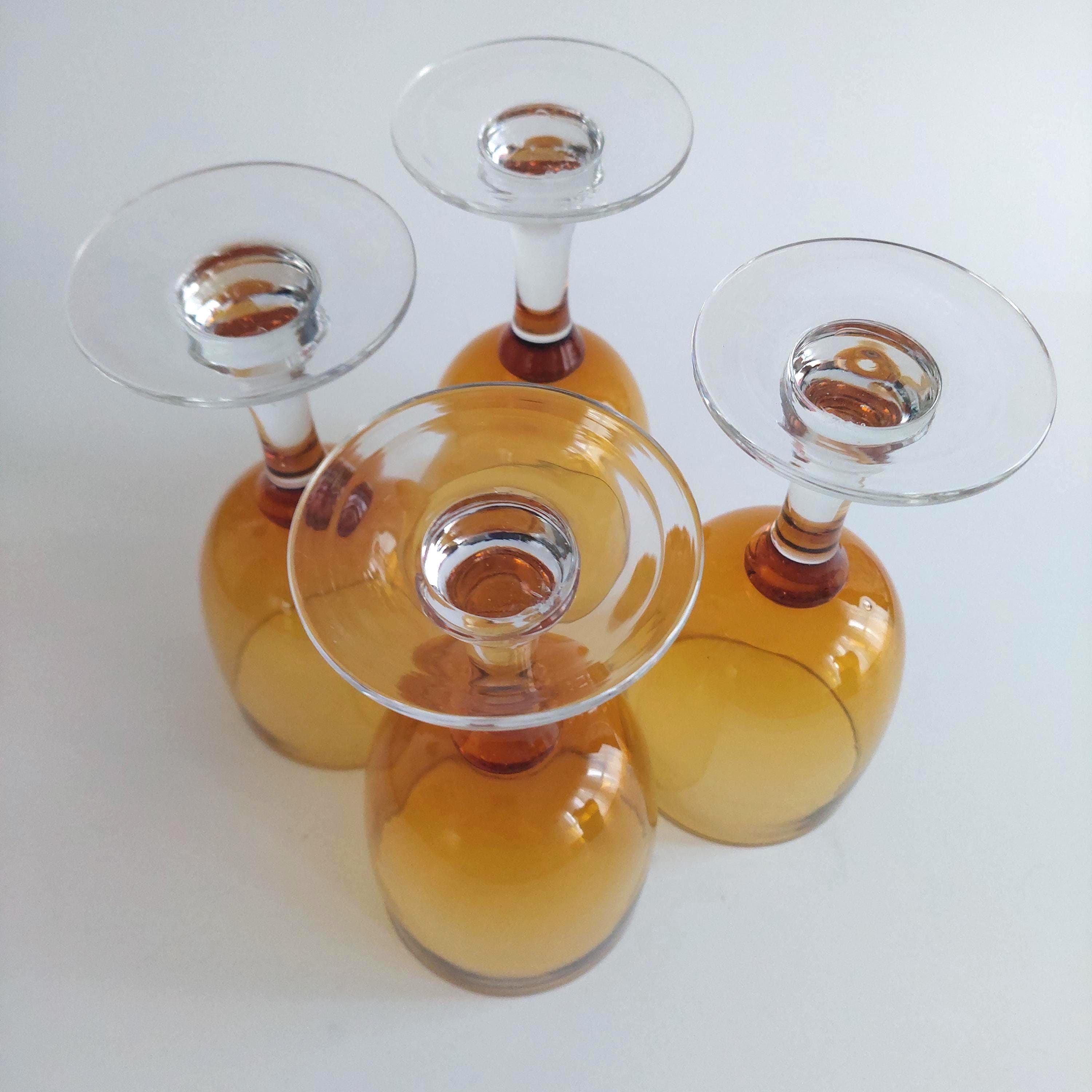 Blown glass pint glasses featuring a fantastic amber bowl and solid clear glass stem