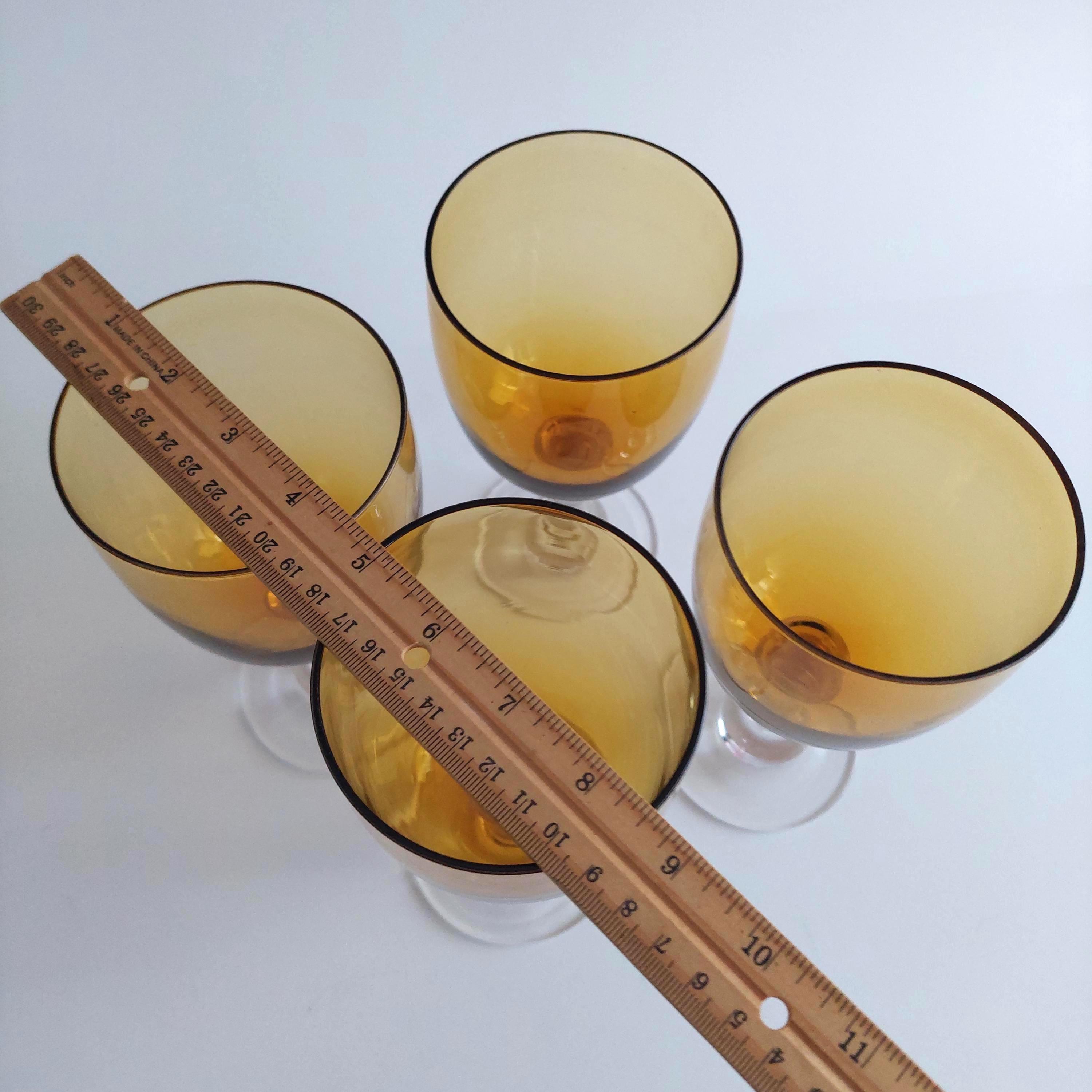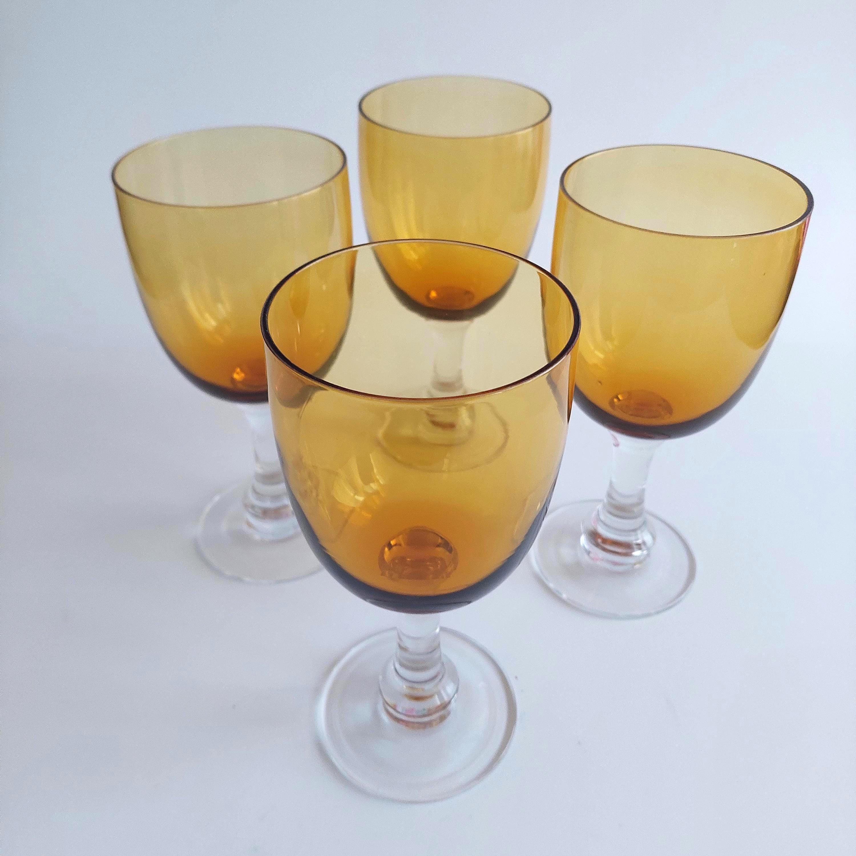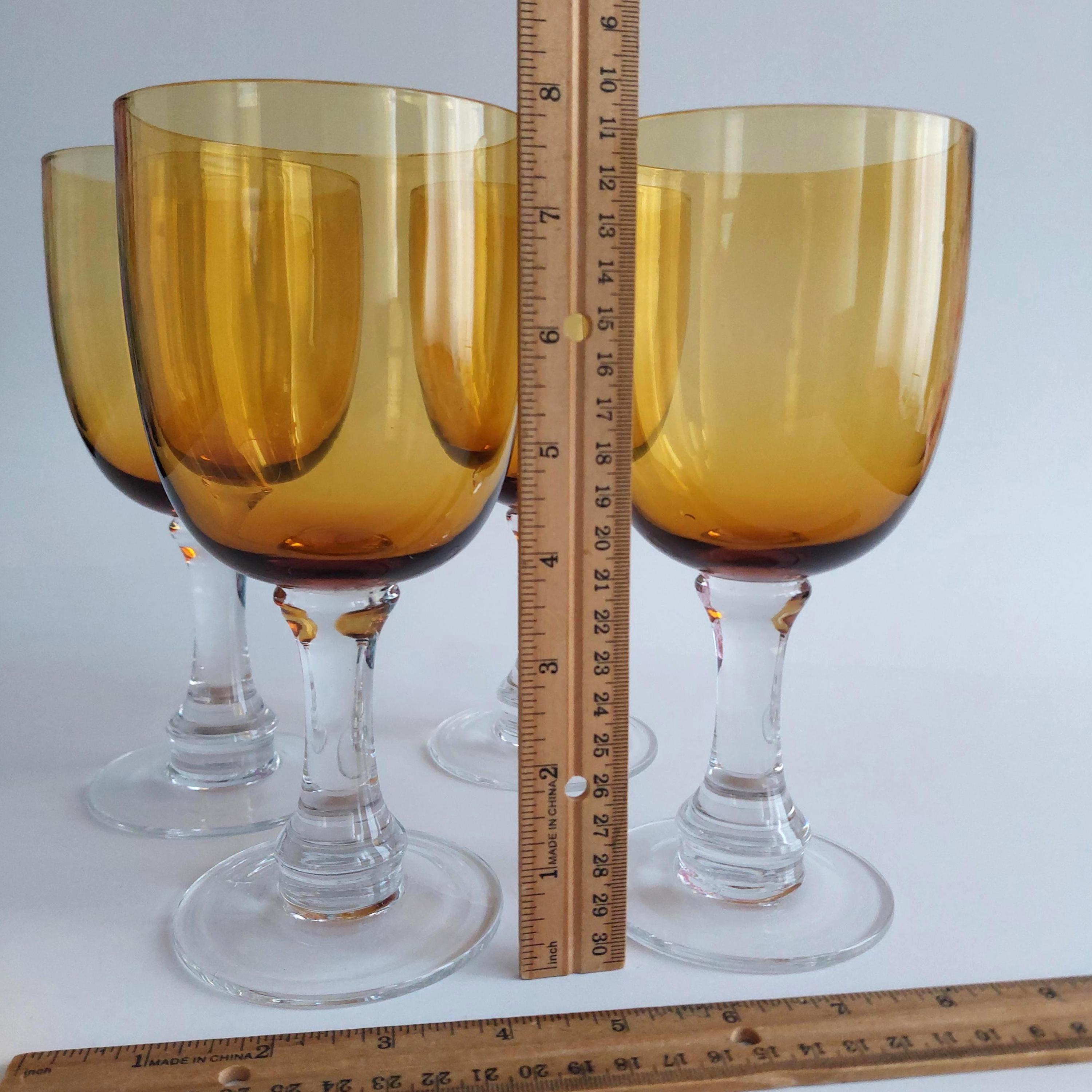 Blown glass pint glasses featuring a fantastic amber bowl and solid clear glass stem