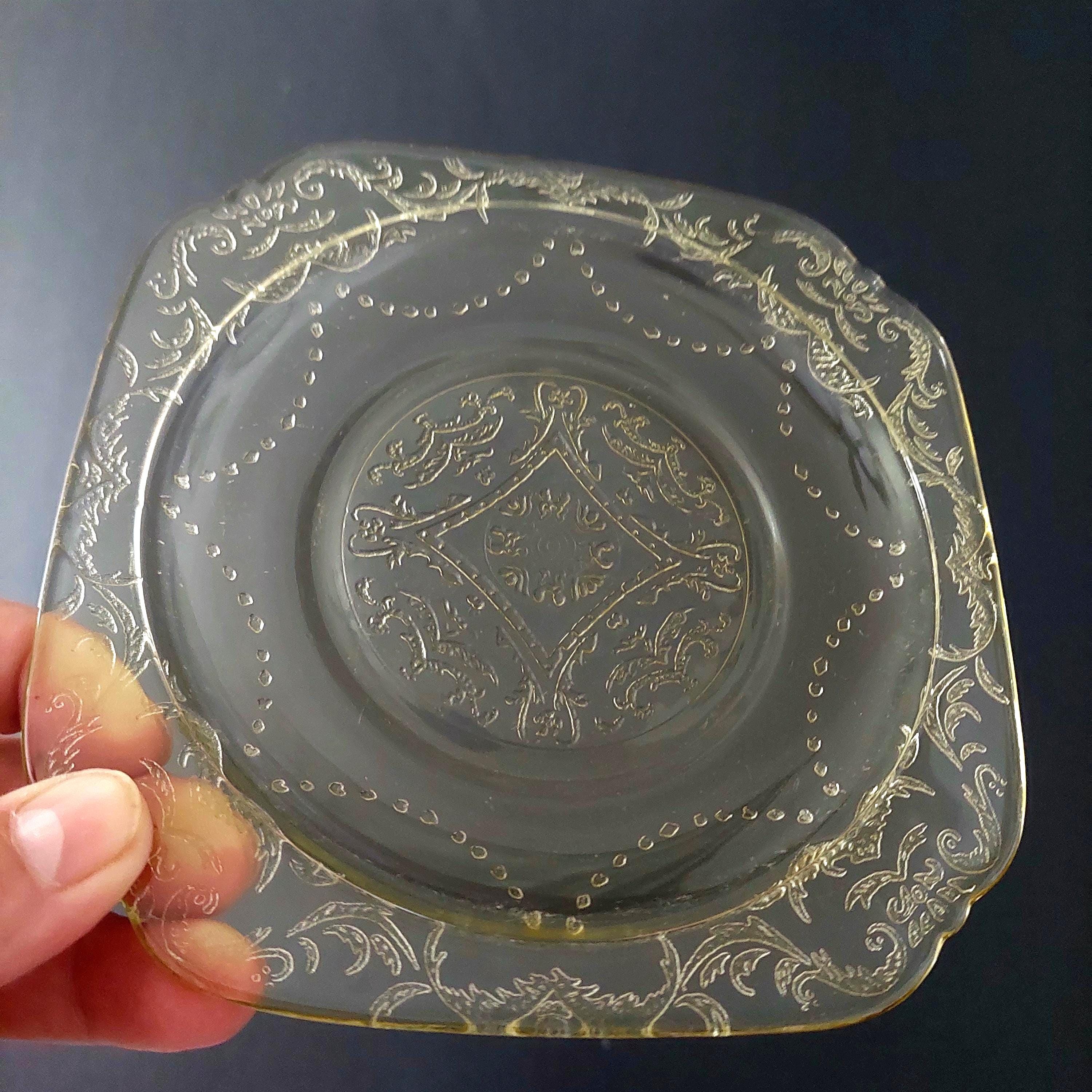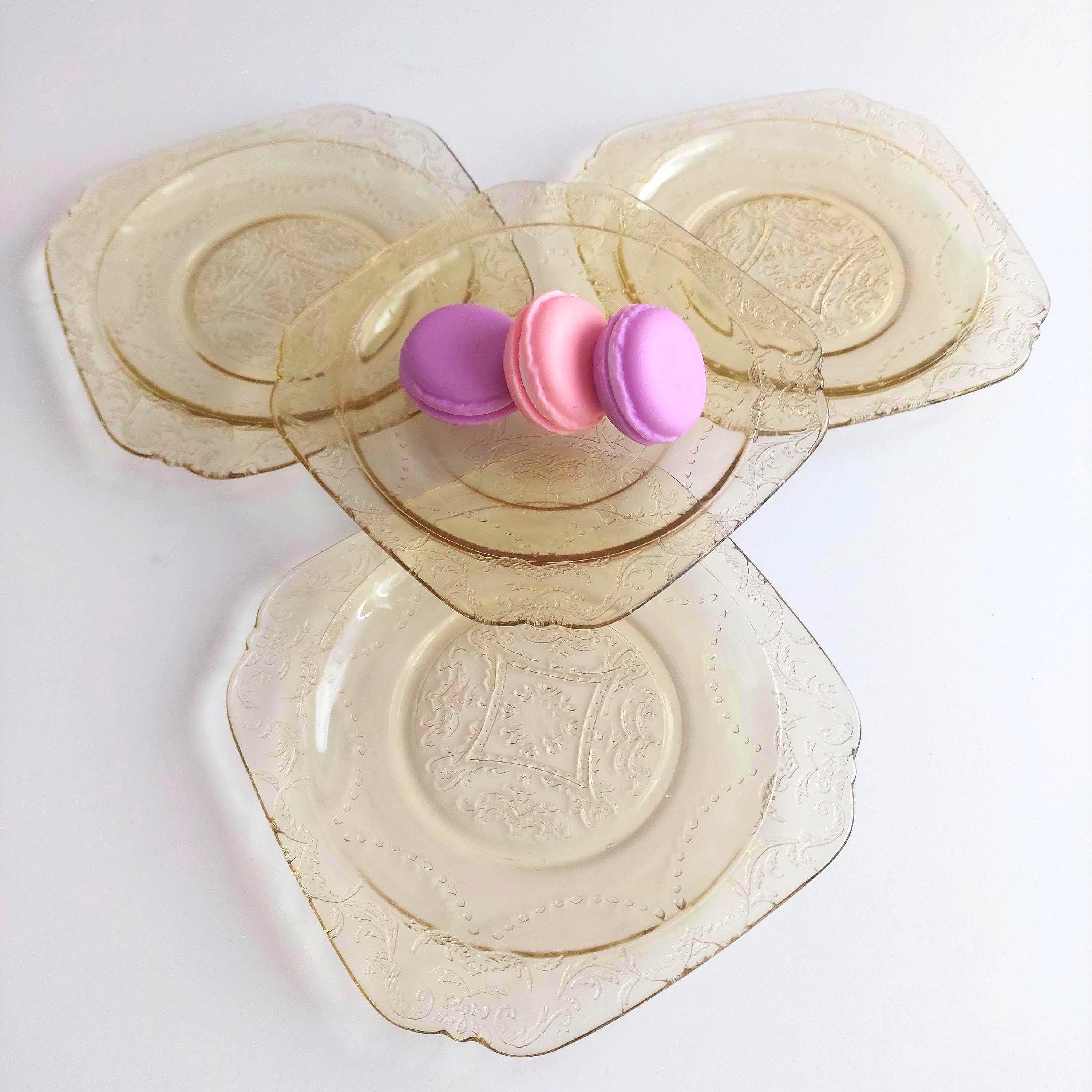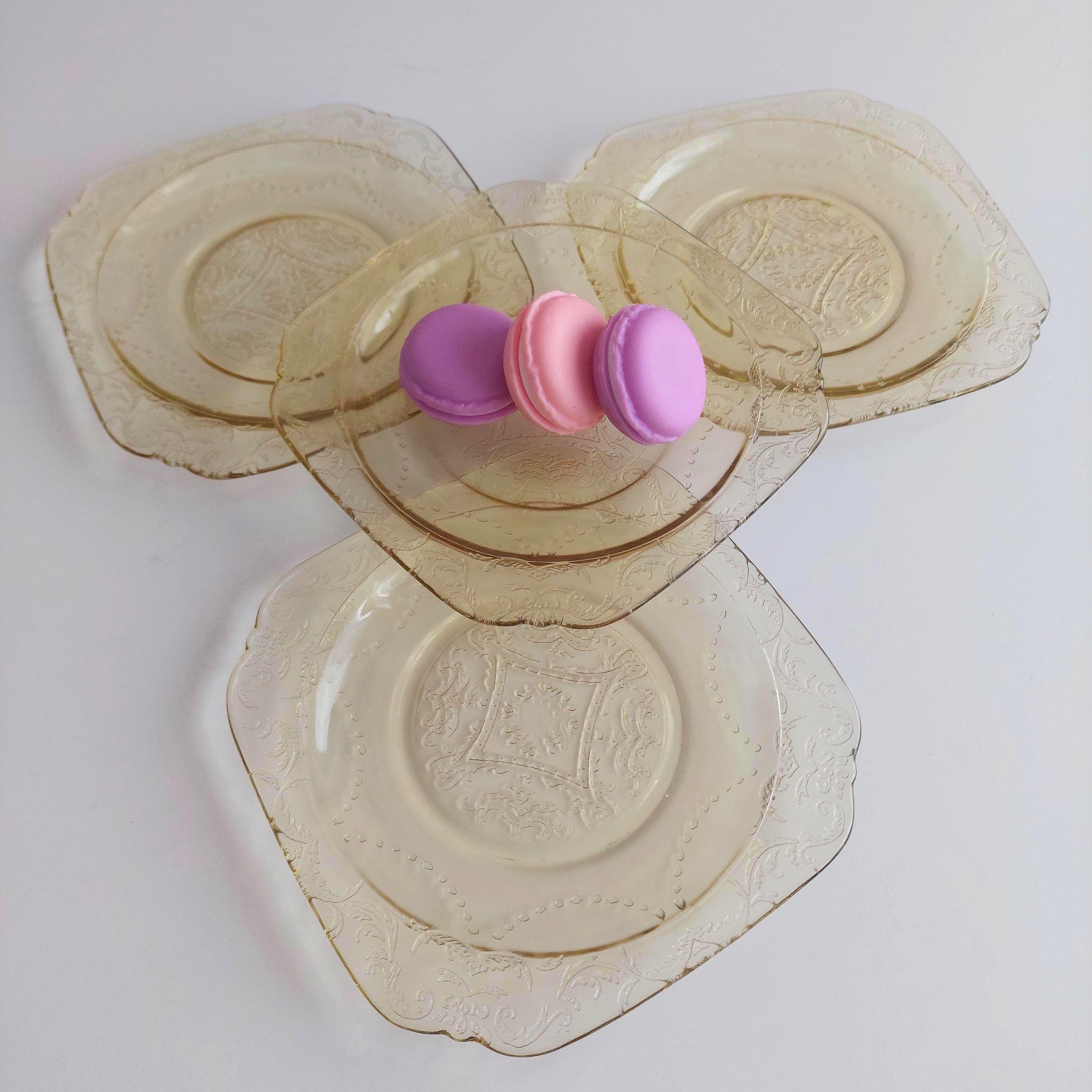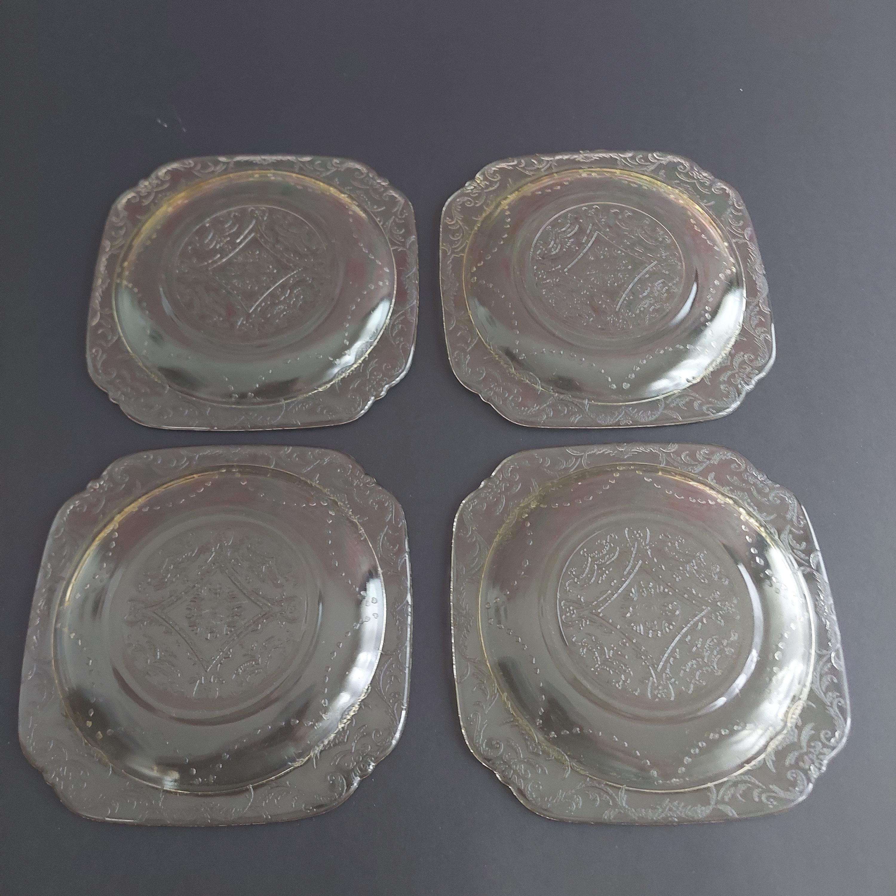 1930s Madrid by Federal Glass 6-inch yellow Depression glass side plates, Made in USA