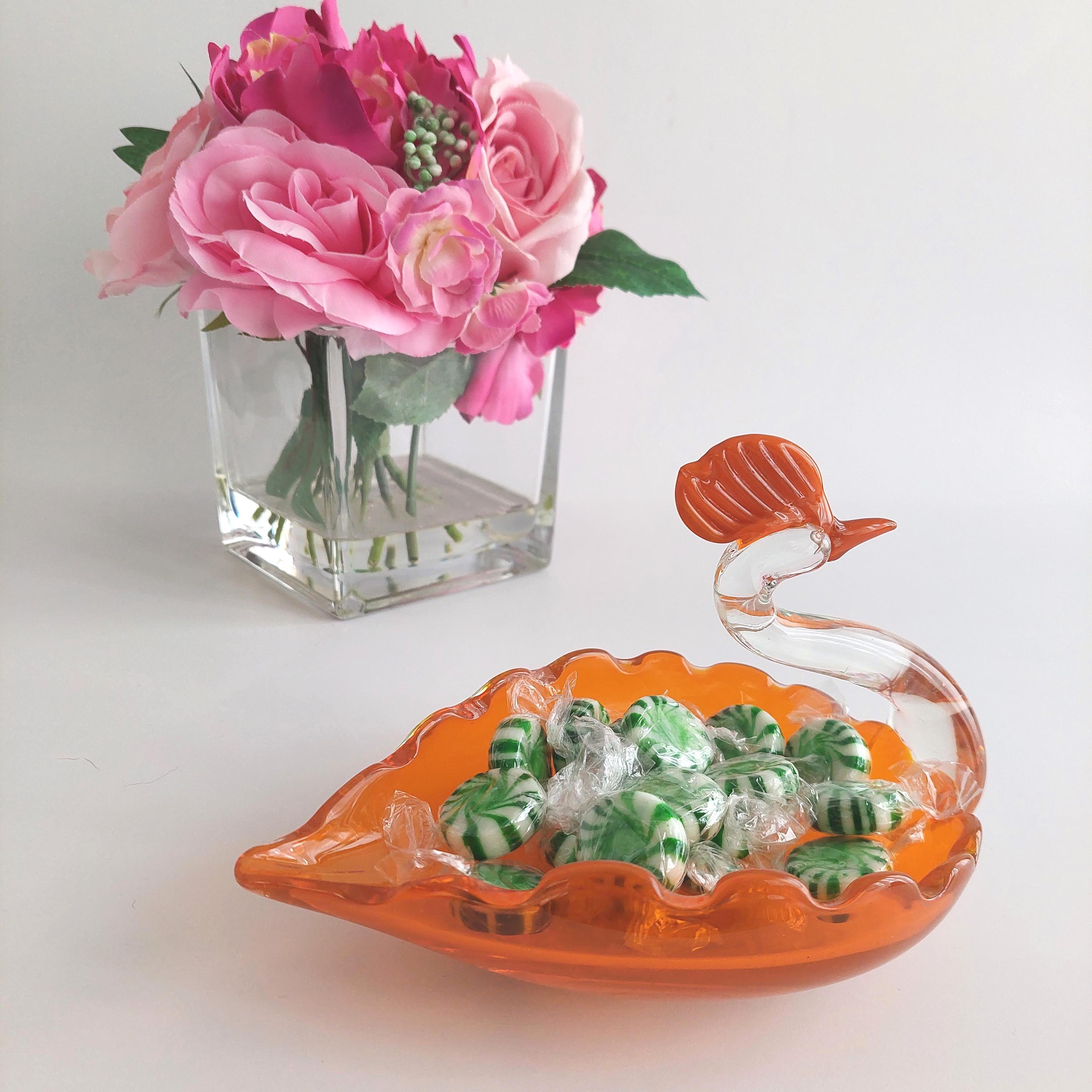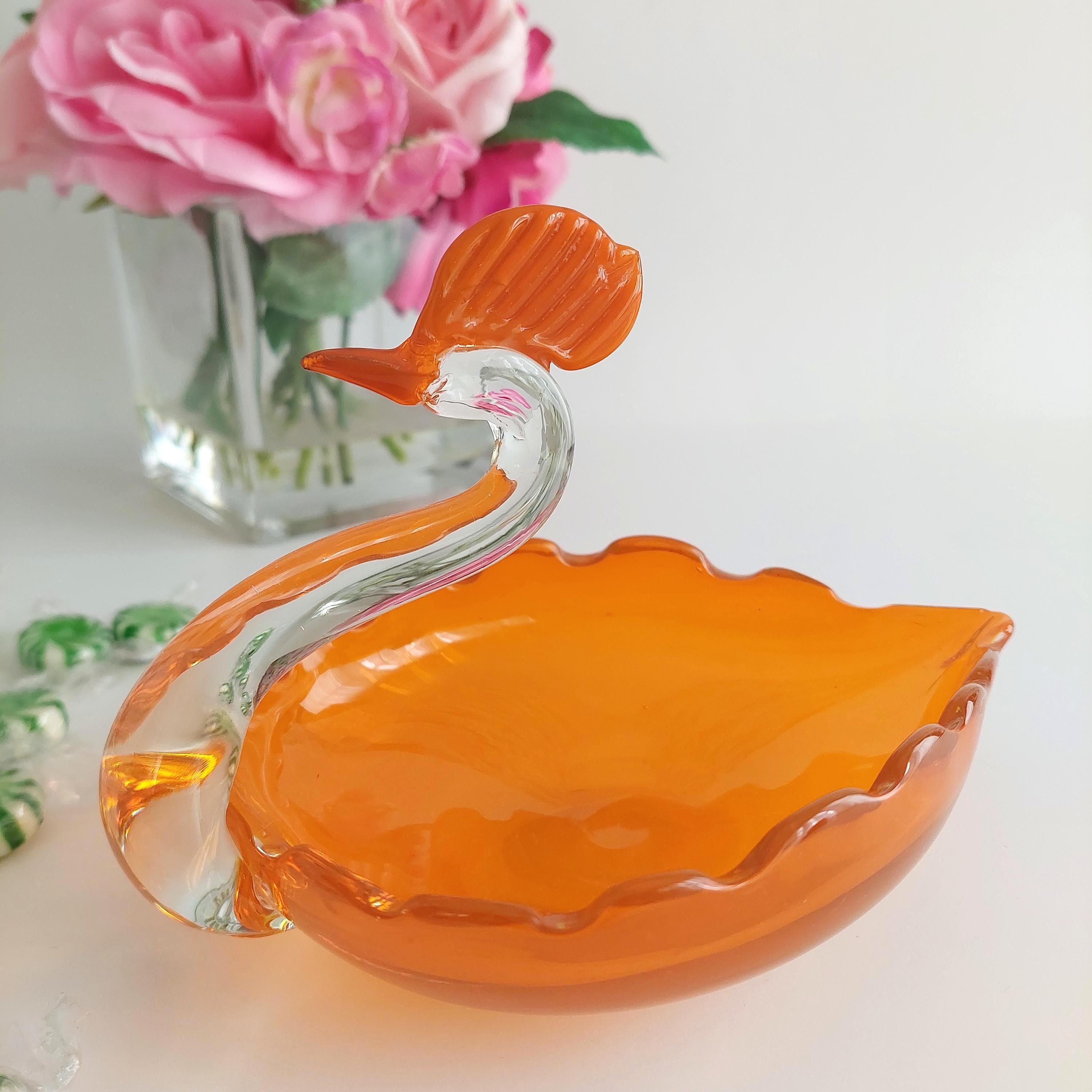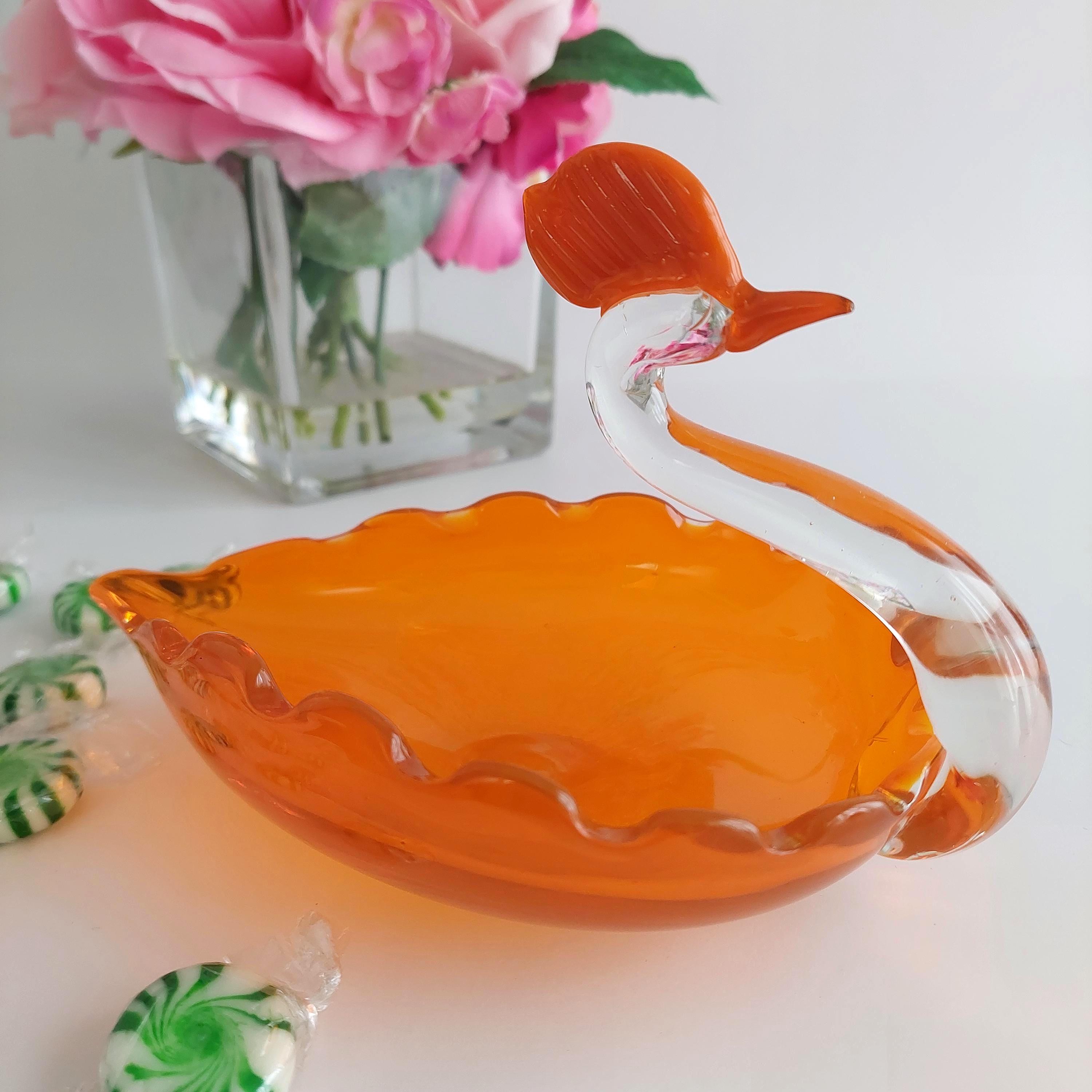 Stunning Mid-Century hand blown glass swan candy or trinket dish.