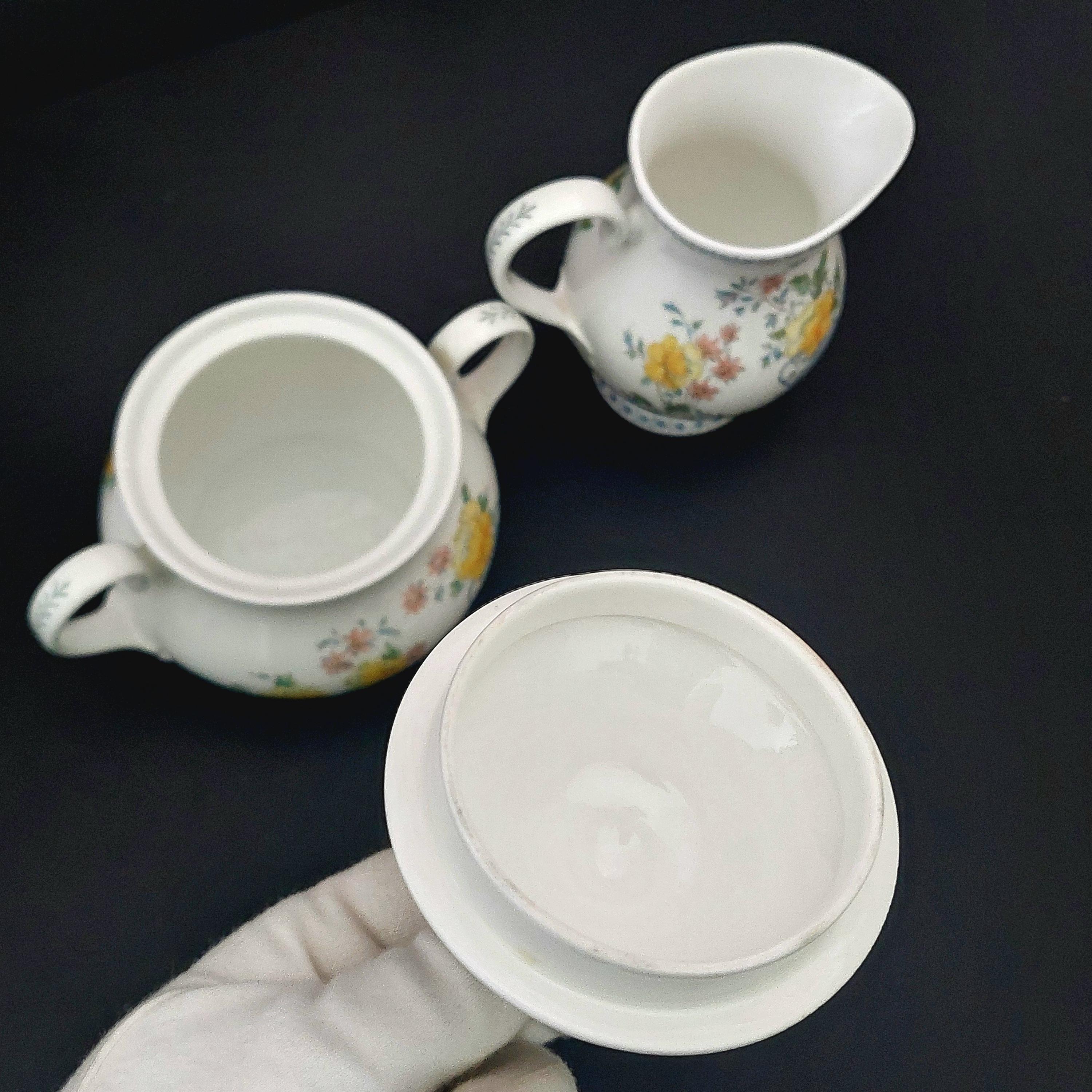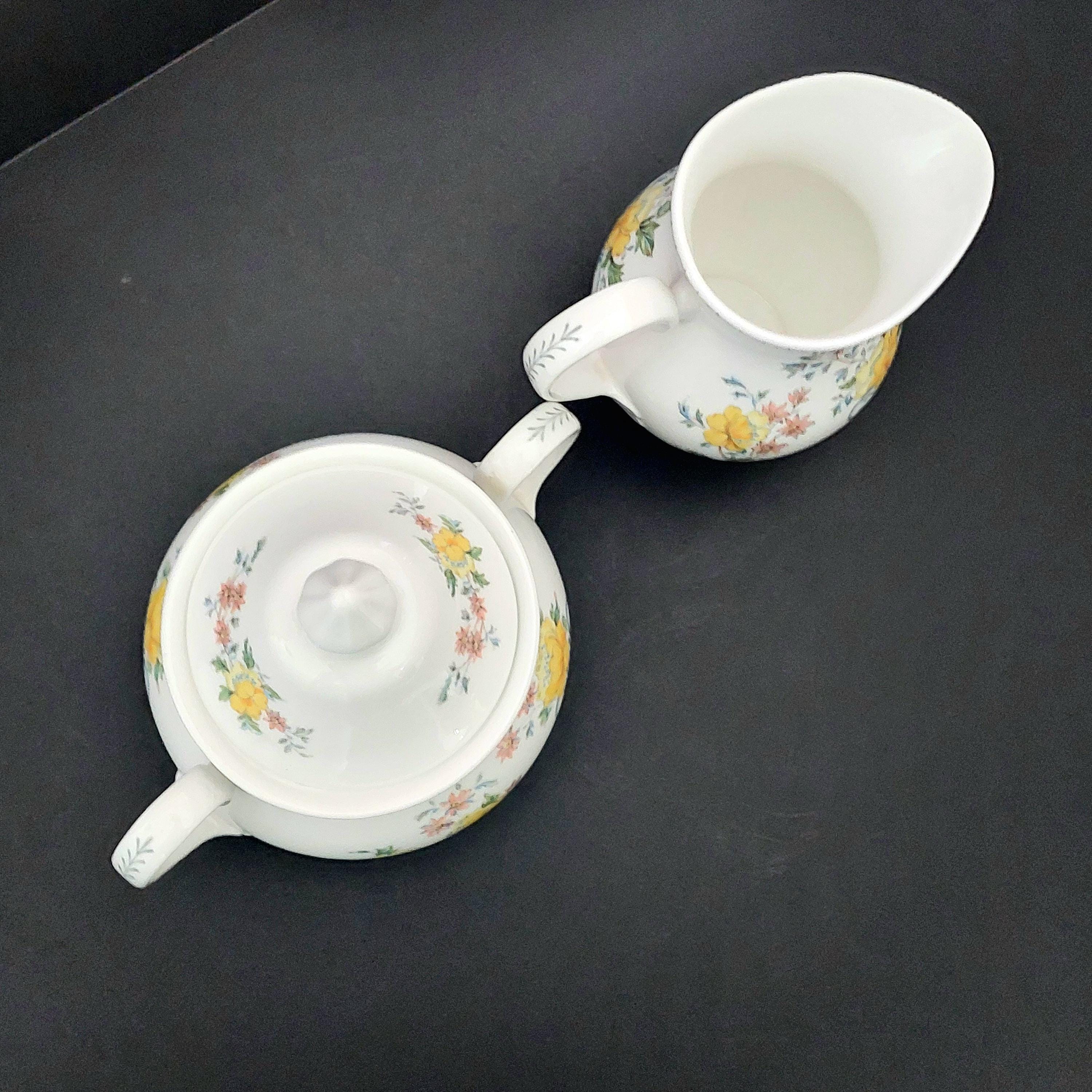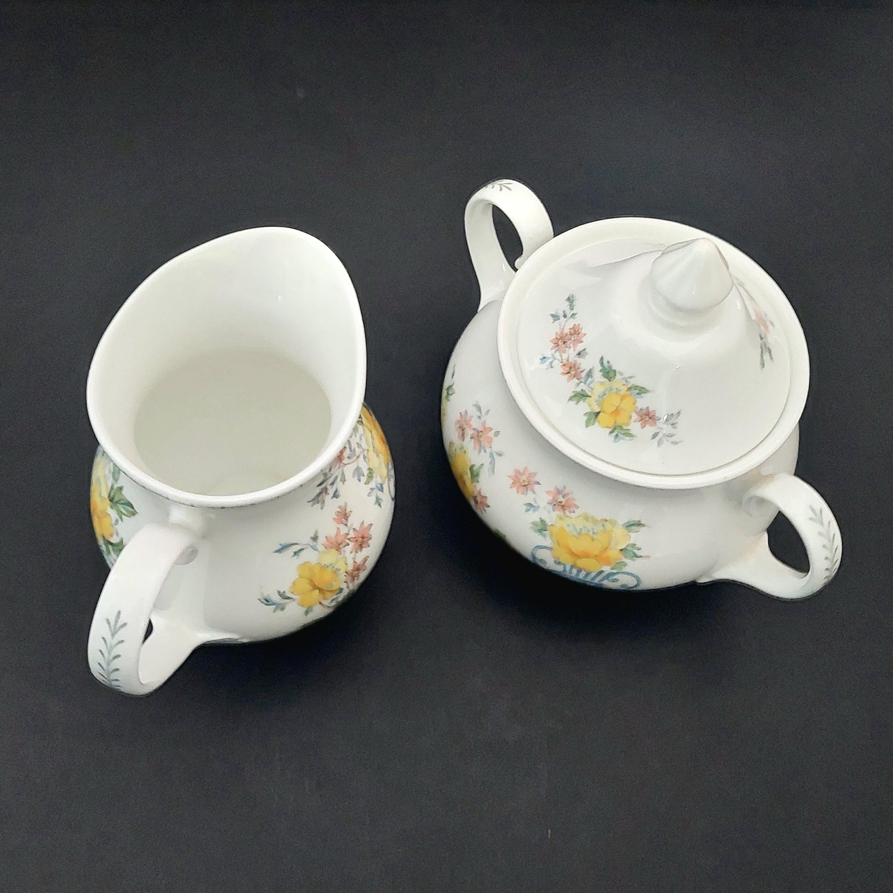 1990s Royal Grafton bone china sugar bowl & creamer set in the floral Heritage pattern. Made in England