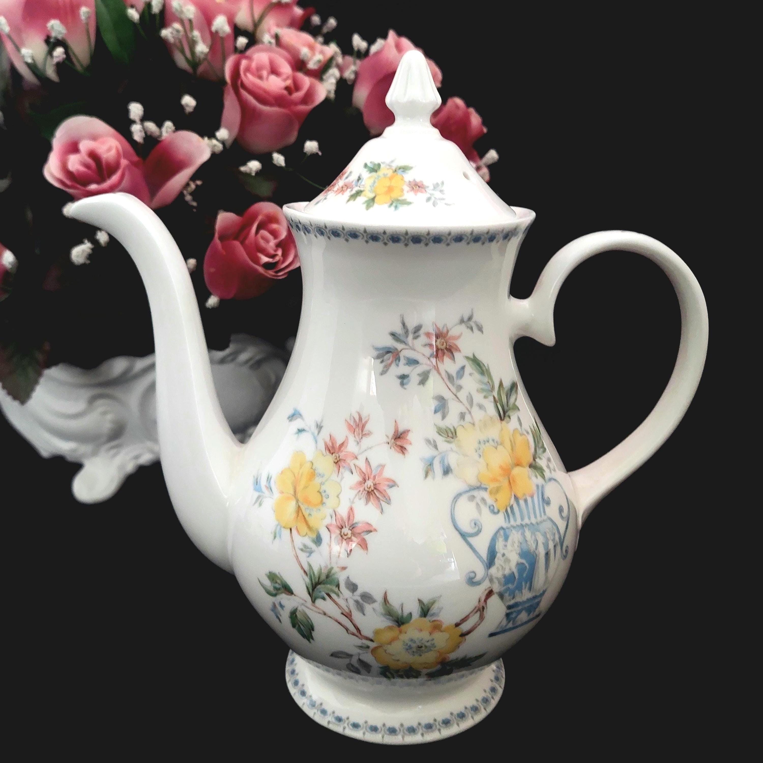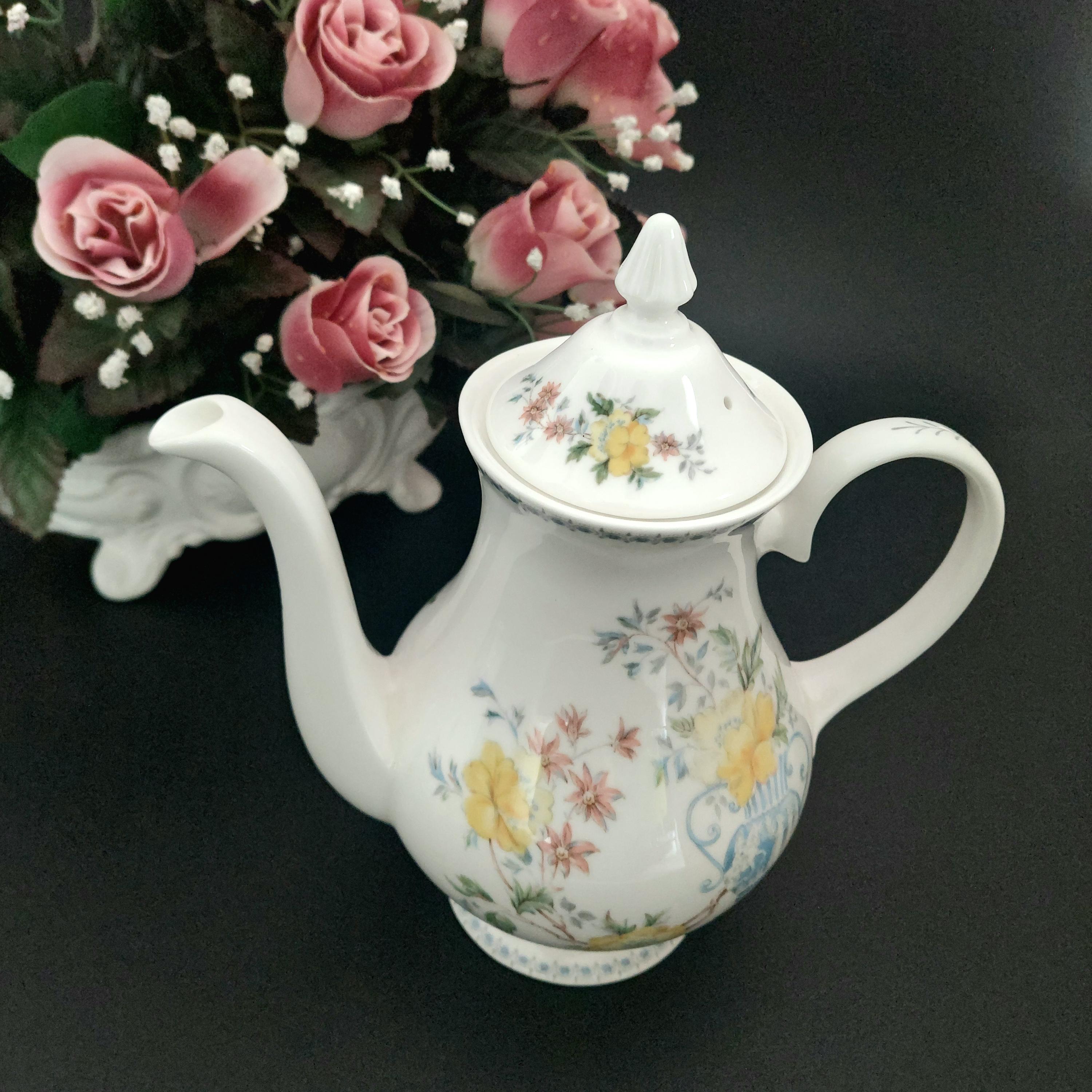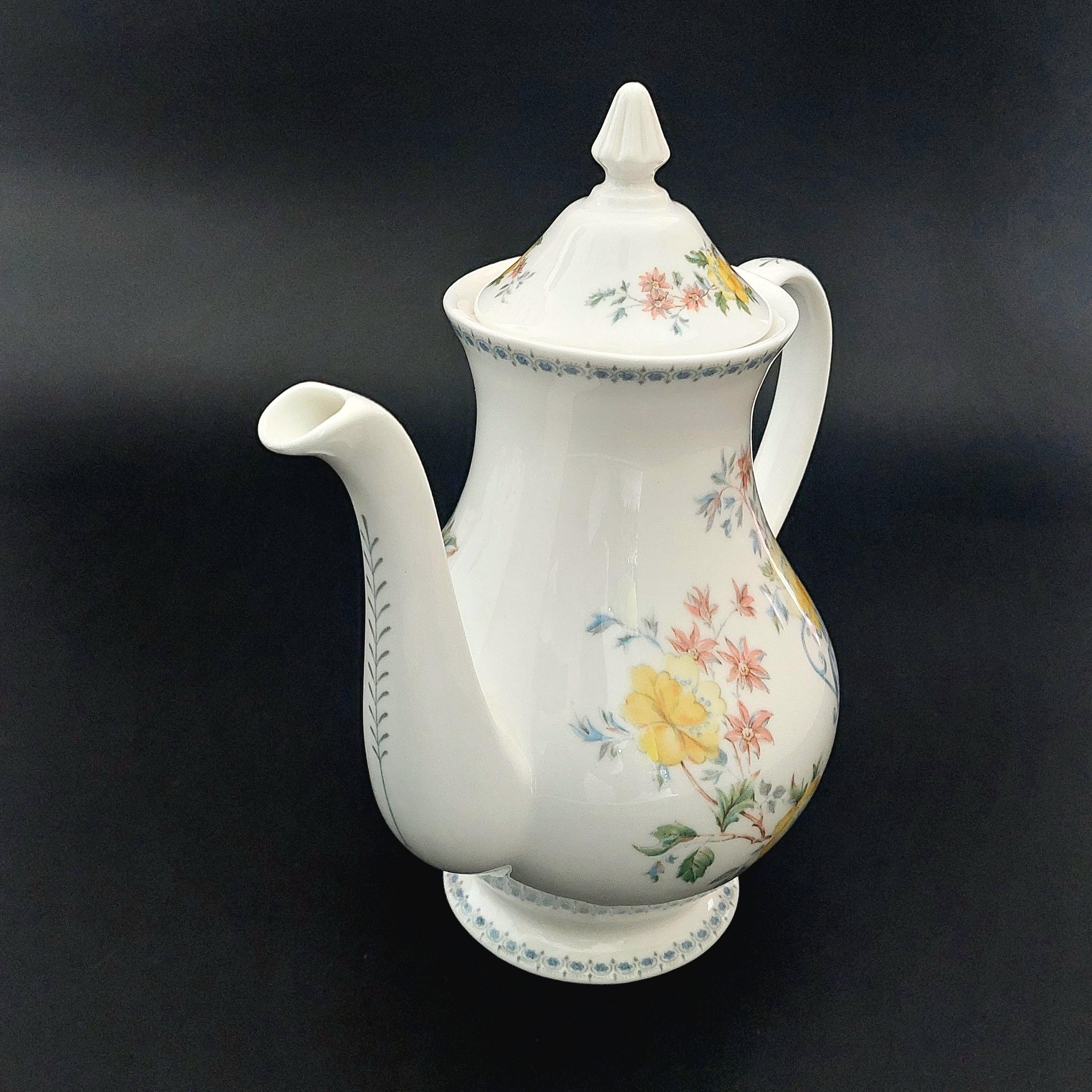 1990s Royal Grafton bone china coffee pot in the floral Heritage pattern. Made in England