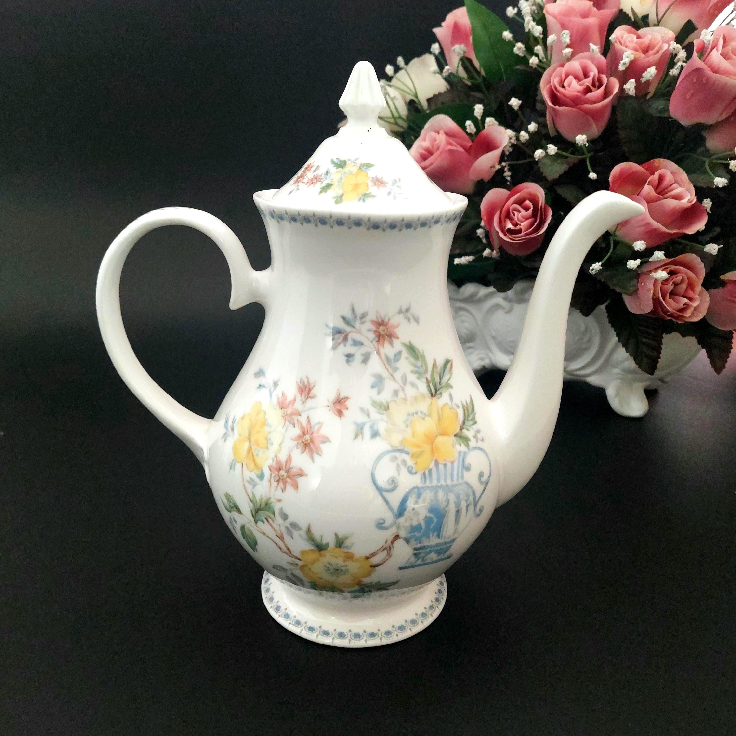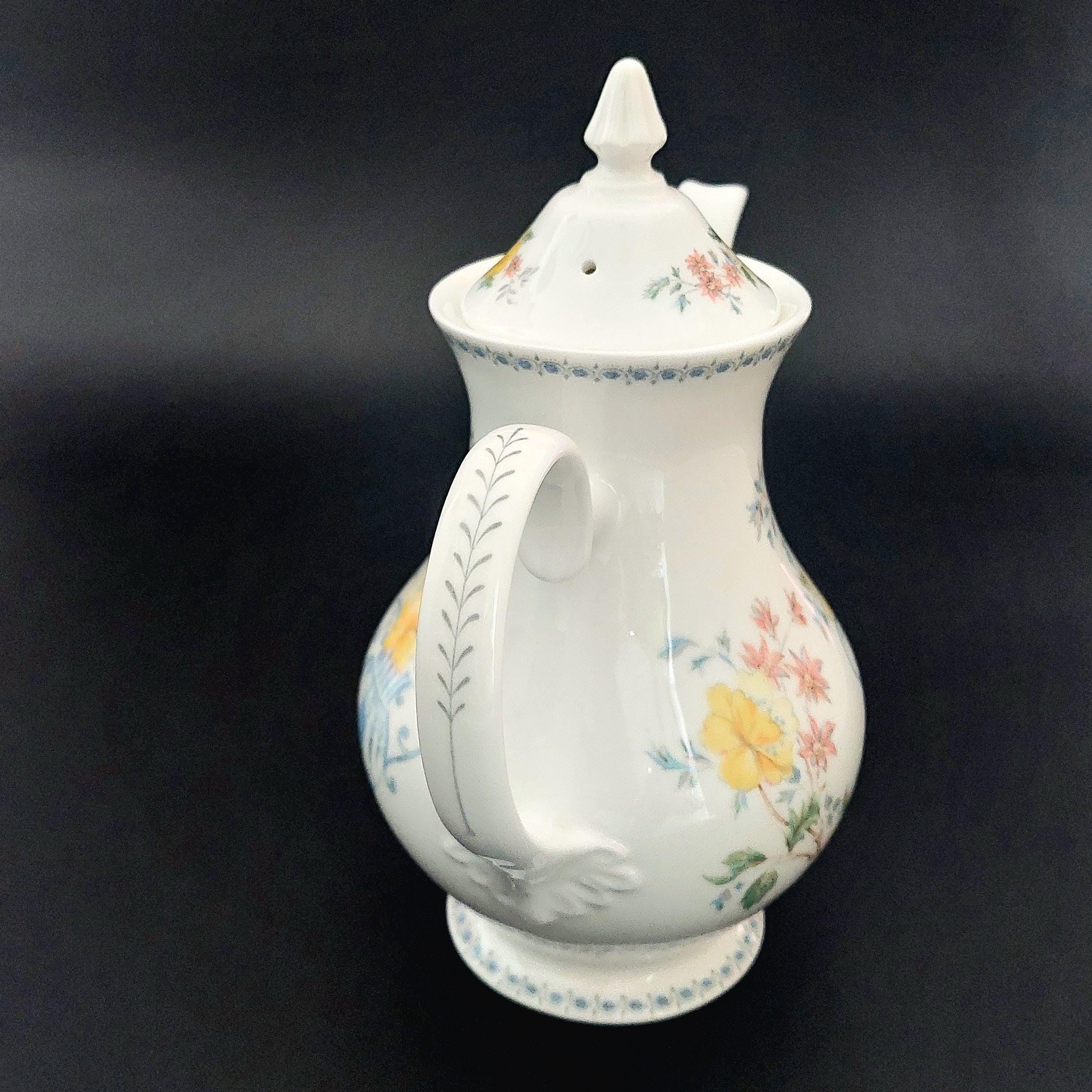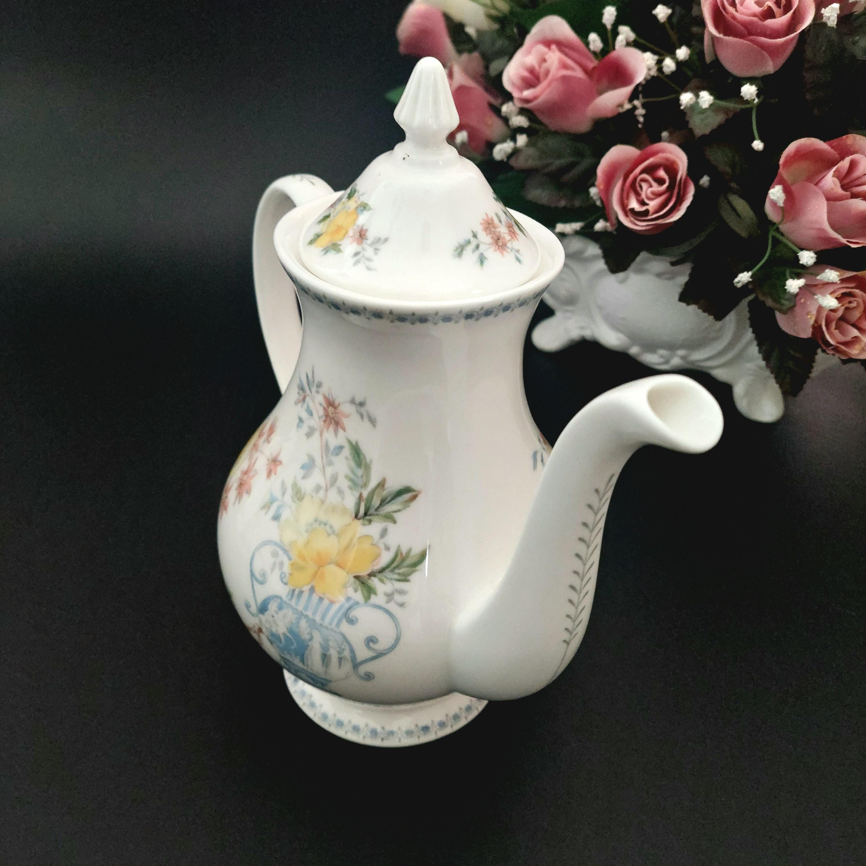1990s Royal Grafton bone china coffee pot in the floral Heritage pattern. Made in England