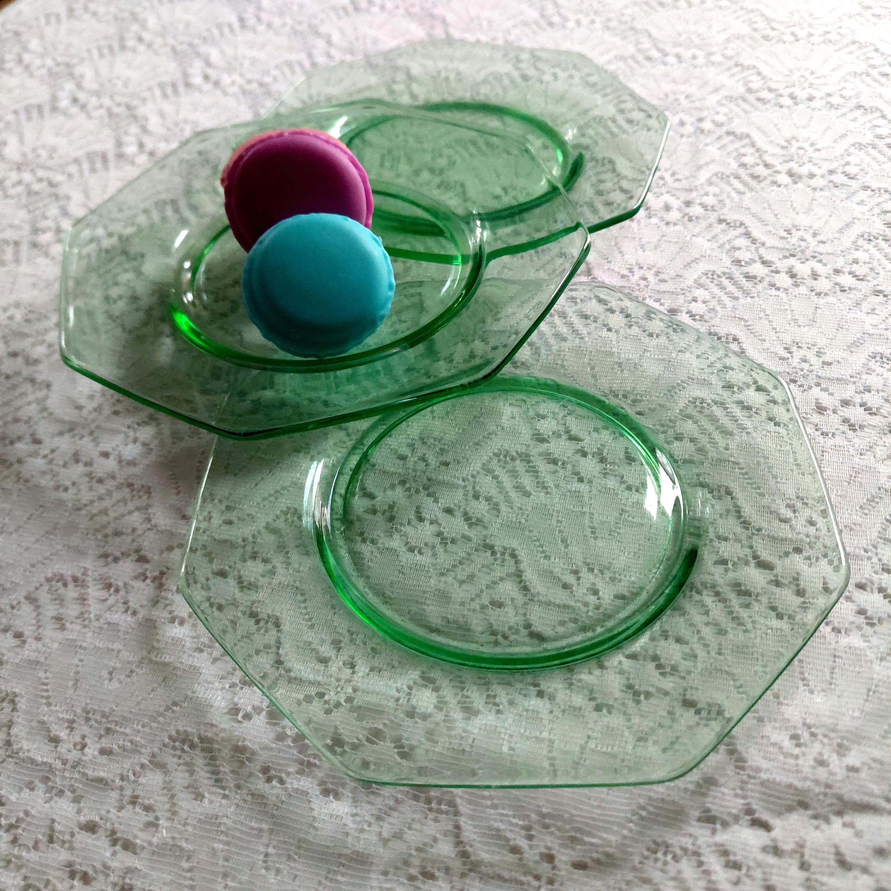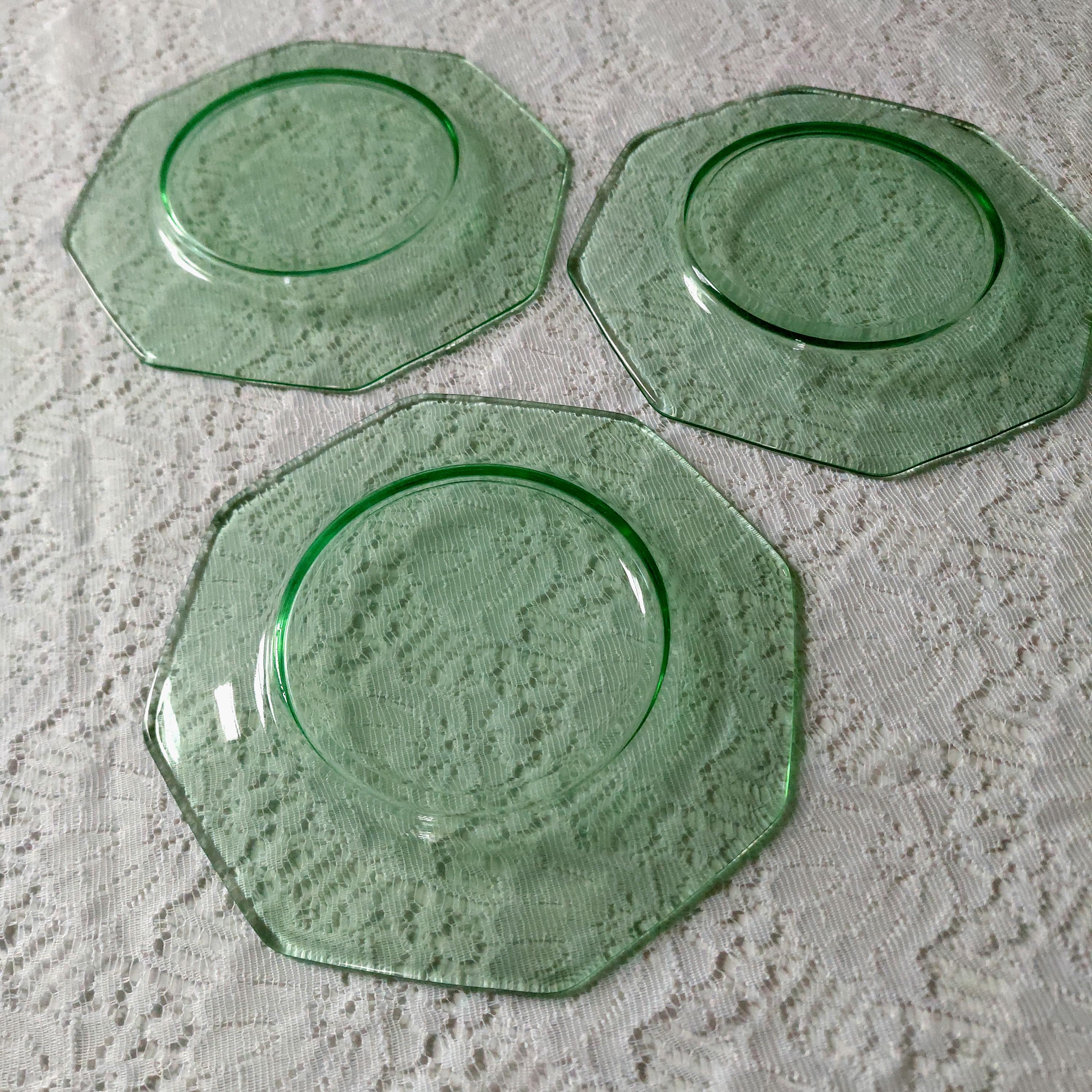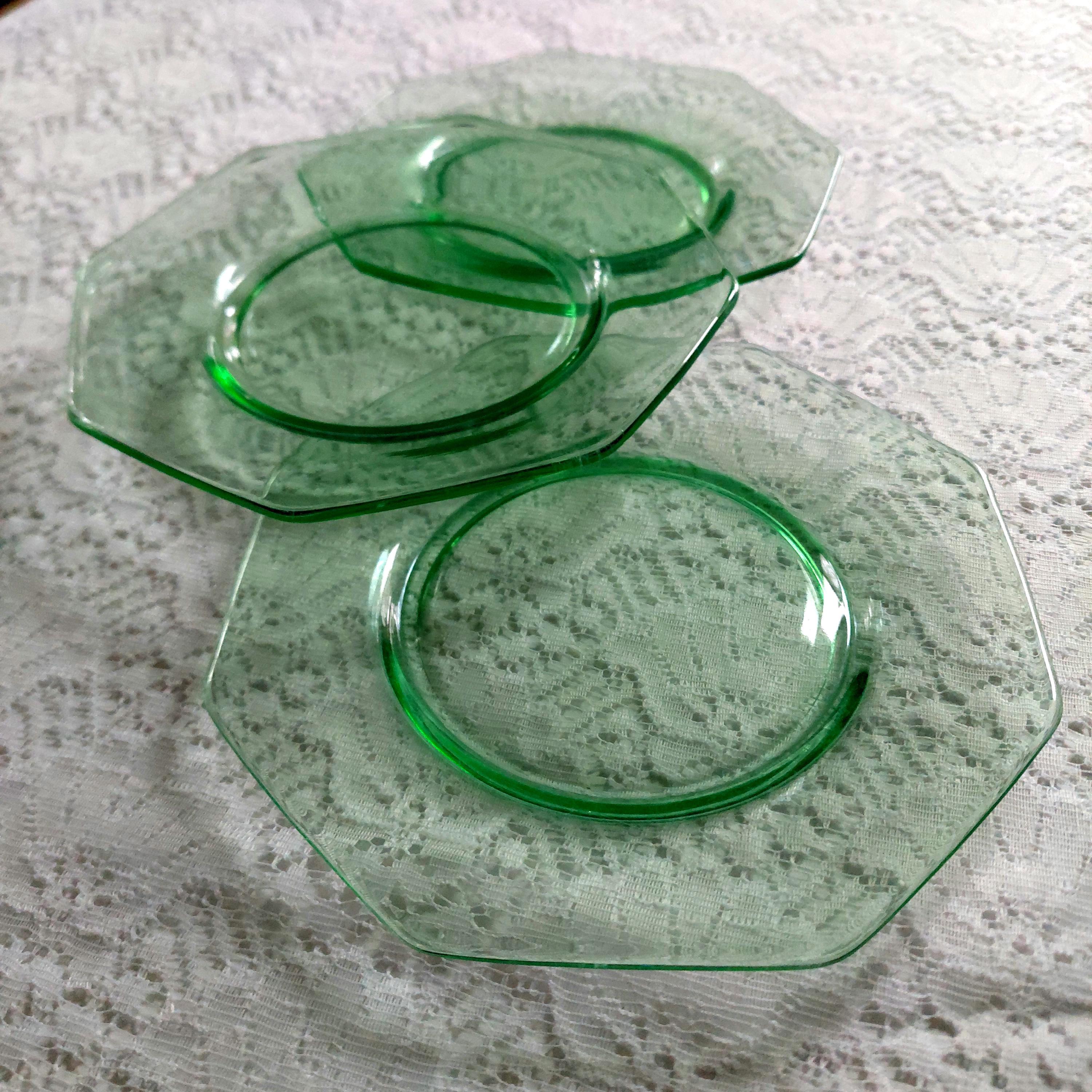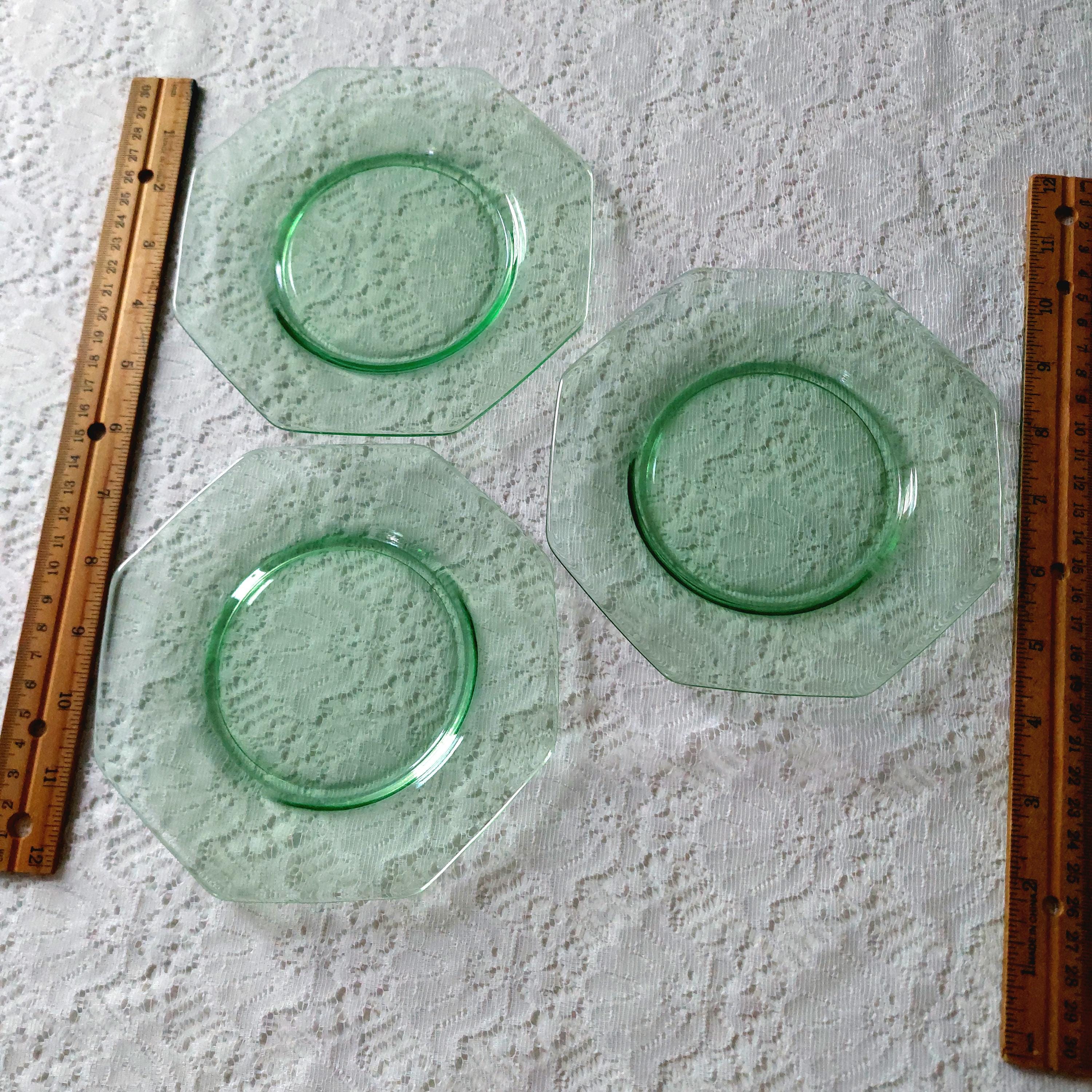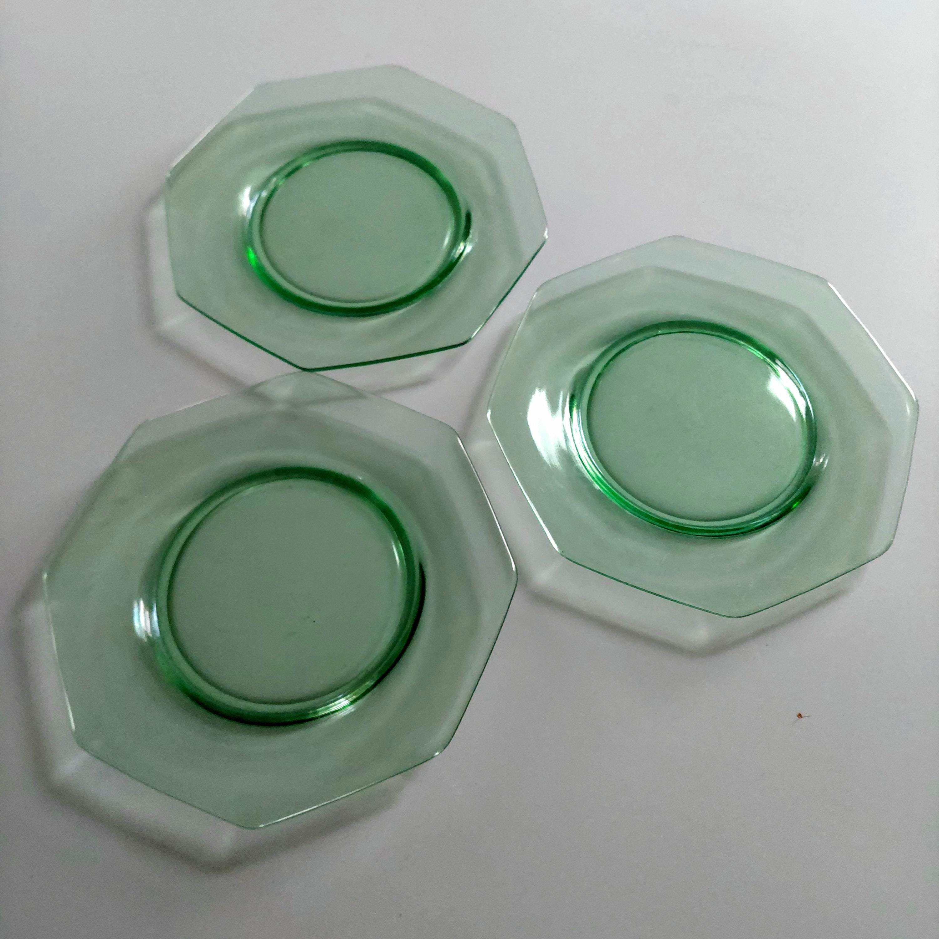 1930s vintage green Depression glass 8-sided (octagon) side plates