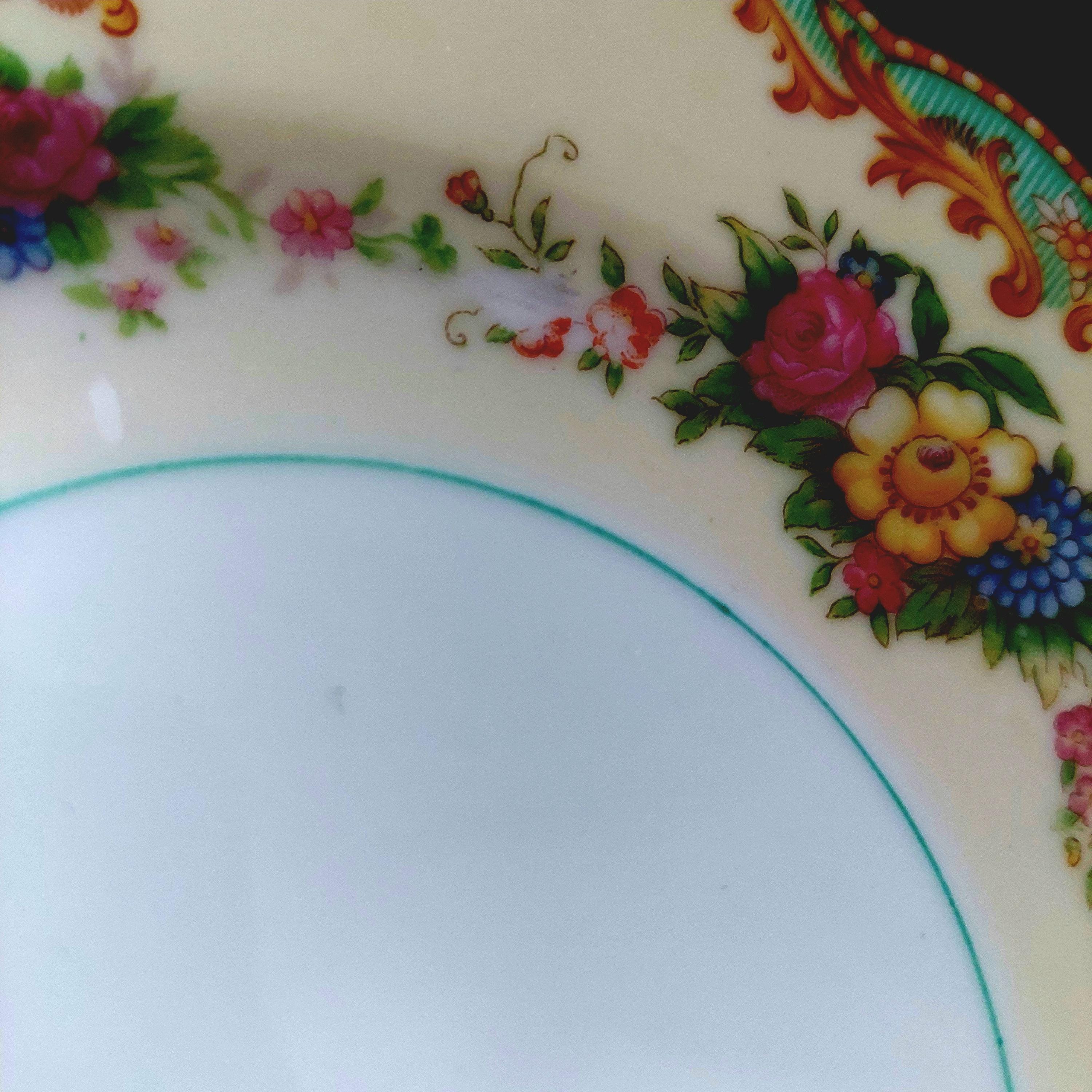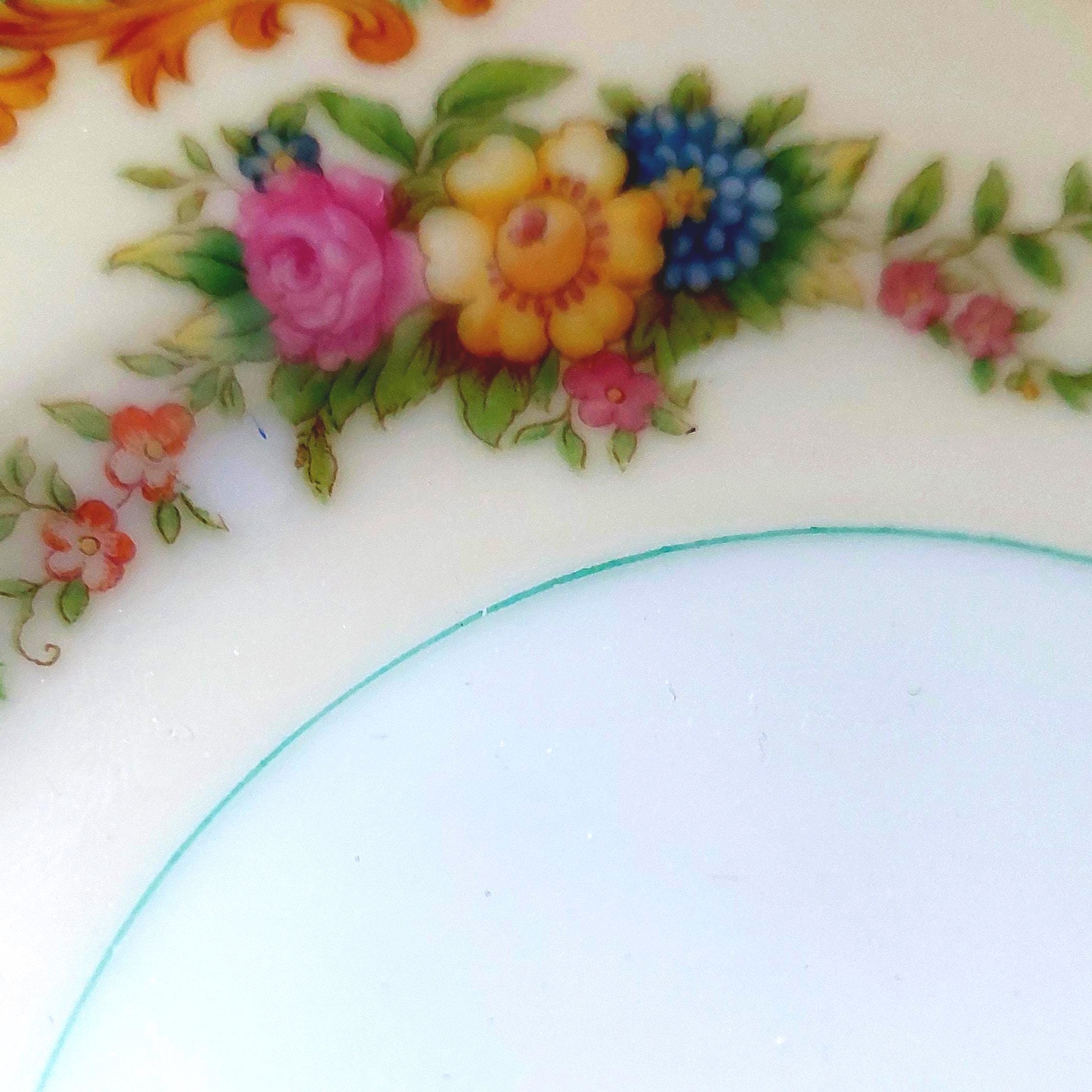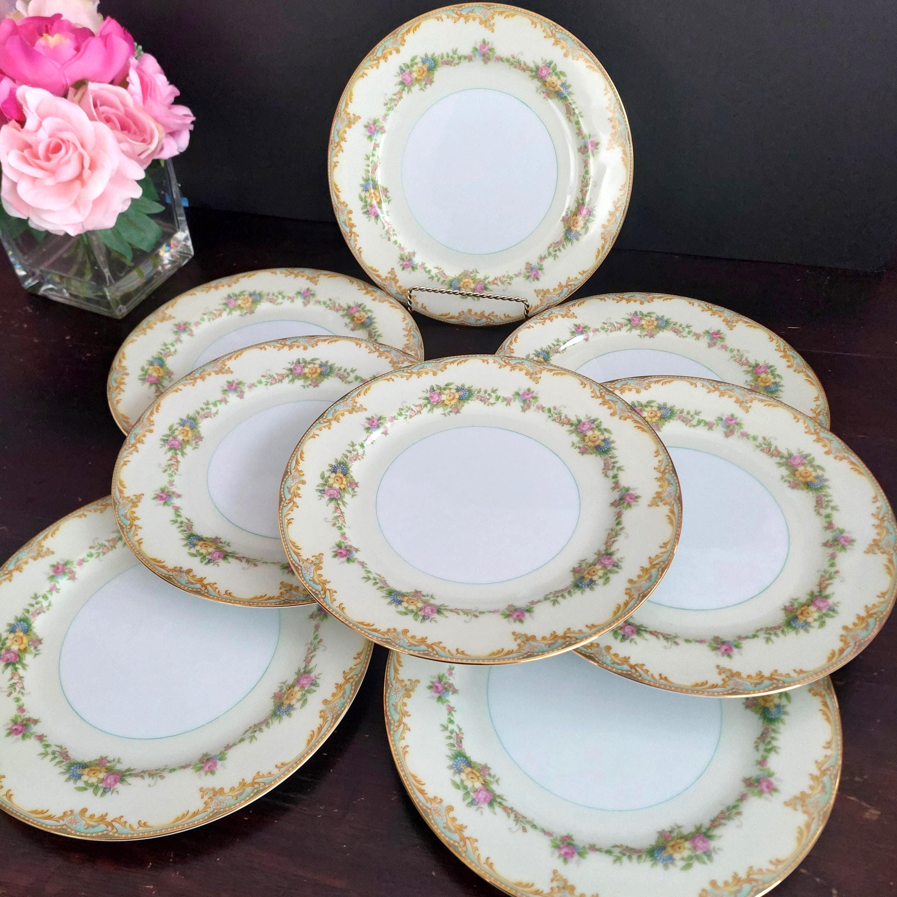 Vintage condition: NO chips. NO cracks. Utensil markings on plate faces expected with vintage use. Pattern wear on the shoulder of the plates, from the plates being stacked on top of each other.