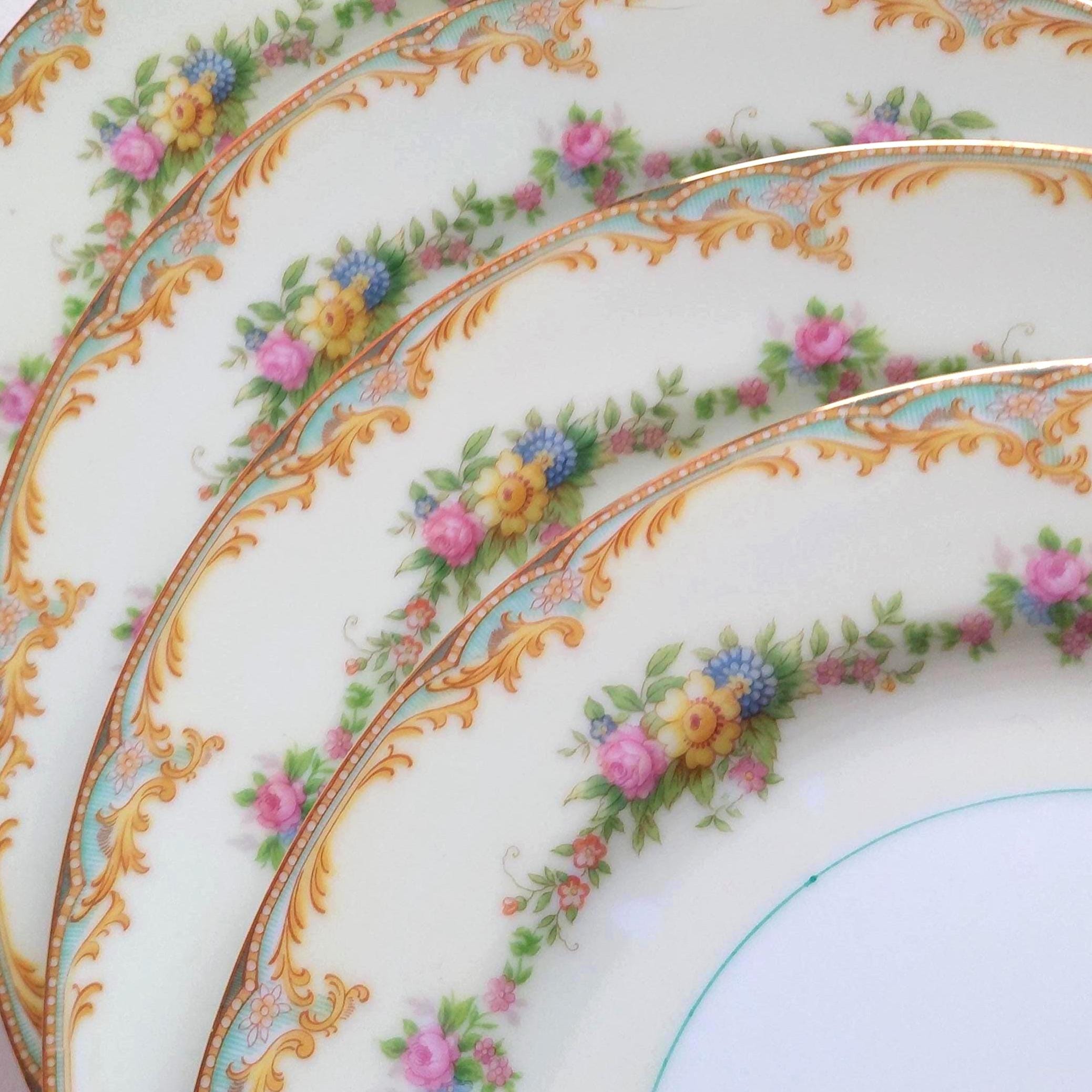 4-piece Noritake Milroy dinner plate set. Made in Japan, circa 1930s