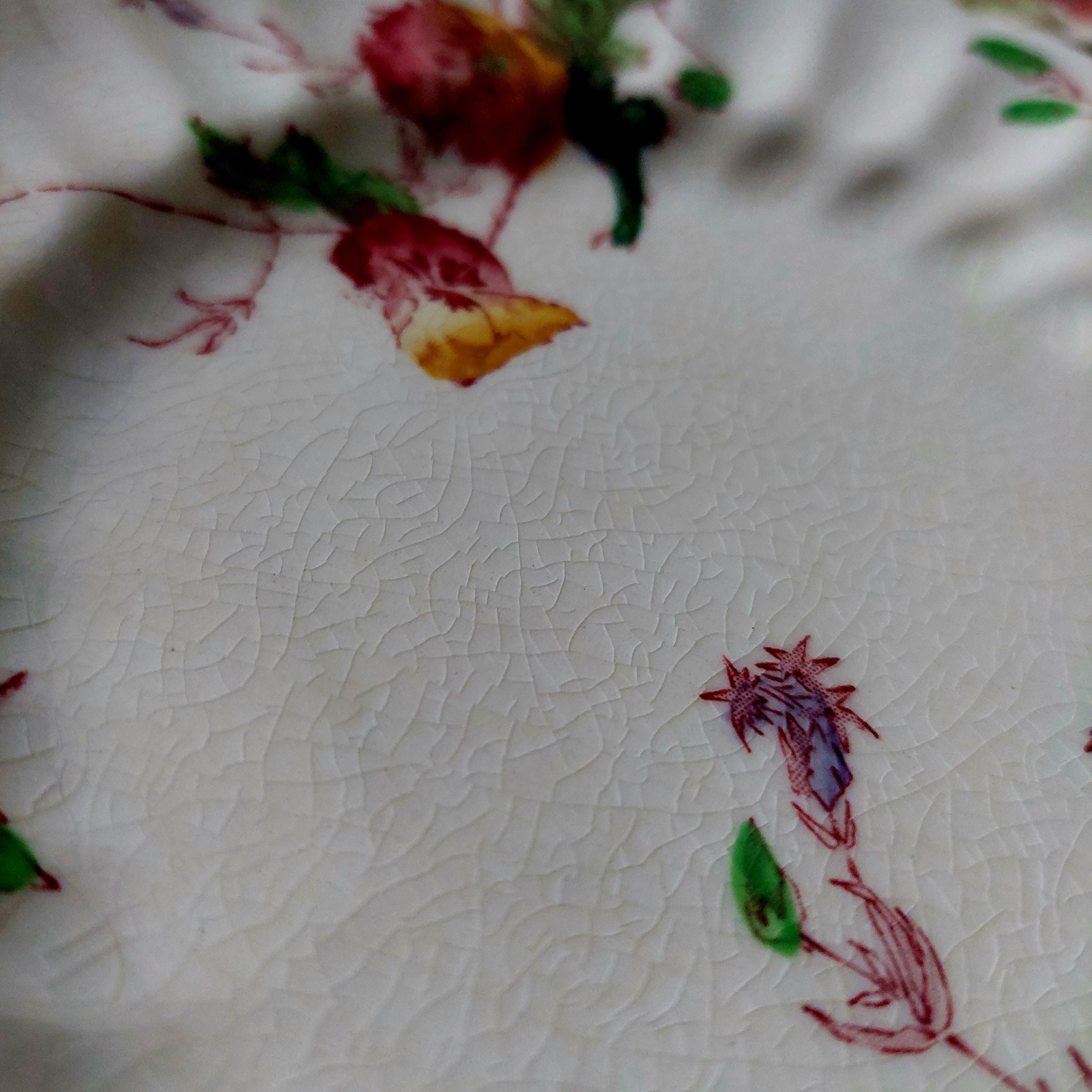 The Sherborne pattern is no longer made, making these plates a hard-to-find addition to any collection or a special way to elevate your table setting. You’ll receive four plates, each with authentic vintage character—no chips or cracks, but with natural crazing from age (see last photos for details) and typical utensil marks on the surface.
