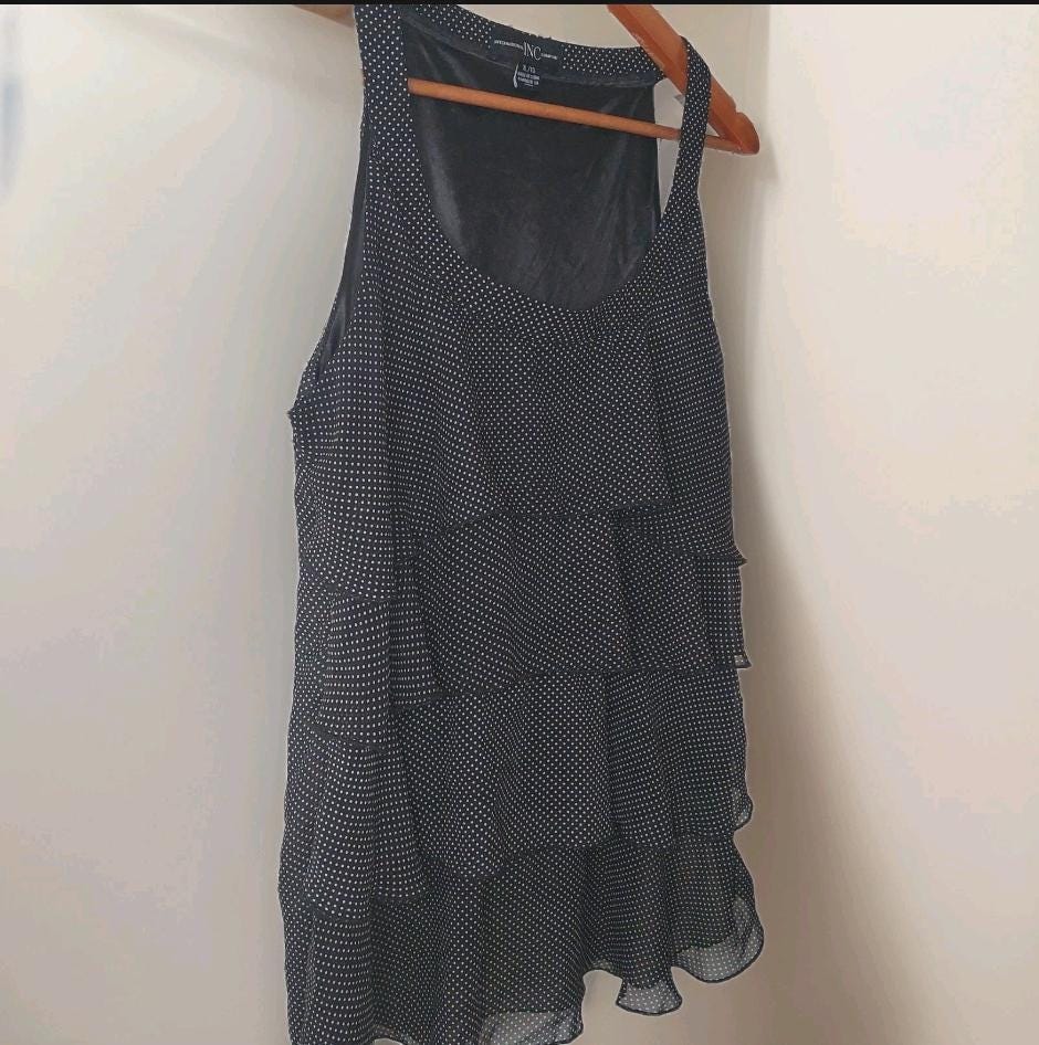Vintage black and white polka dot, tiered, sleeveless top by I.N.C. (International Concepts)