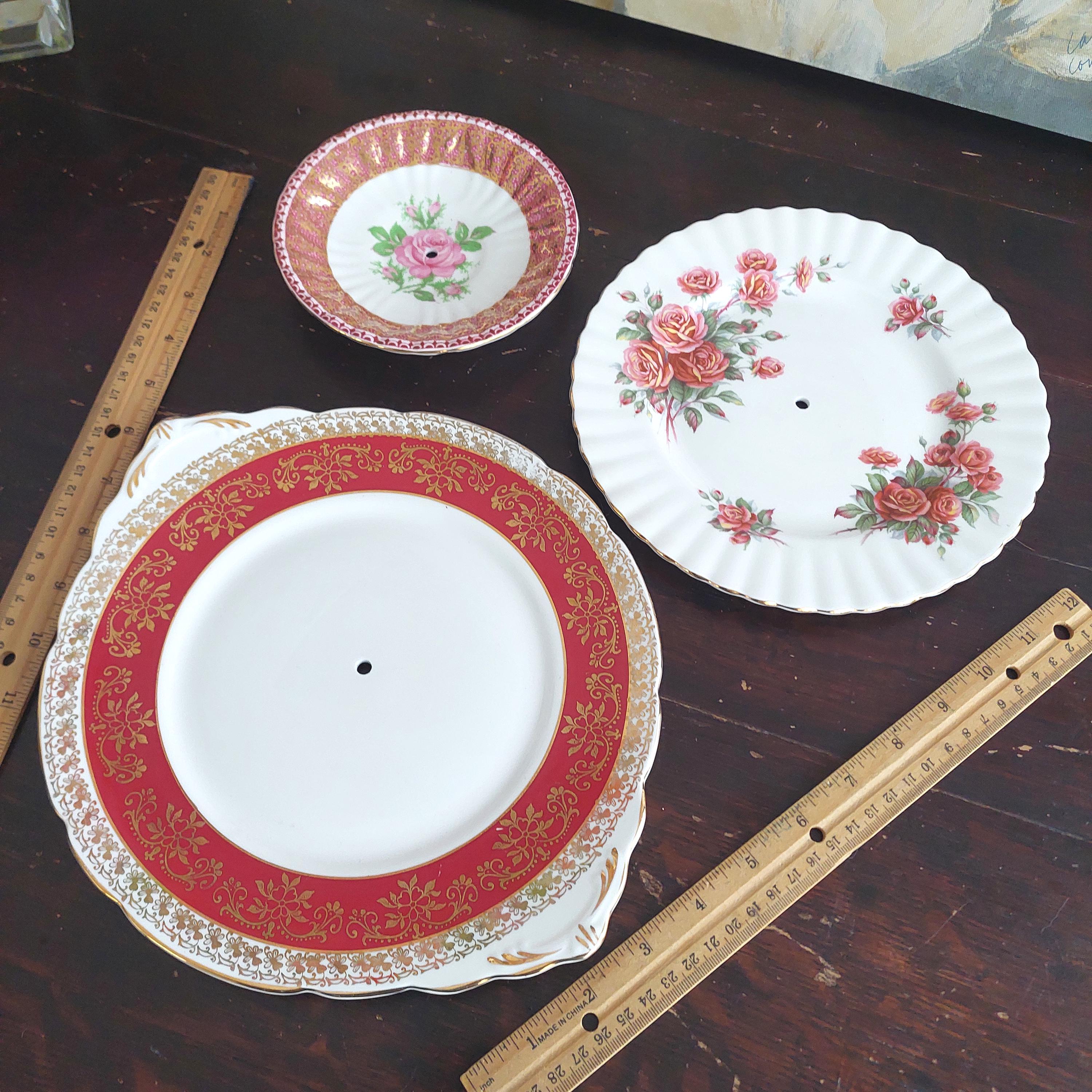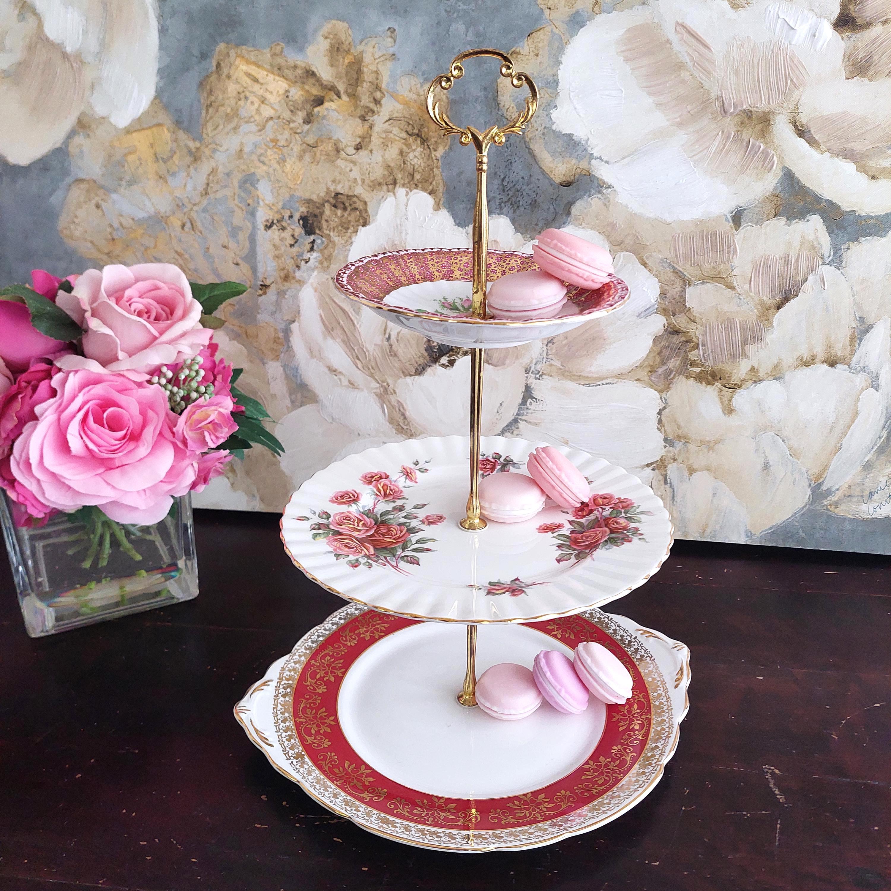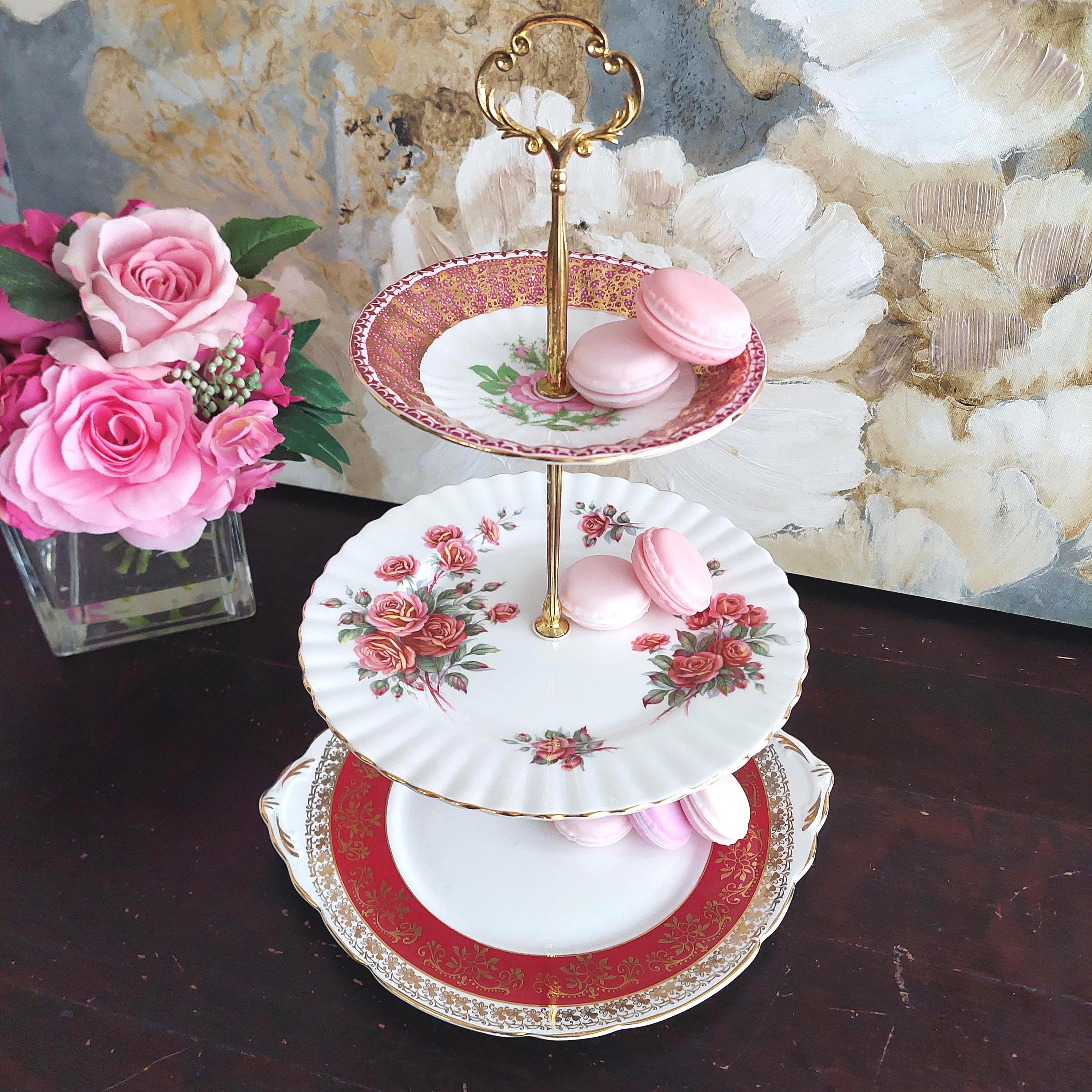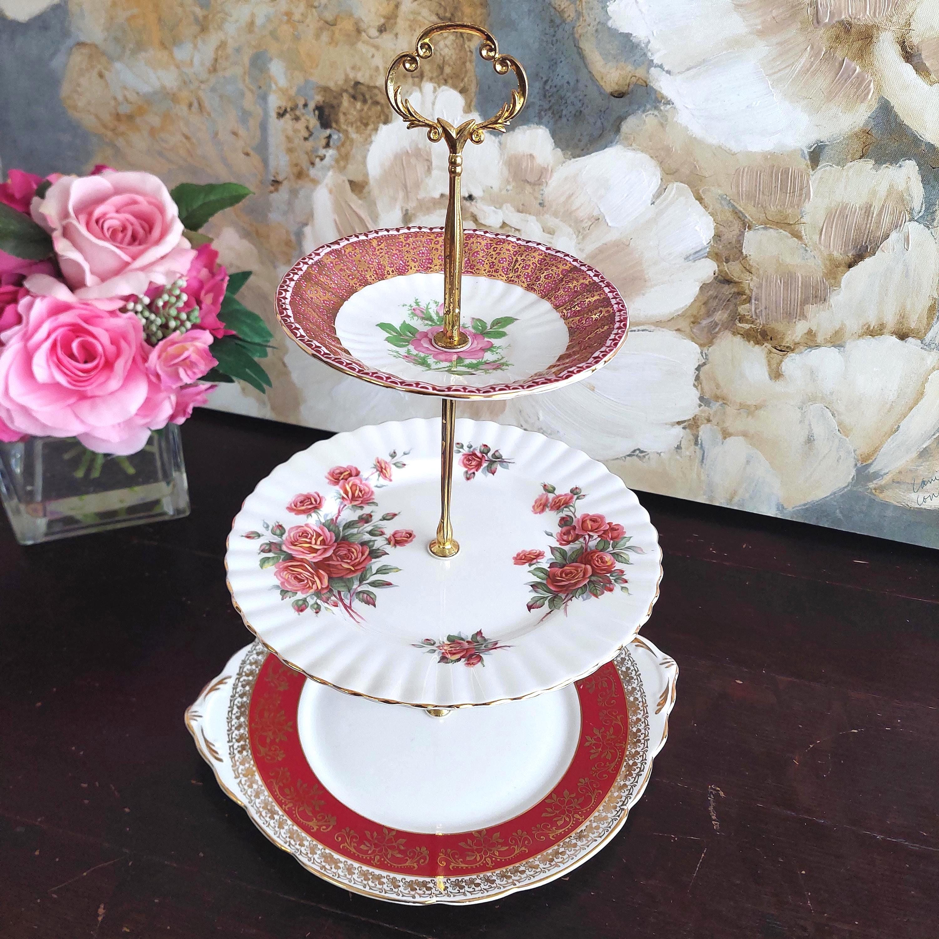 Elegant 3-tier cake stand, handmade by me using vintage English bone china floral plates.