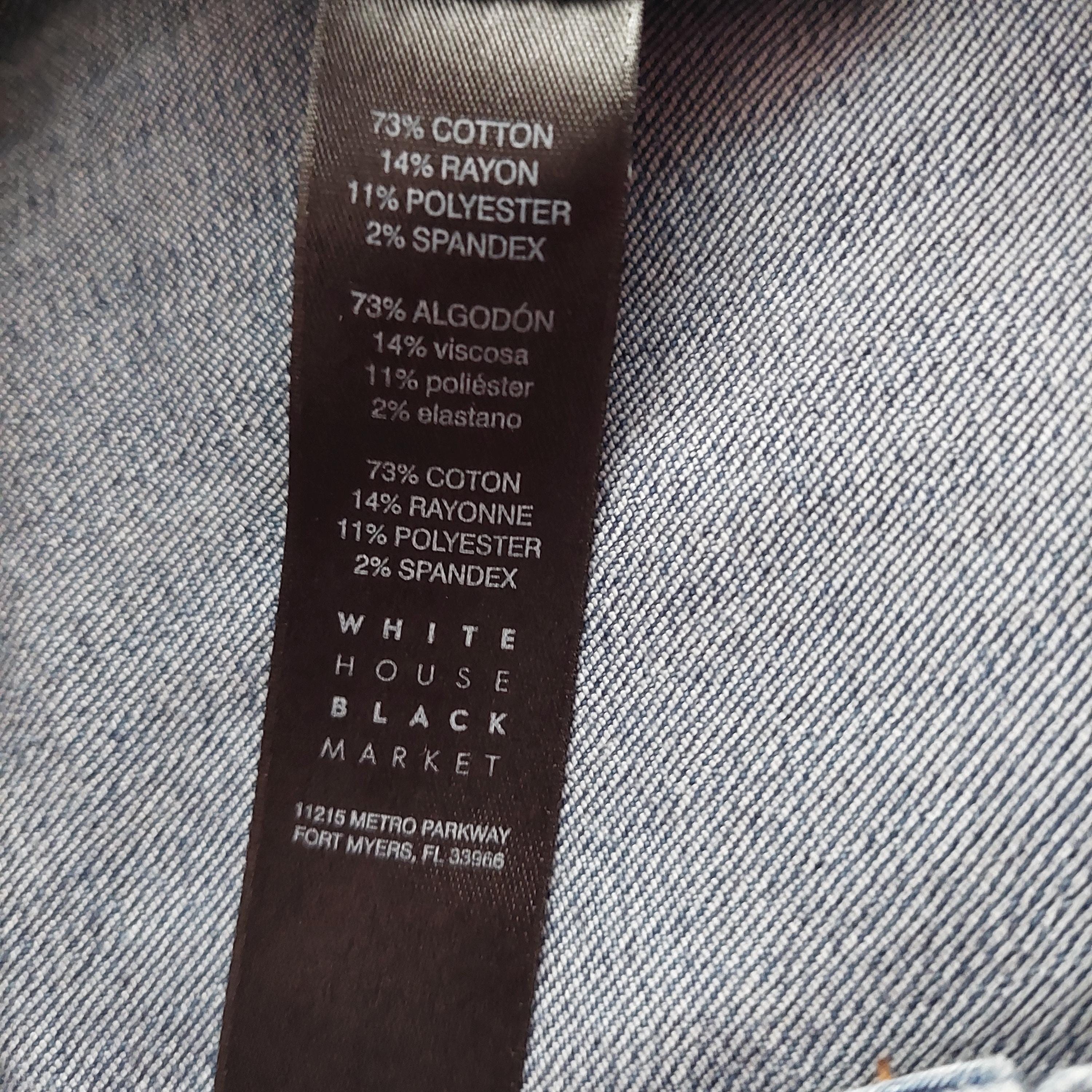 Tag: "Sz 12 - 73% Cotton, 14% Rayon, 11% Polyester, 2% Spandex - White House Black Market - Machine Wash Cold, Tumble Dry - Made in China "