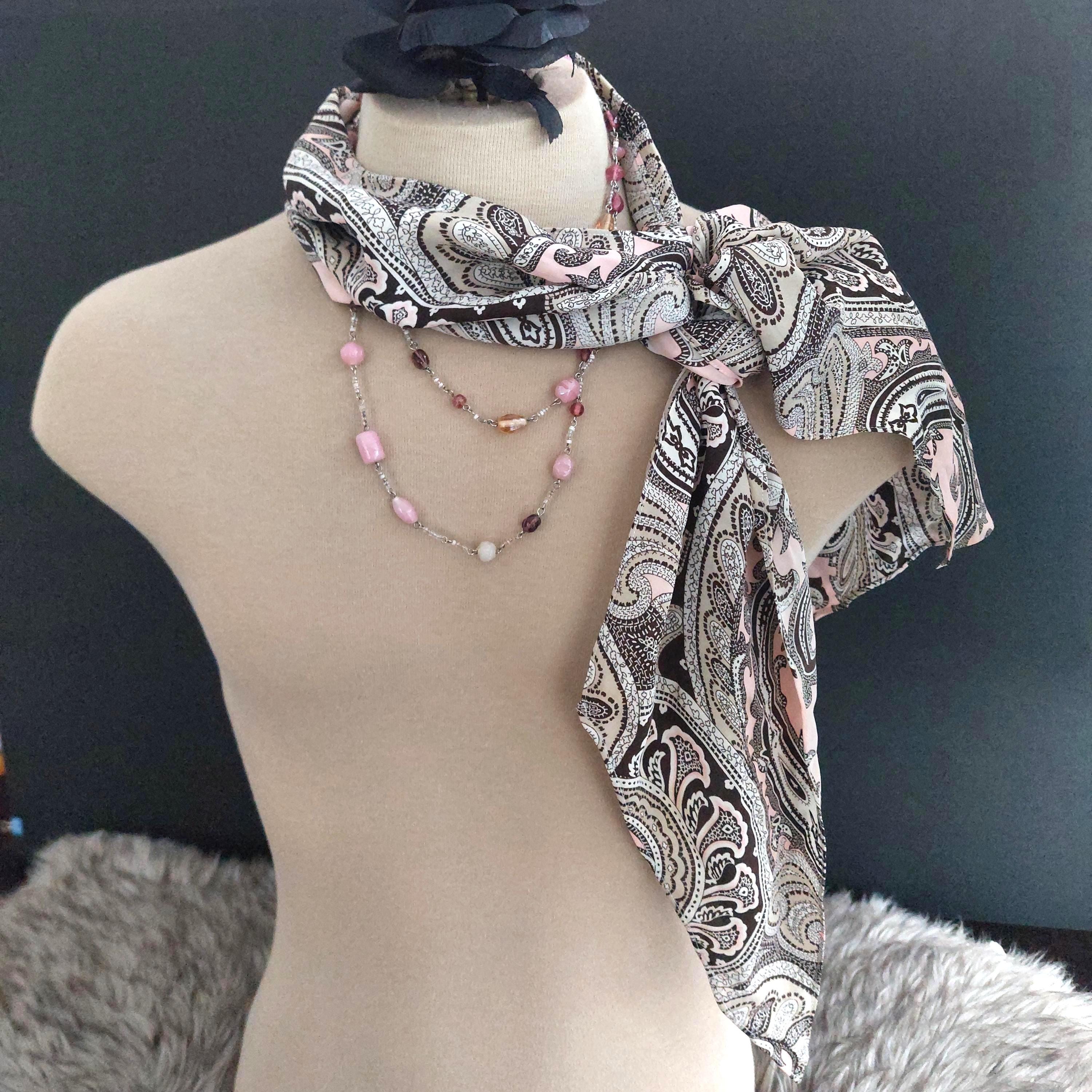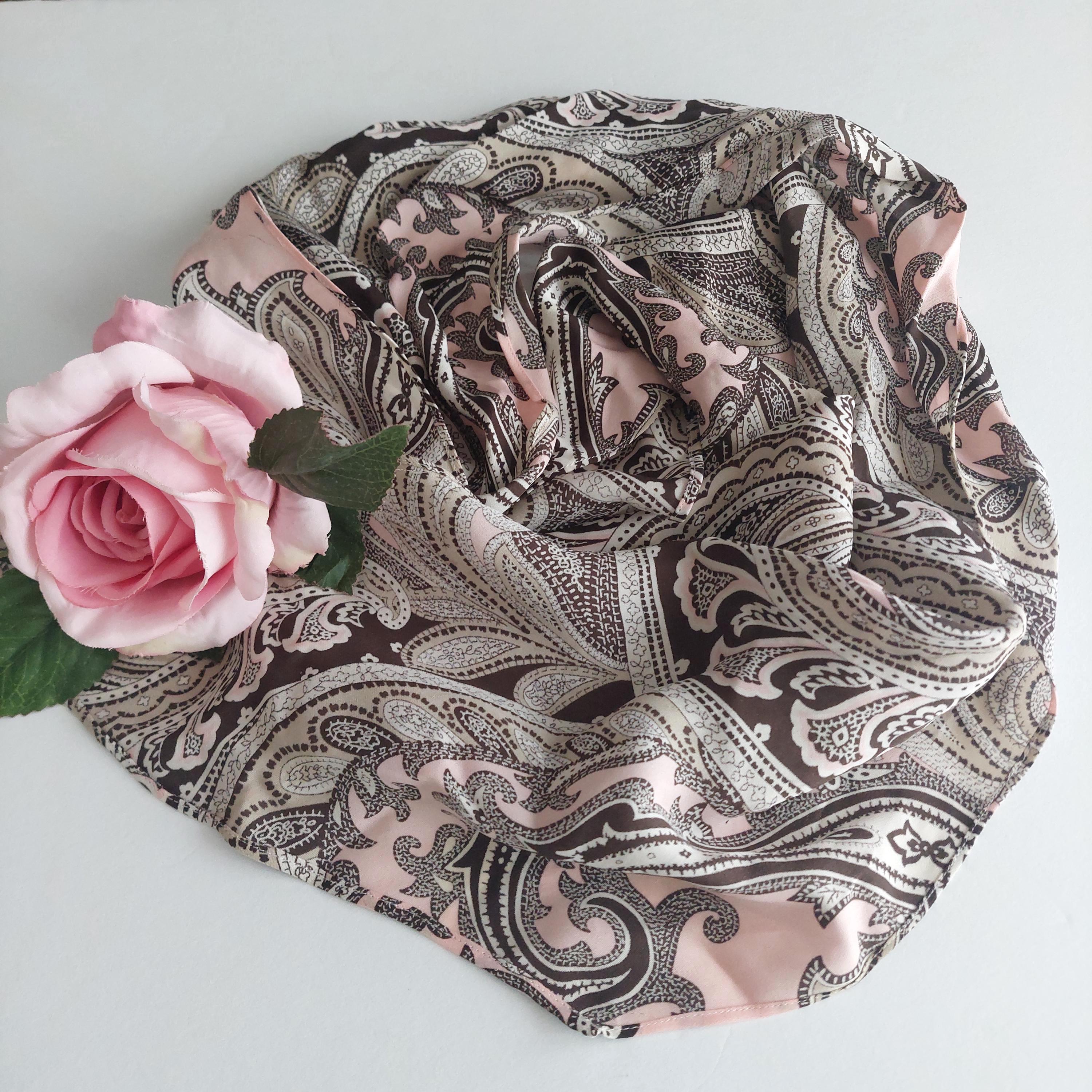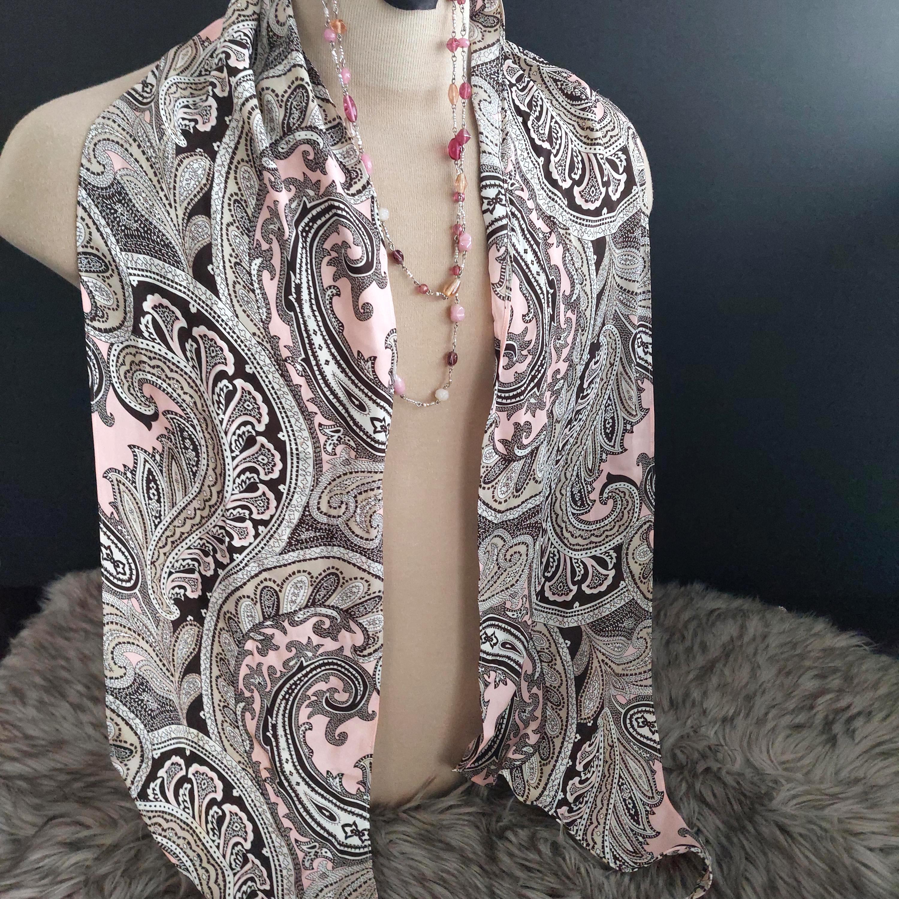 Vintage Michael Kors pink and brown paisley silk scarf.