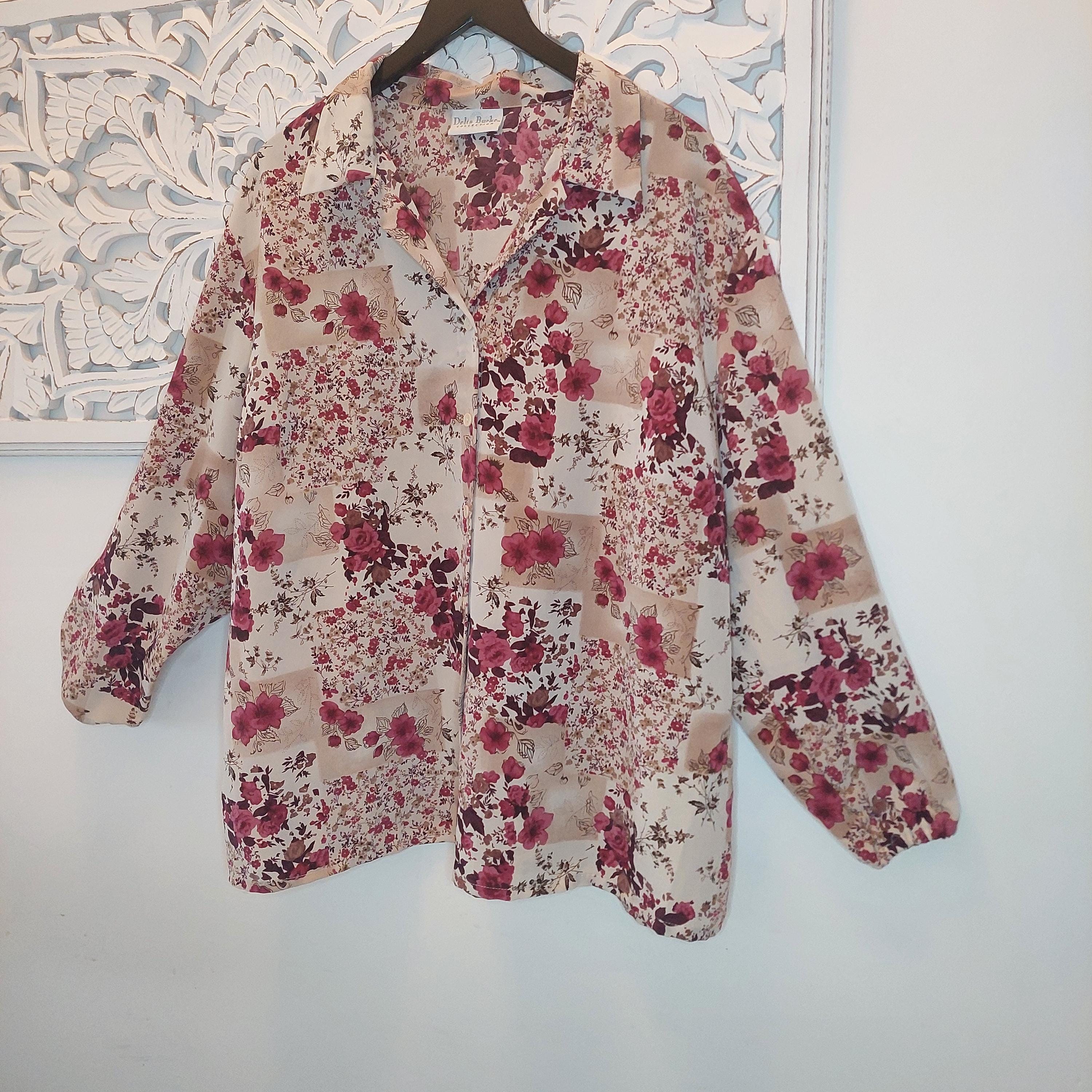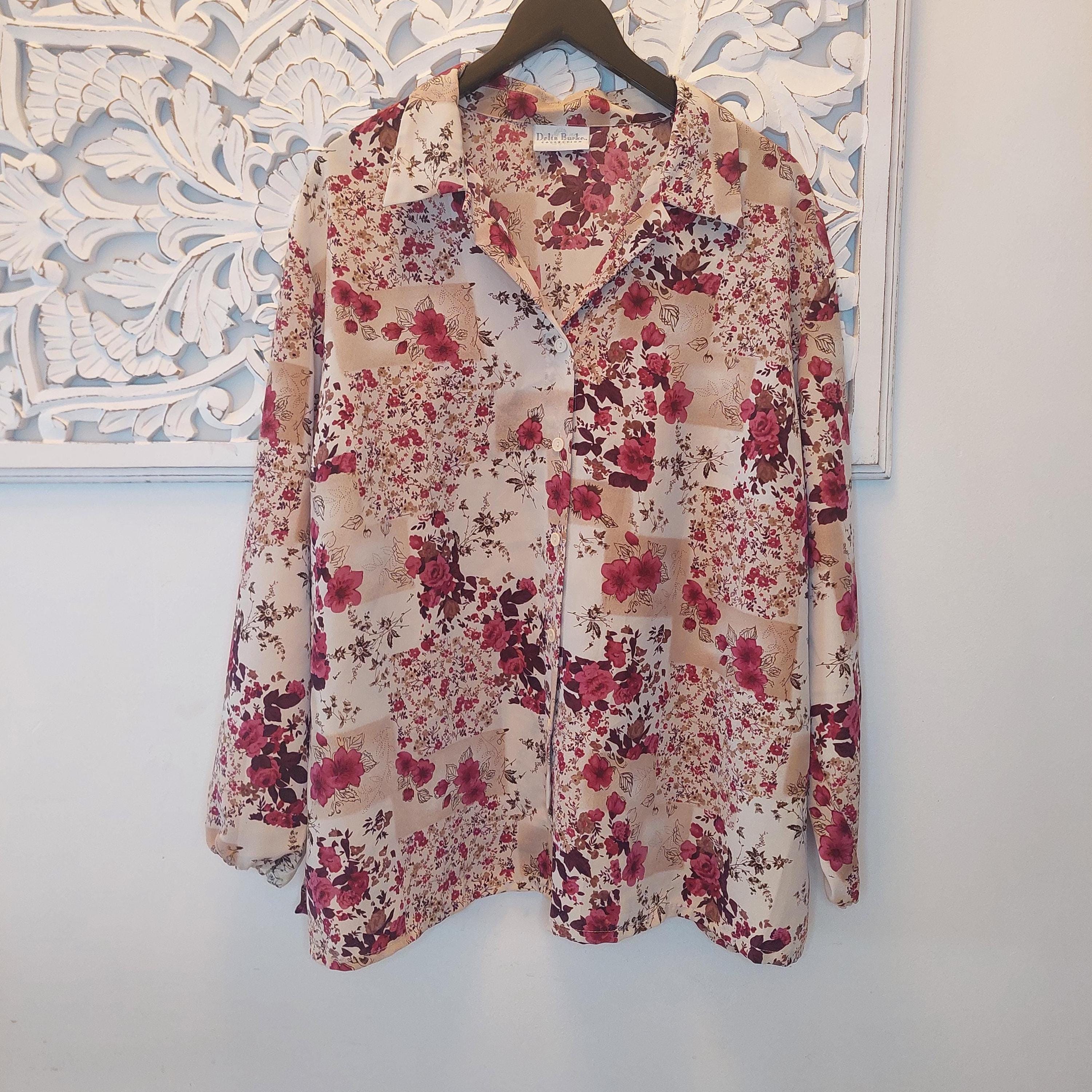 Vintage Delta Burke Collection floral chiffon blouse.