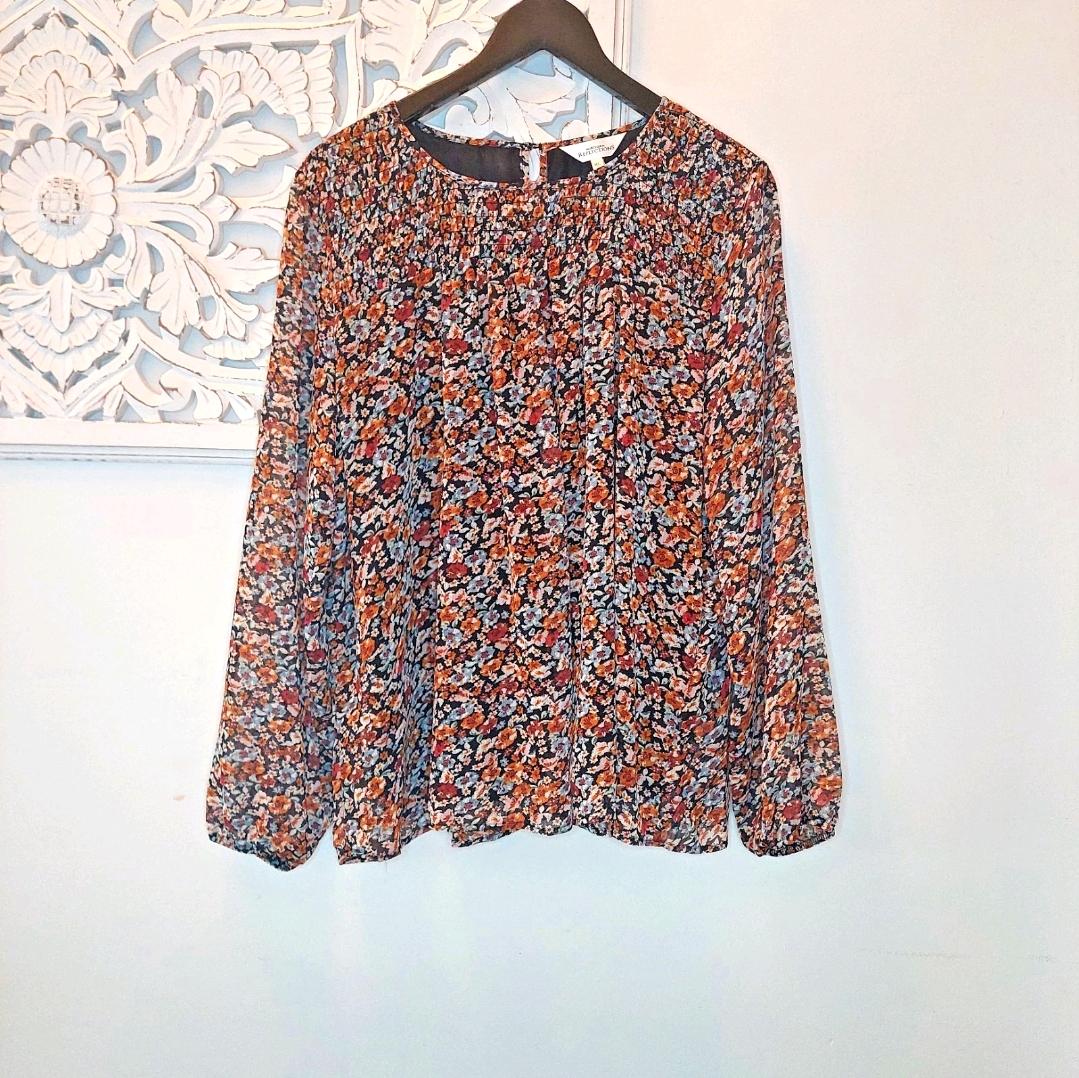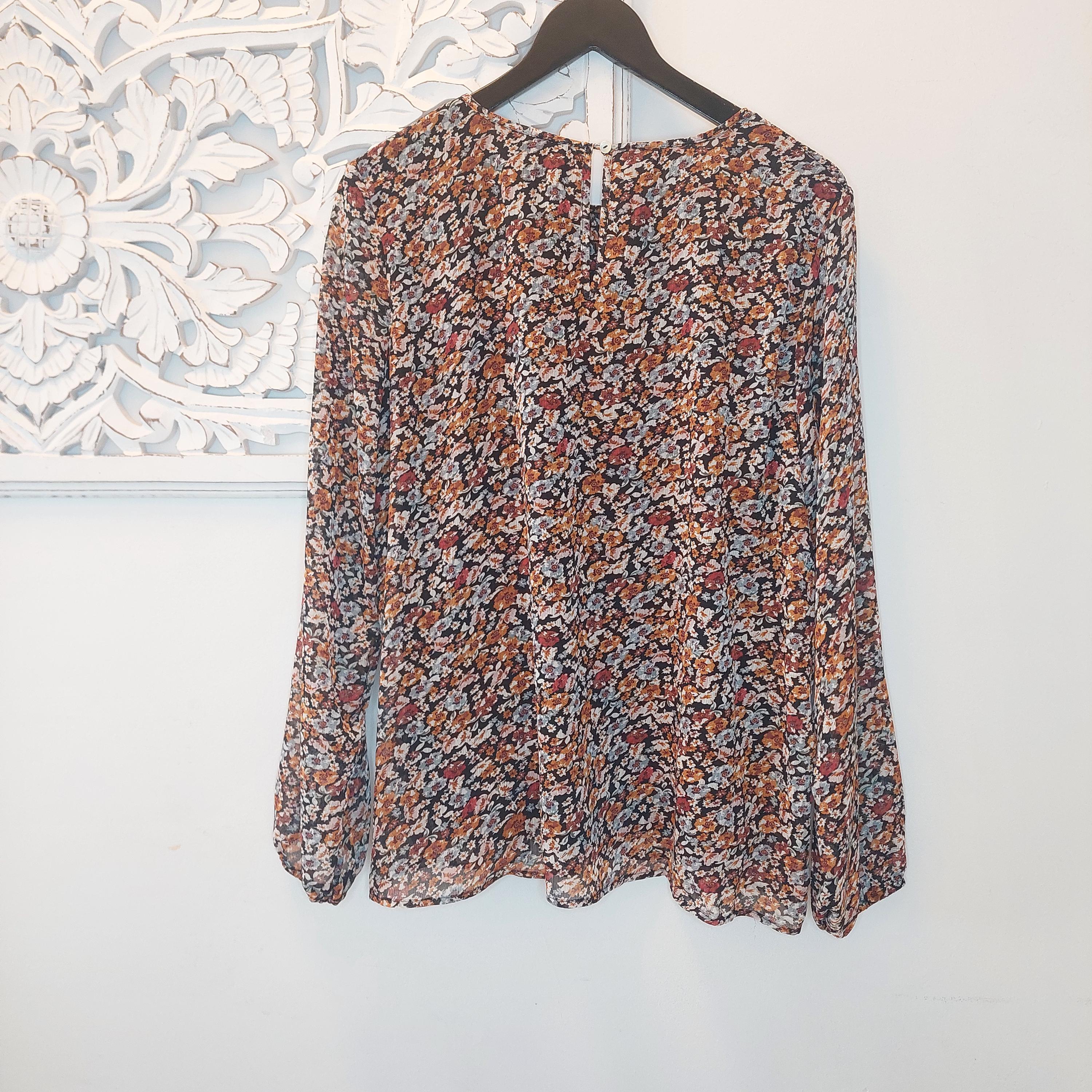Vintage Northern Reflections semi-sheer floral print chiffon in brown, blues, pinks and white