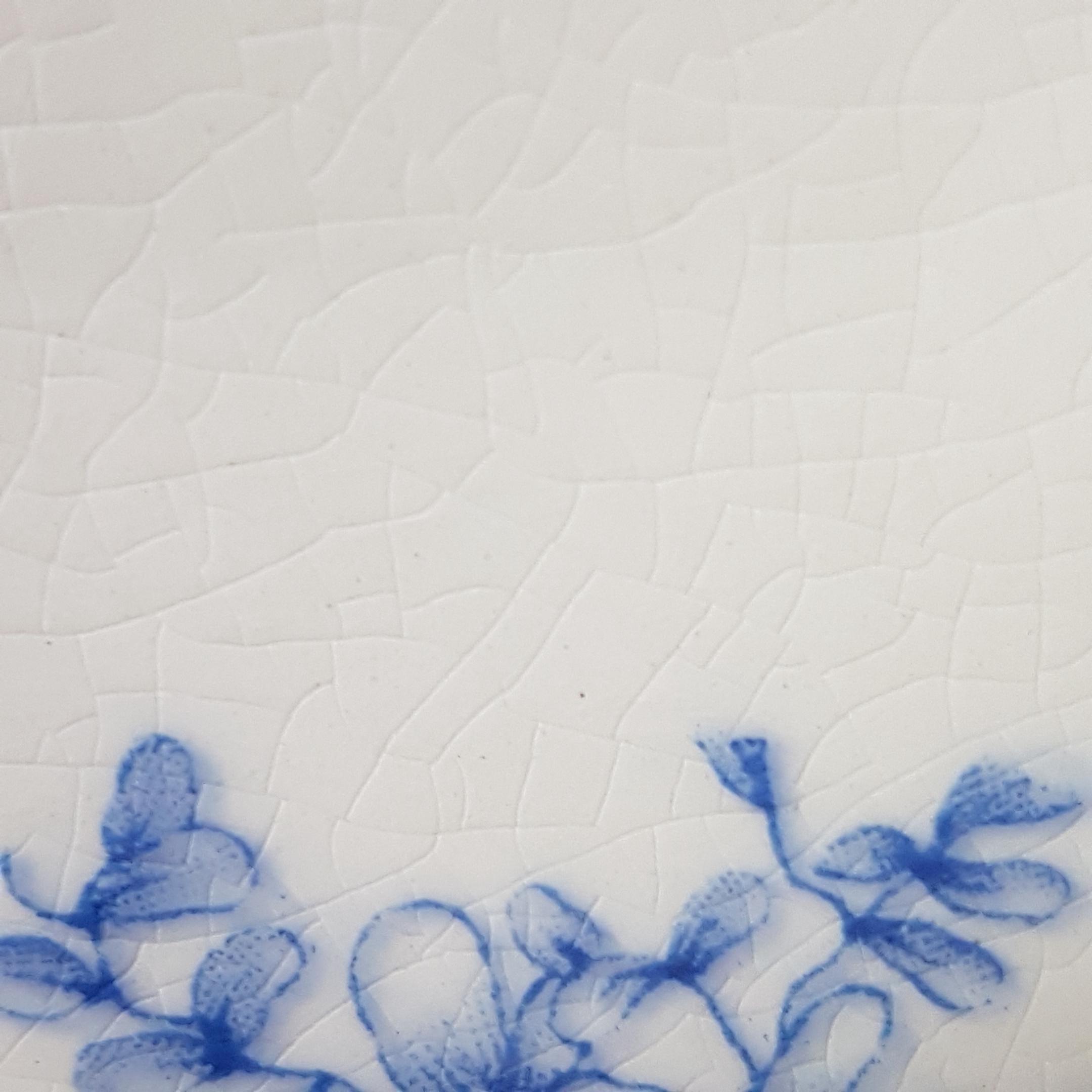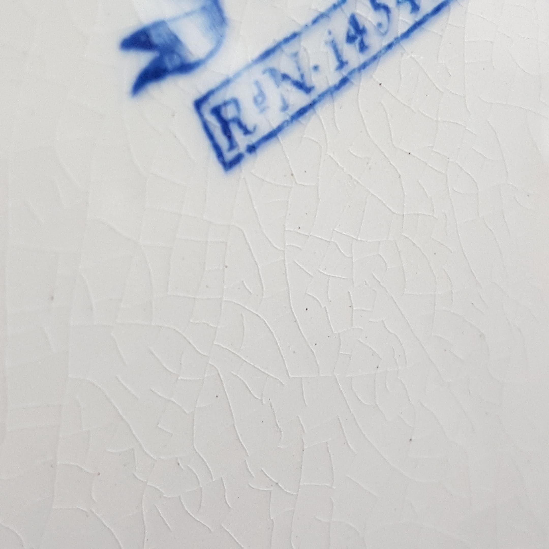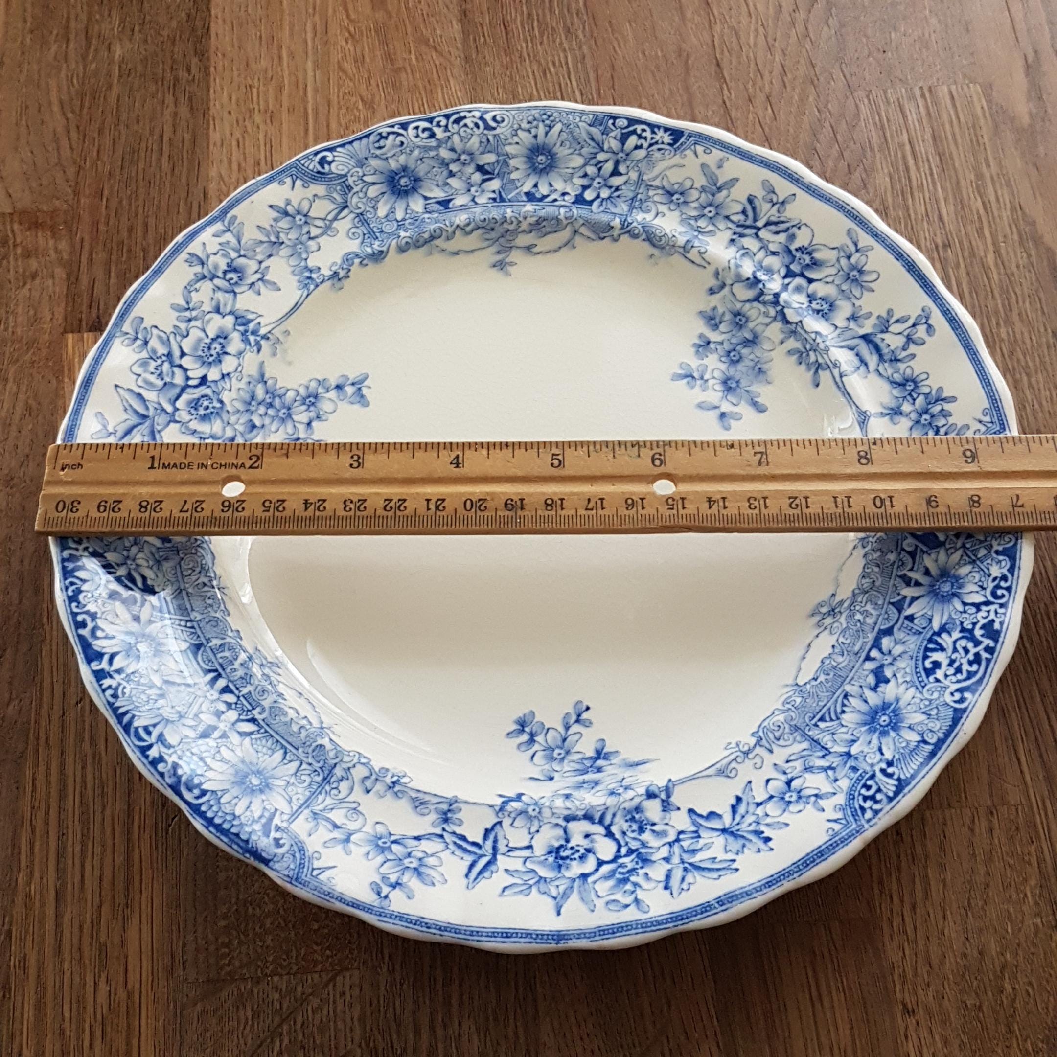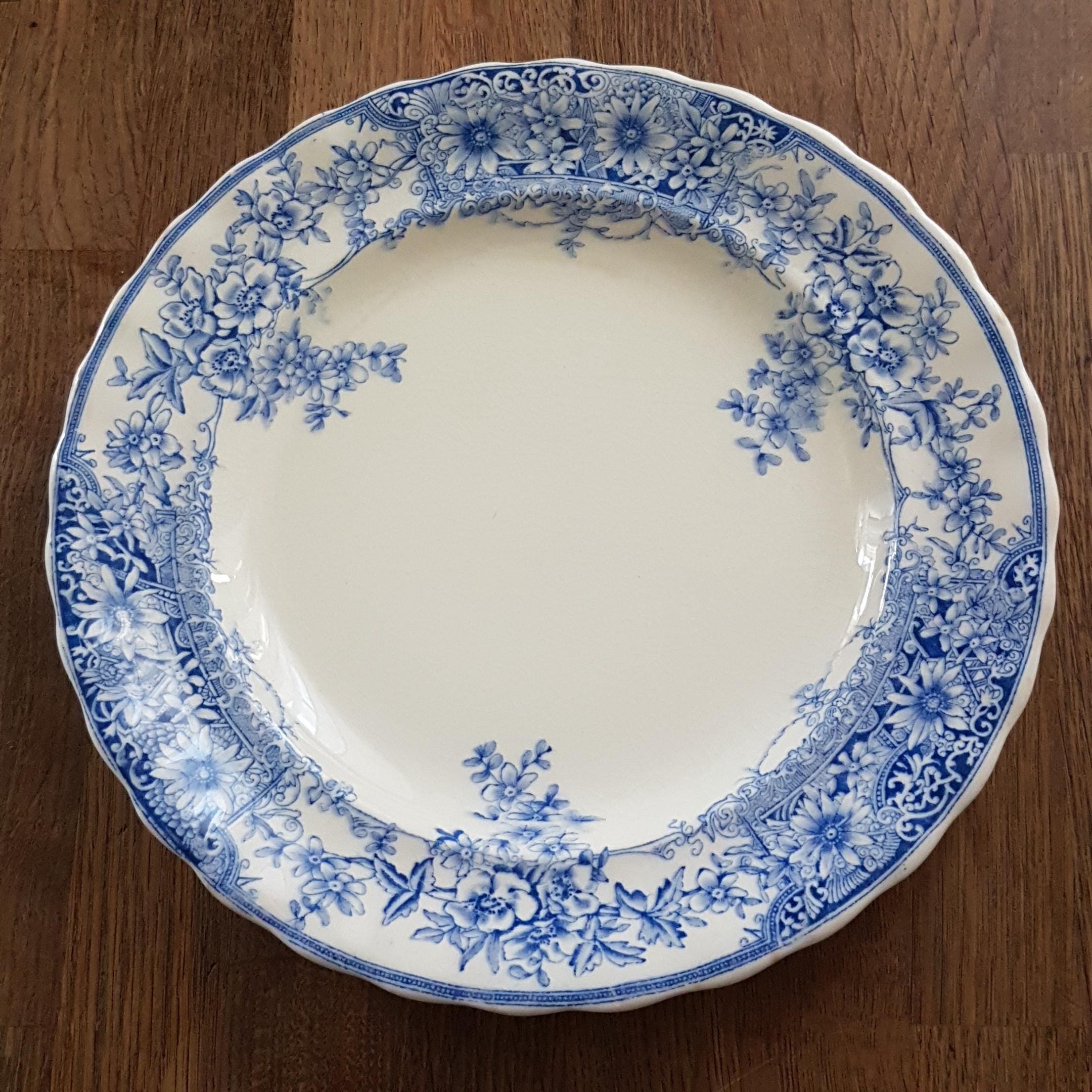 Antique Keeling & Co Stirling blue dinner plate. Pattern features a blue floral pattern and scalloped edge.